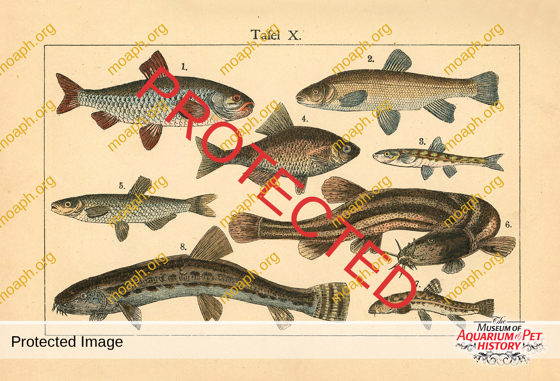 The book was likely a sales success, as a second edition was published as early as the following year, 1887. This edition is not externally different from the first, but the color tones of the plate illustrations were slightly modified, the number of text illustrations increased from 40 to 45, and the text expanded from 171 to 189 pages. Both editions are regularly offered in the antiquarian market at moderate prices. Since the book blocks are not bound with thread but only stapled, and these metal staples tend to rust easily, leading to frequent disintegration, any potential purchase should be carefully inspected beforehand. Apart from this, I warmly recommend this ‘gem’ to any enthusiast of old aquarium literature.