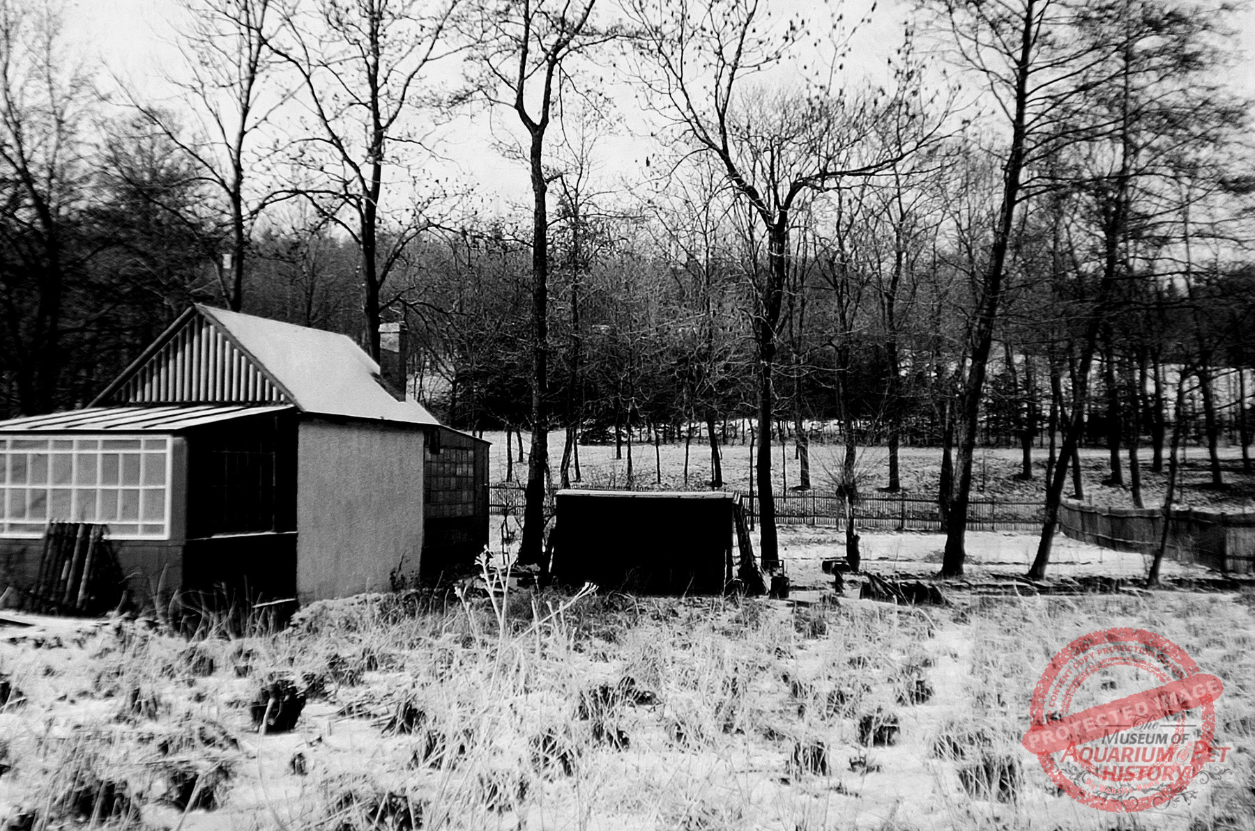 Attention then turned to joint planning of a structure—essentially a garden-architectural concept. Ponds were planned, along with at least one building for meetings and for the gentle overwintering of frost-sensitive species. Aquariums, terrariums, and much more were also to find space there. The site was a relatively large marshy meadow, now structured by paths, groups of trees and shrubs, perennial plantings, three ponds, a small clubhouse, and a wide variety of animal enclosures. The small stream Flachsröste was harmoniously integrated and also used as a water source. It took four years before the so-called Danio grounds were finally opened in 1929 as a new open-air aquarium. Yet it was far more than that: in the clubhouse, alongside aquariums and terrariums, collections of butterflies, beetles, and minerals were displayed. Most nature enthusiasts who are drawn to aquaristics or terraristics have much broader interests, which could be put to good use here. On the right side of the clubhouse, a feed kitchen was added, where a wide range of foods was prepared or assembled for the animals. On the left stood a greenhouse containing aquariums. Another small building served for overwintering parrots and monkeys, which now also belonged to the residents of the Gotha Danio club’s open-air aquarium.