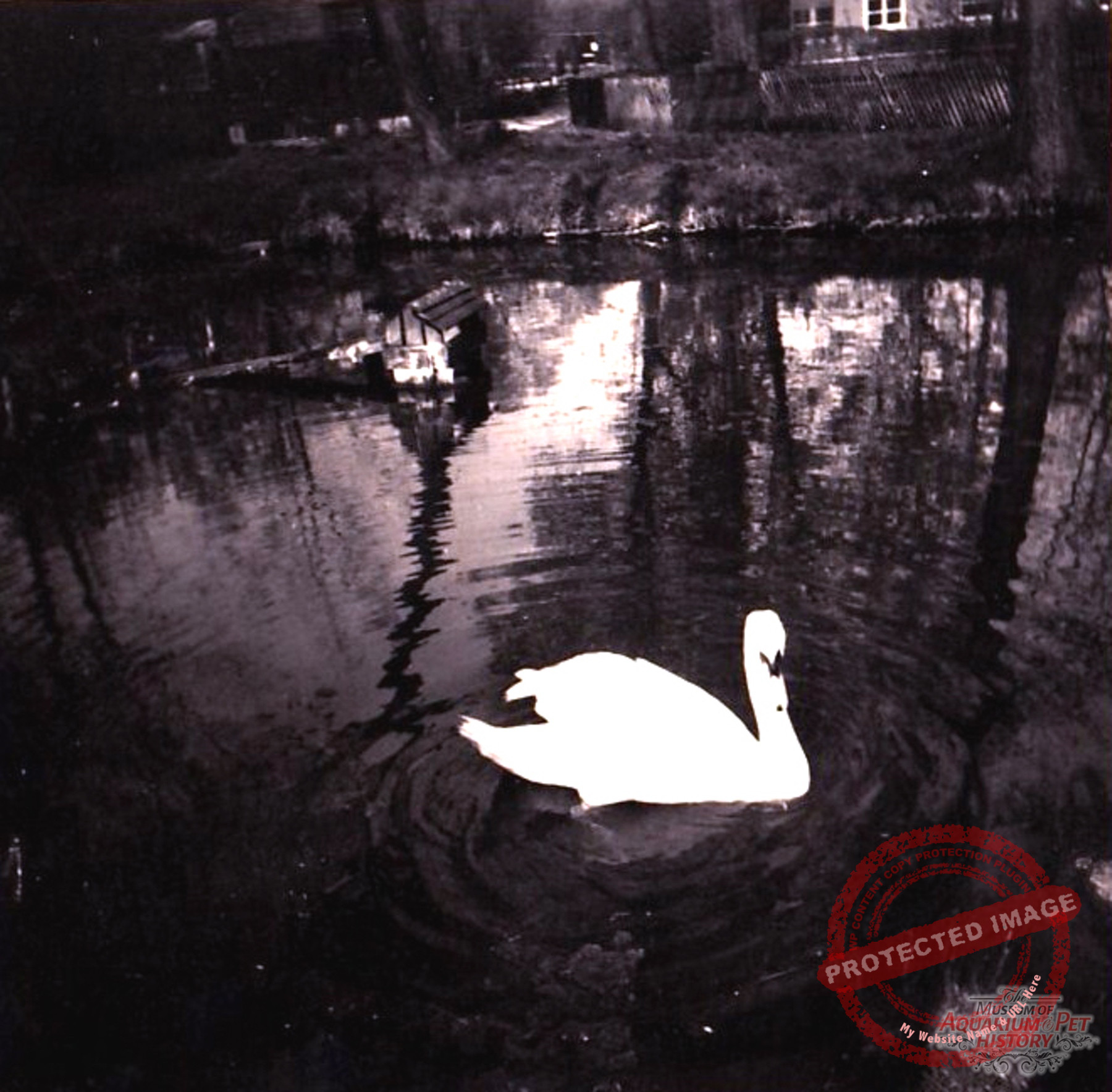 On the rear pond lived a pair of mute swans (Cygnus olor), as well as the white stork (Ciconia ciconia) trained to clatter its bill.