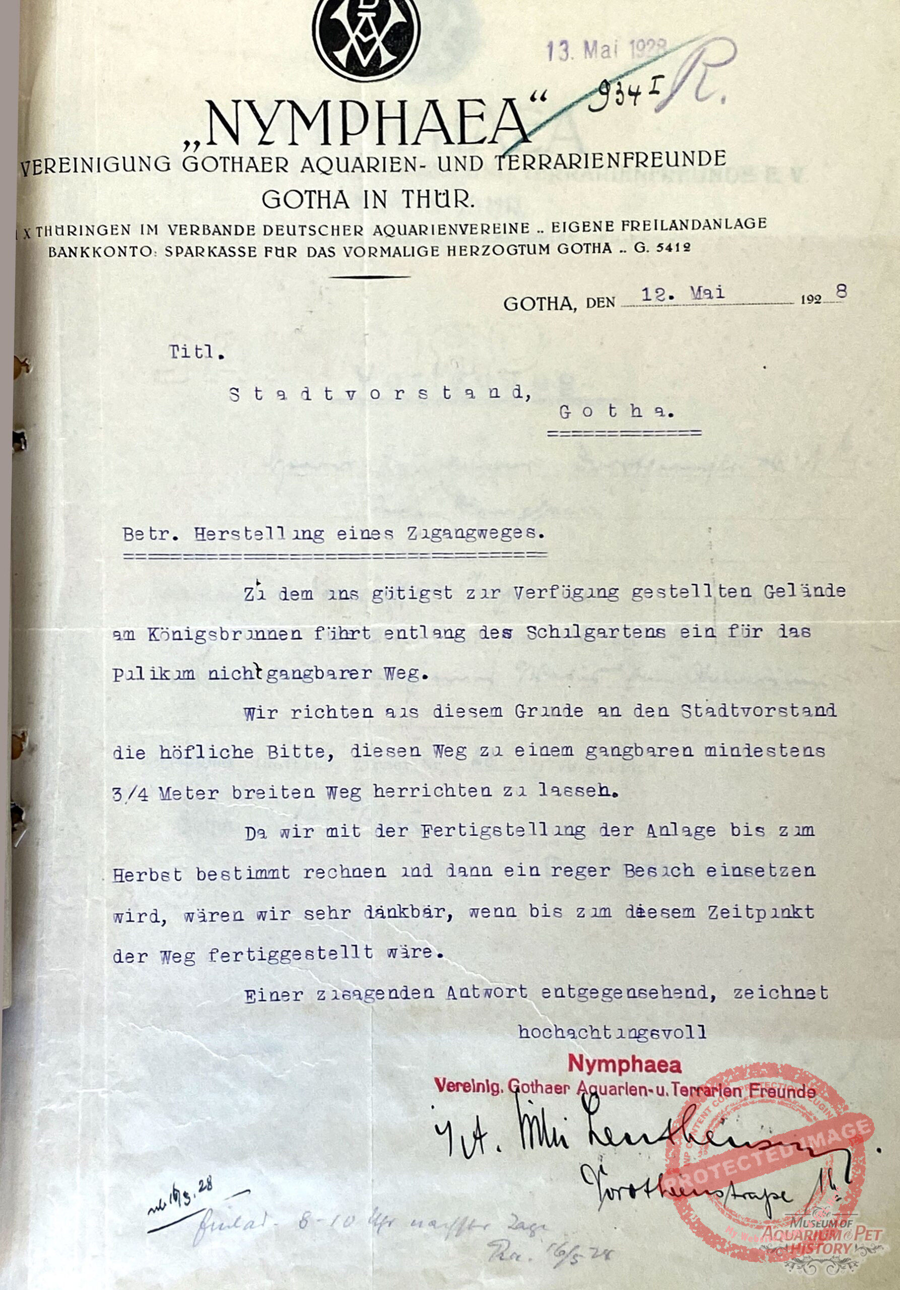With the founding in 1927 of the fourth Gotha vivaristic association—the Verein für Aquarien und volkstümliche Naturkunde – Zierfischfreunde—by Kurt Koch, as discussed in the previous installment, the Danio members were left to their own devices. Interestingly, under the leadership of Karl Wagner they concentrated far more than the Nymphaea members on the outdoor facility itself, the Danio grounds. Aquarium care, lectures, and fish breeding receded into the background. By contrast, Charly Fuchs ensured among his Nymphaea colleagues that every aspect of the hobby retained a balanced place in club life. This was undoubtedly easier to achieve, since the Pond Garden at the Seven Ponds did not include as many animals unrelated to the core hobby that required extensive care. Here the focus lay on fish, amphibians, and reptiles. Fuchs and other members moved their residences from Gotha’s city center to the peripheral settlement, bringing them closer to the open-air aquarium and allowing them to devote more time to it.