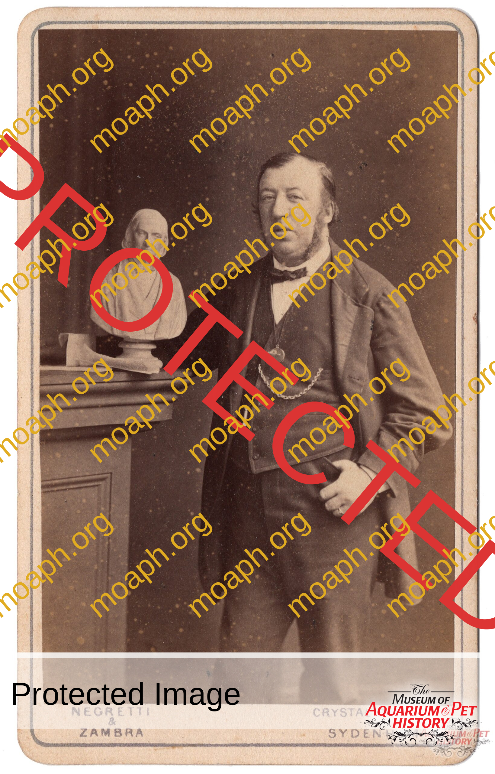 Lloyd in the 1870s, posing near the bust of the naturalist Edward Forbes. ©Stazione Zoologica Anton Dohrn, Archivio Storico (ASZN, 1.La.71.).