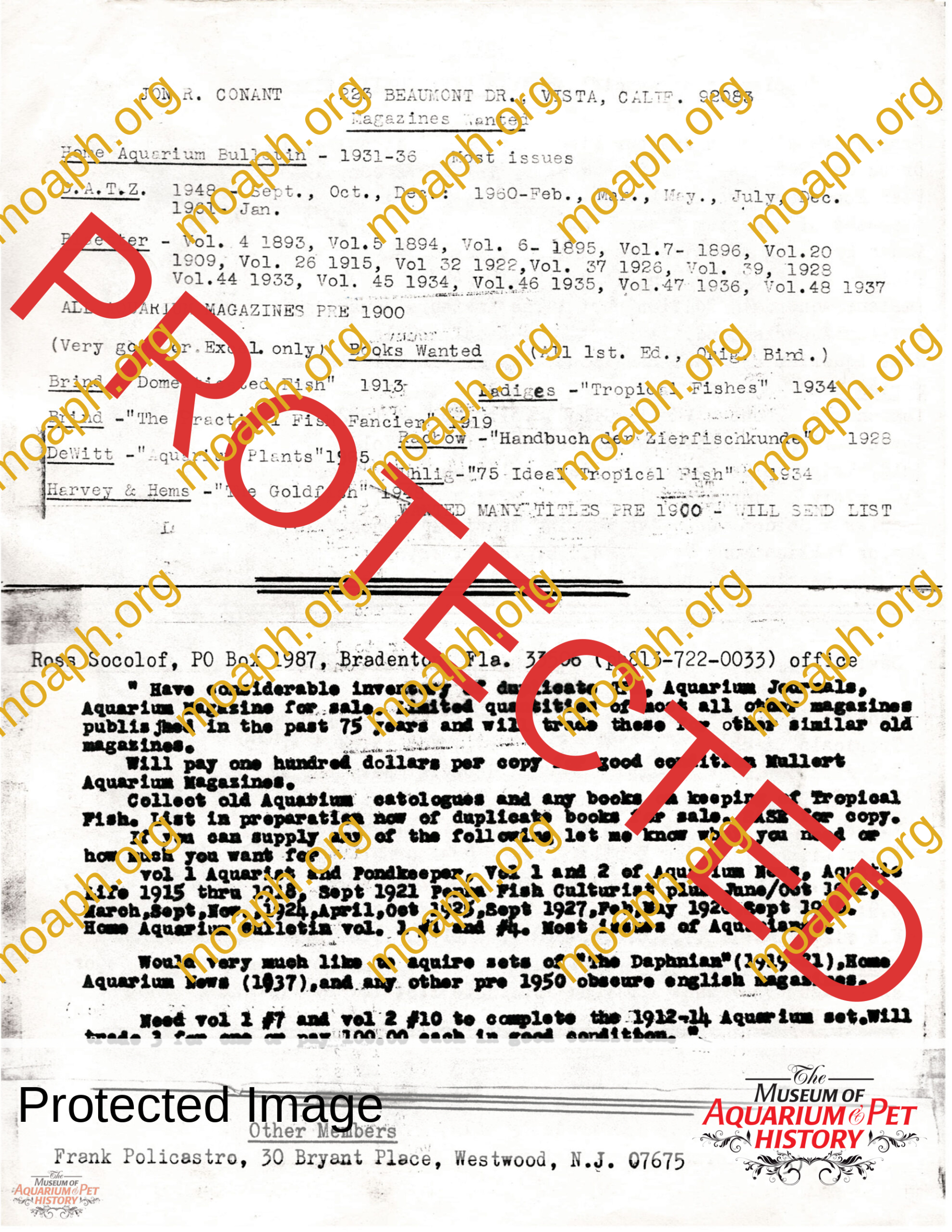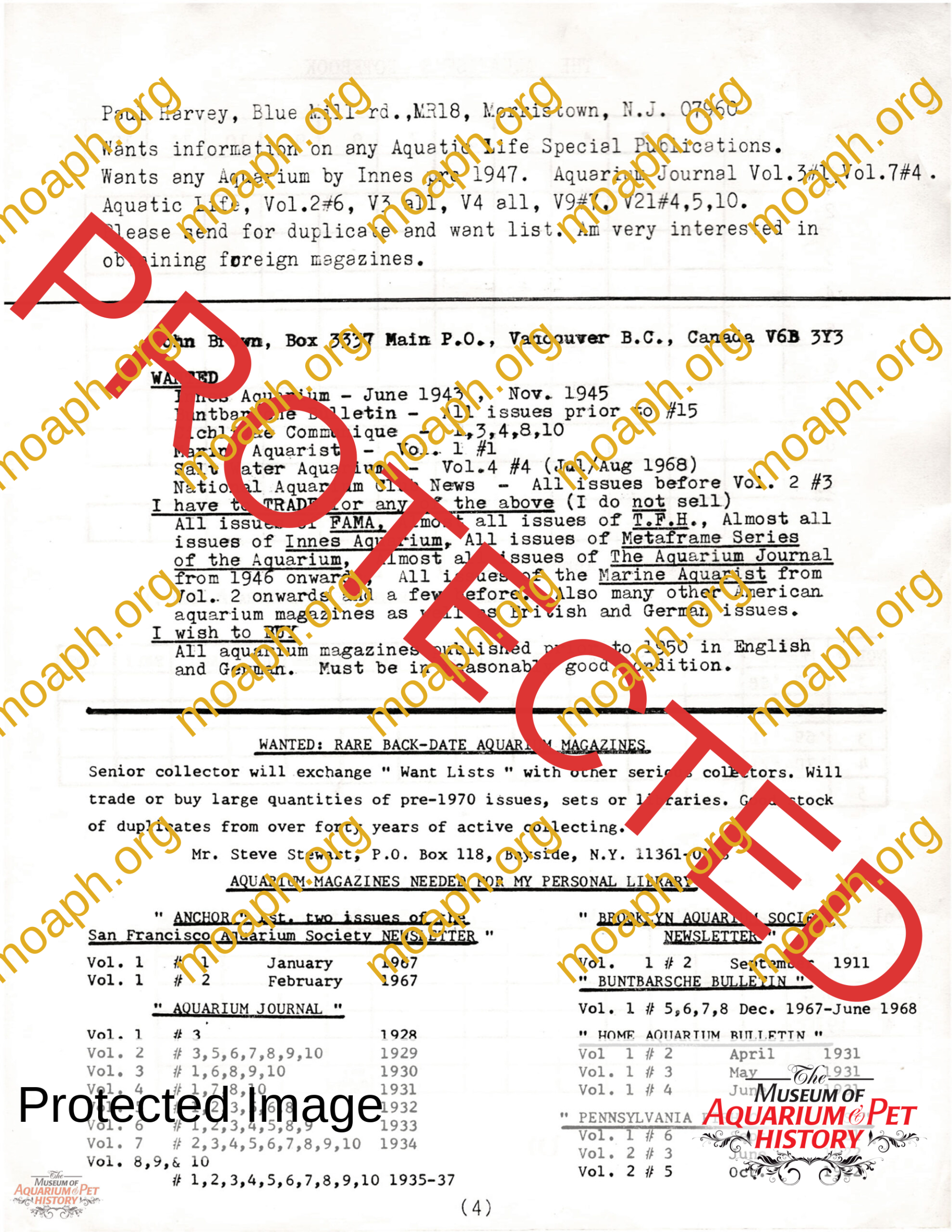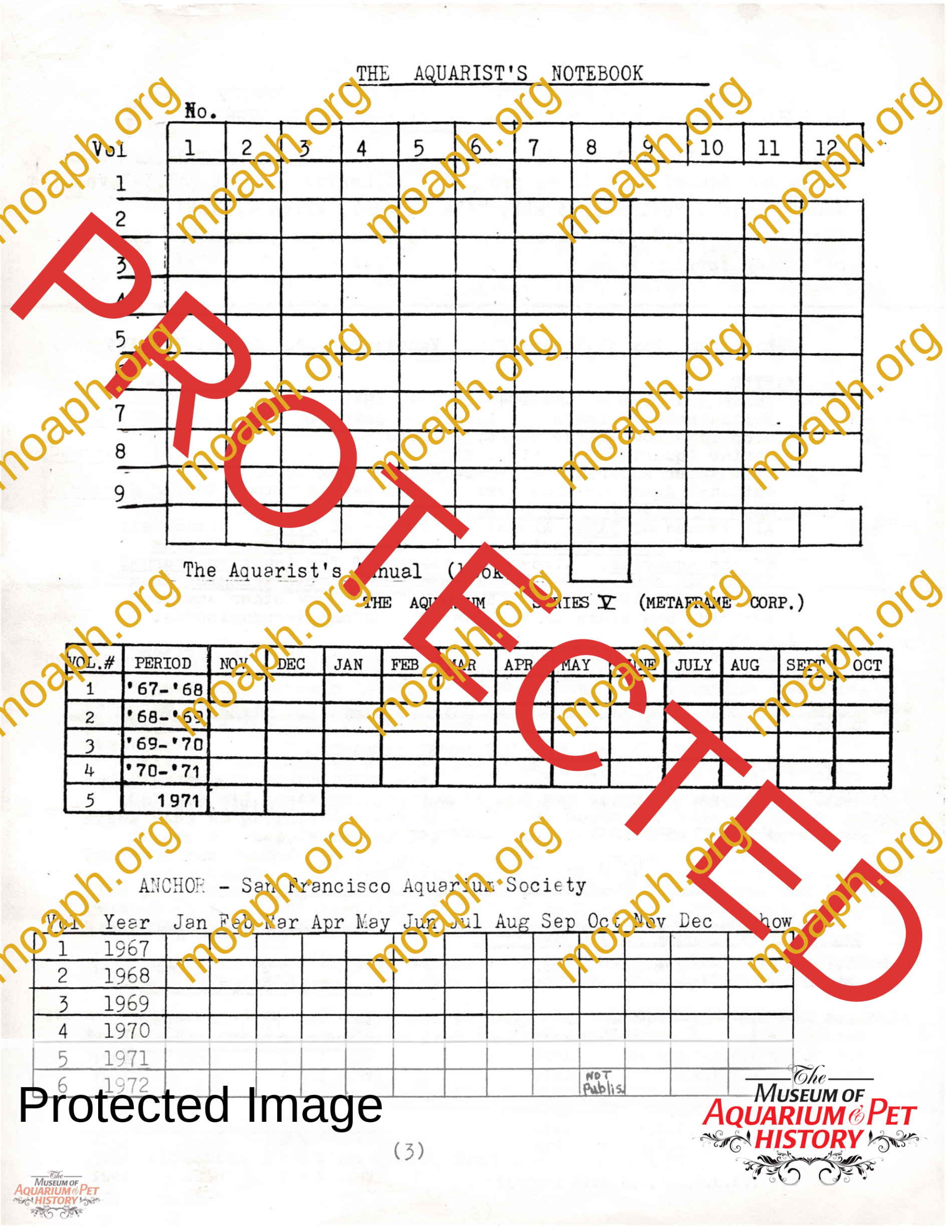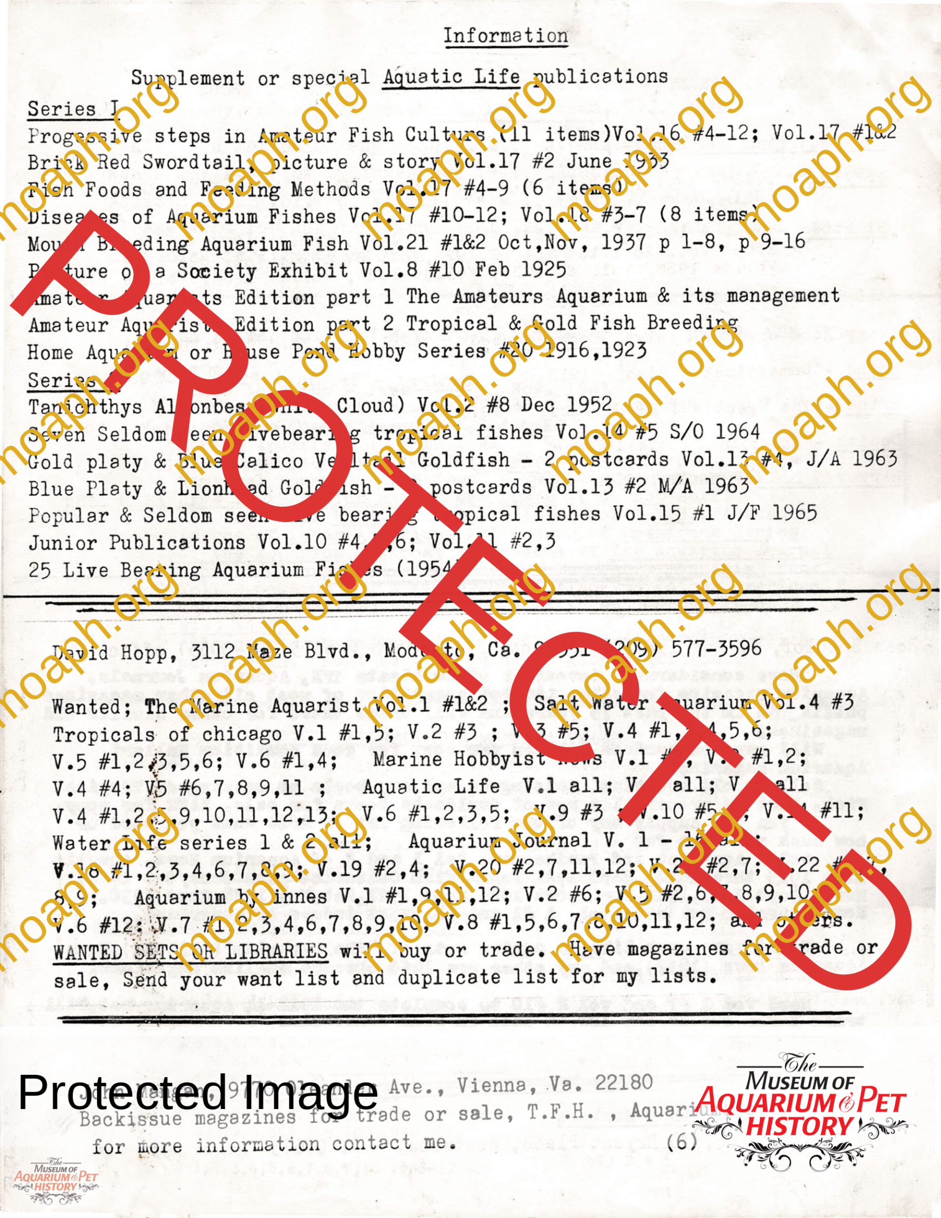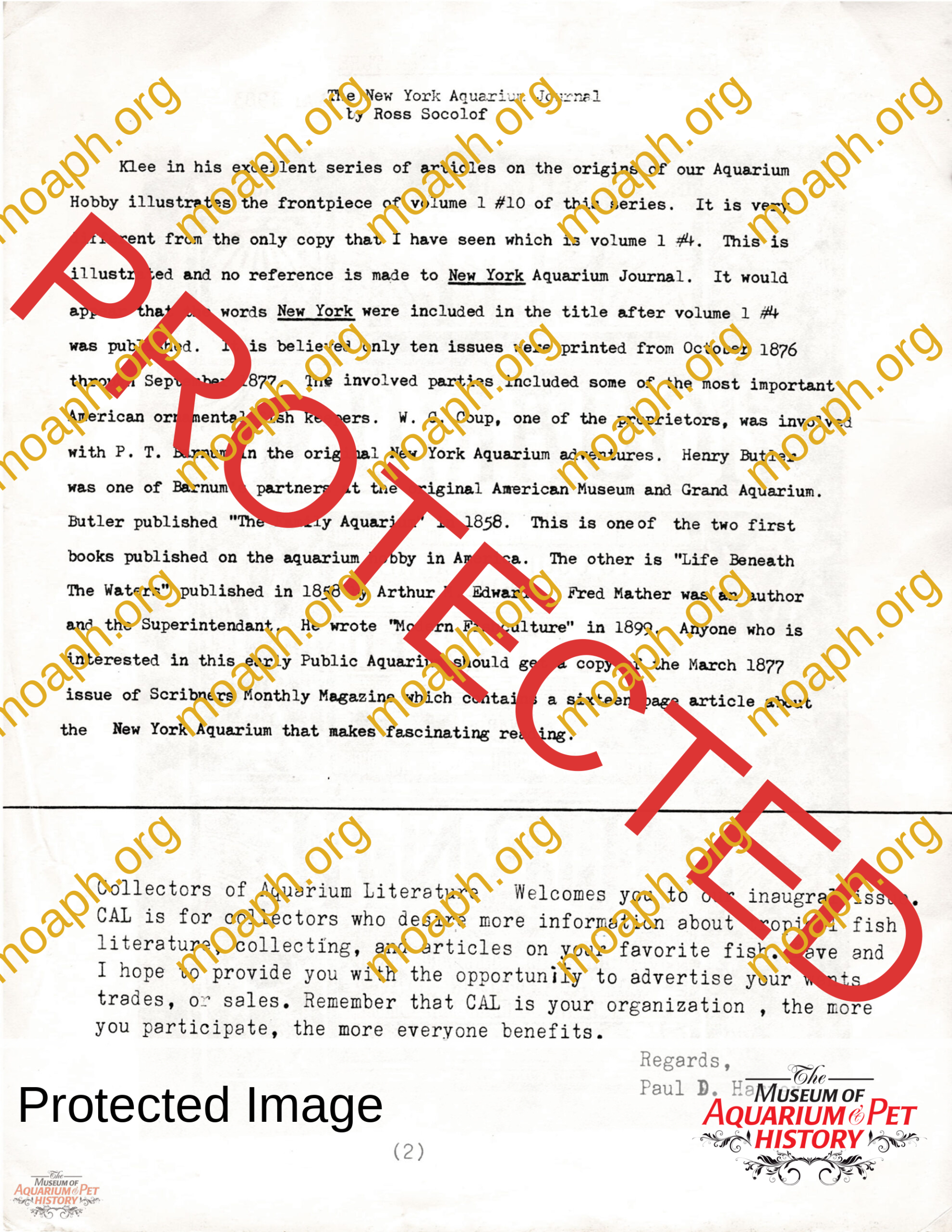 The collectors of aquarium literature was an organization founded by Dave Hopp and Paul Harvey to better organize those who collected vintage aquarium magazines and books. Each issue had articles on aquarium publication history plus articles related to book and magazine collecting in general. This publication ran from May 1983 through June 1994 for a total of 55 issues. (August through November 1988 was a combined issue 25/26 and March through July 1989 was marked 29/30 1989.)