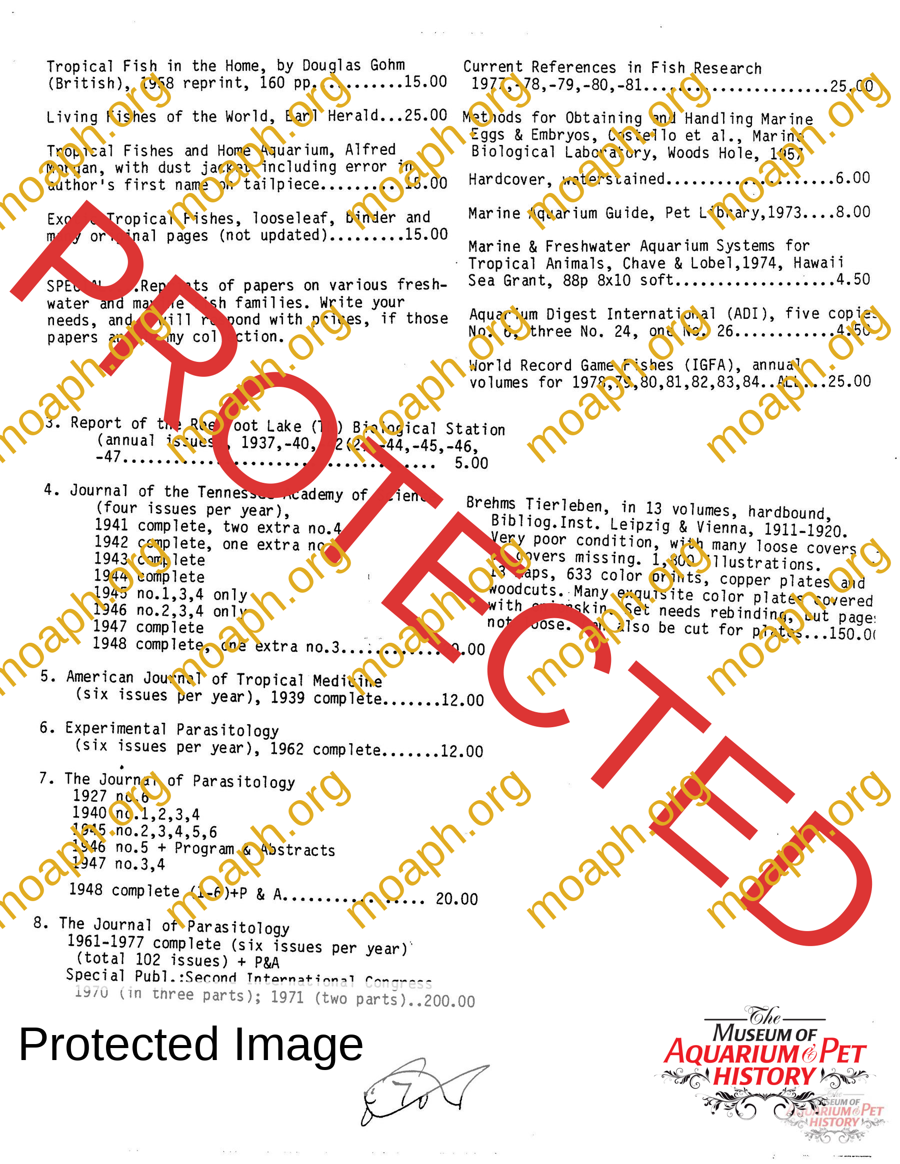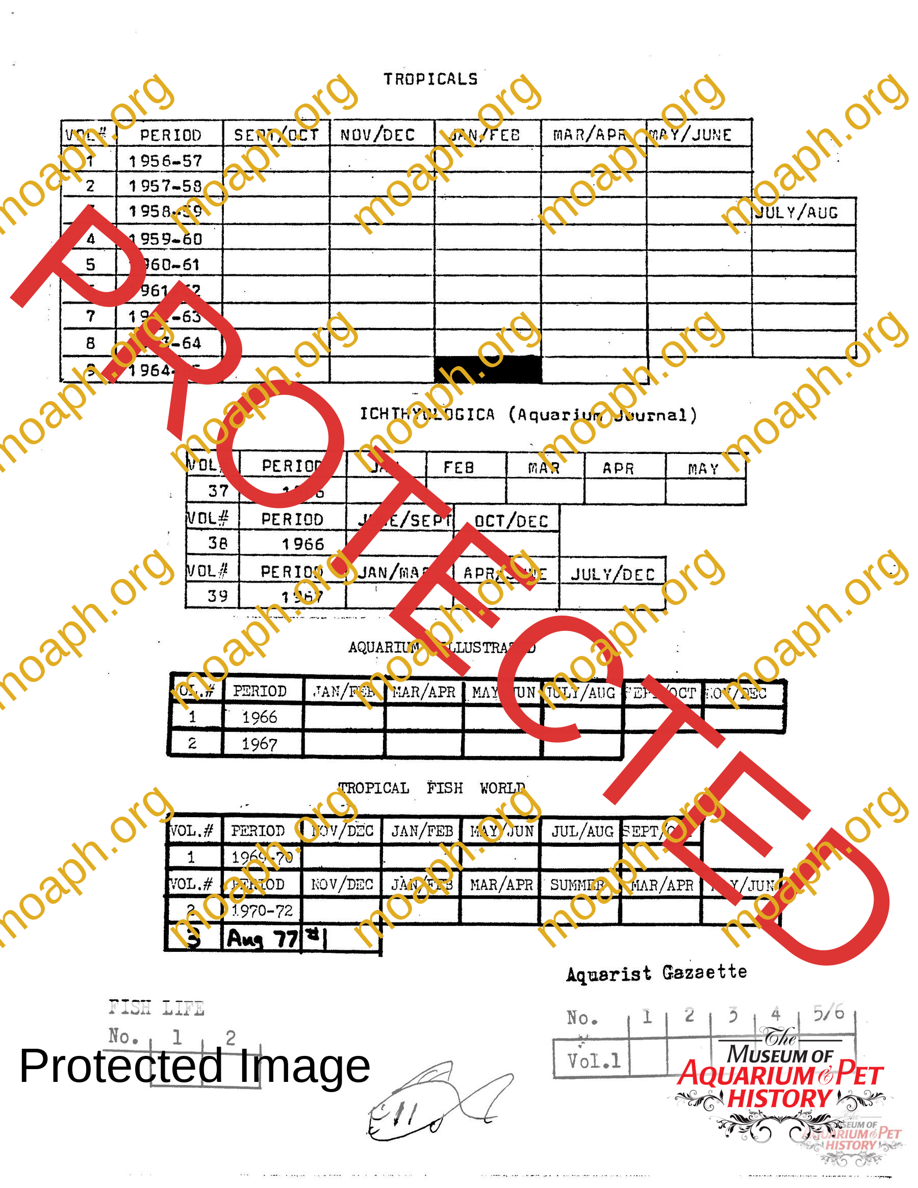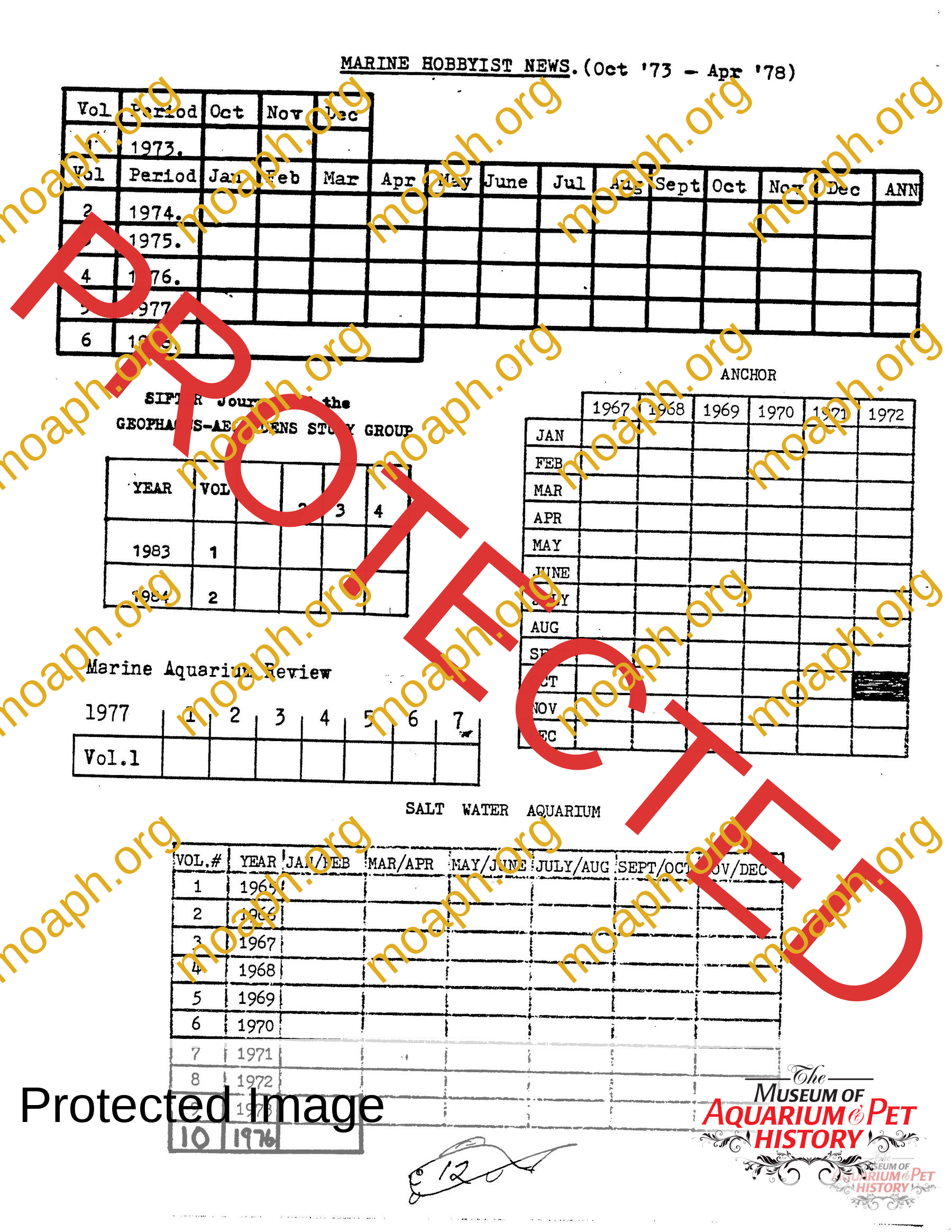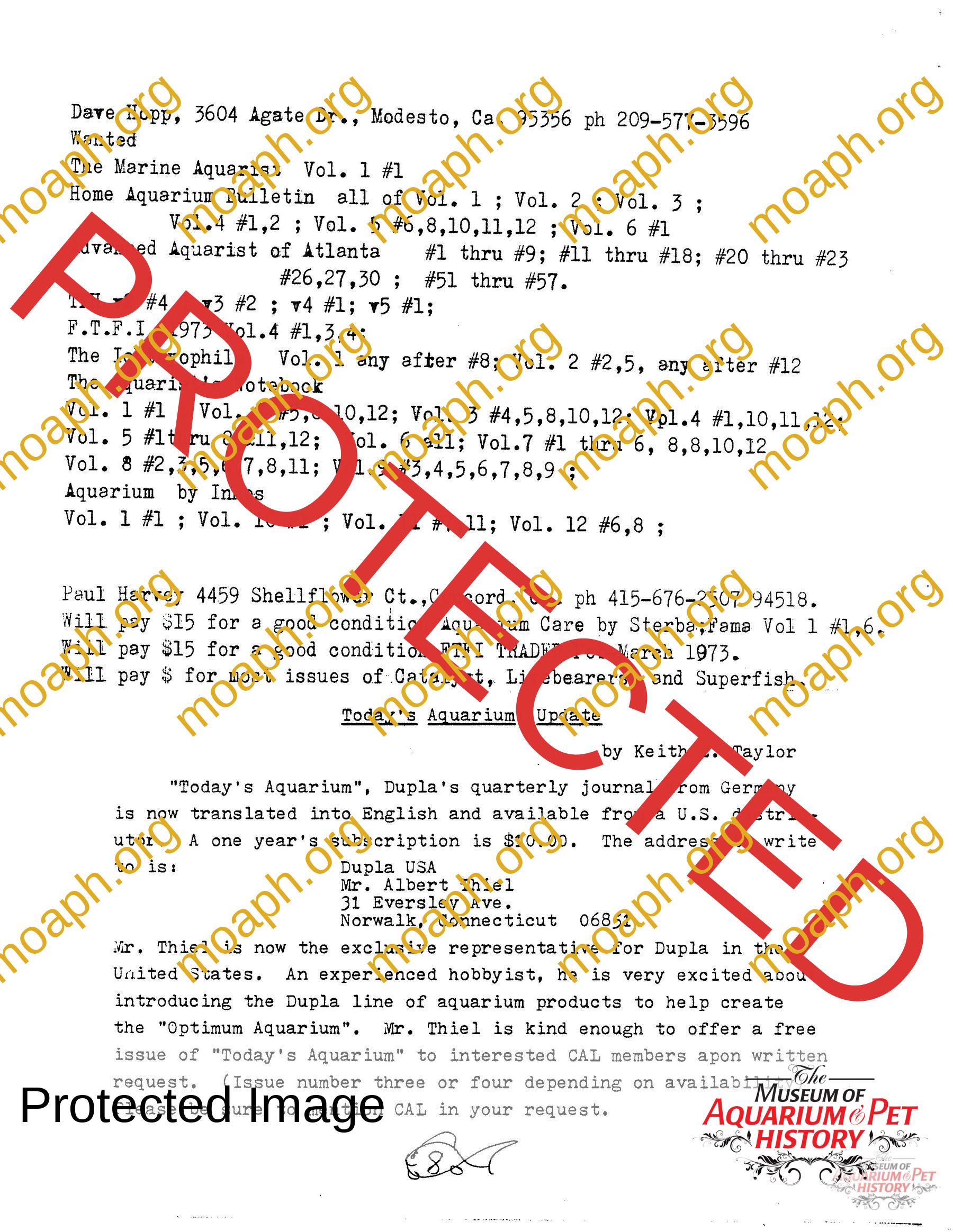 The collectors of aquarium literature was an organization founded by Dave Hopp and Paul Harvey to better organize those who collected vintage aquarium magazines and books. Each issue had articles on aquarium publication history plus articles related to book and magazine collecting in general. This publication ran from May 1983 through June 1994 for a total of 55 issues. (August through November 1988 was a combined issue 25/26 and March through July 1989 was marked 29/30 1989.)
