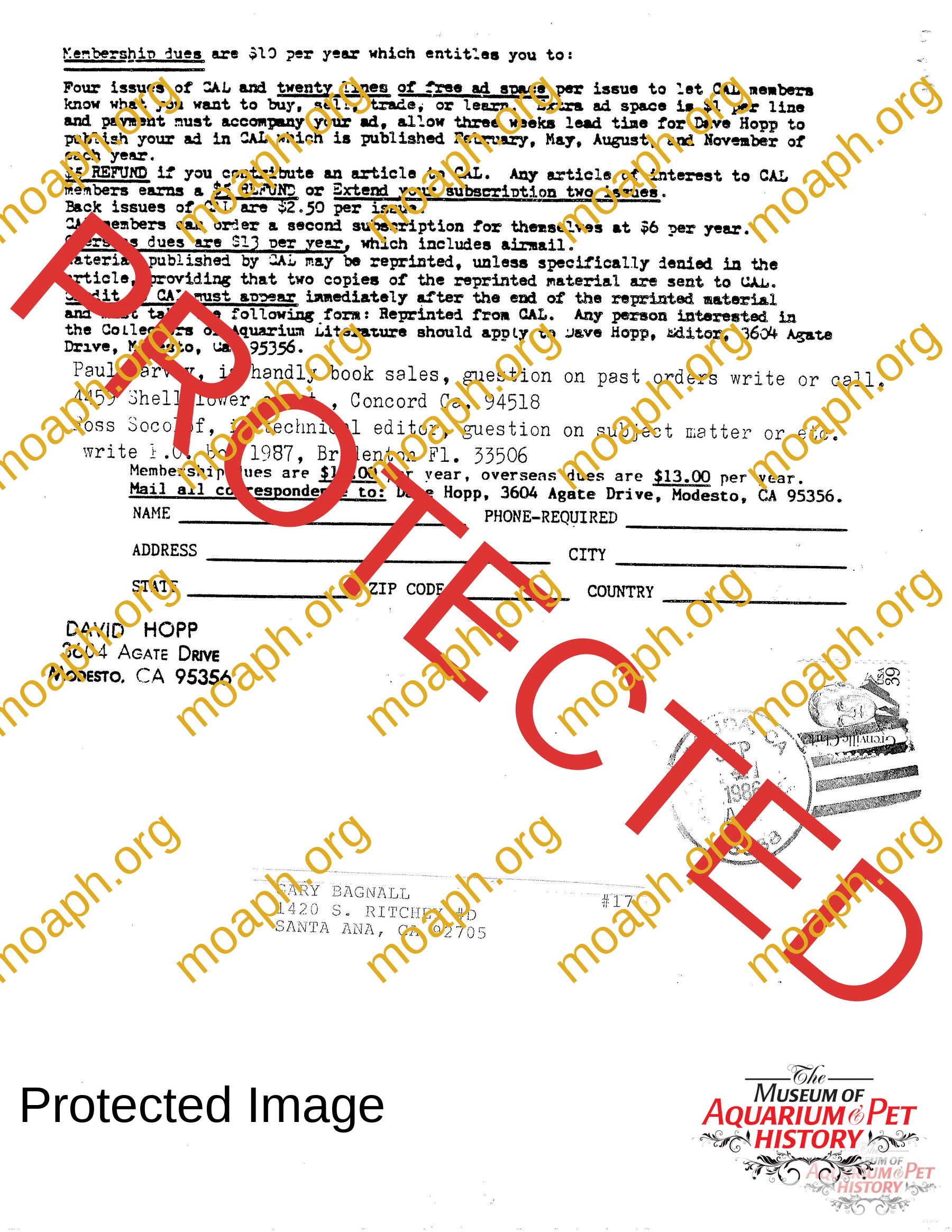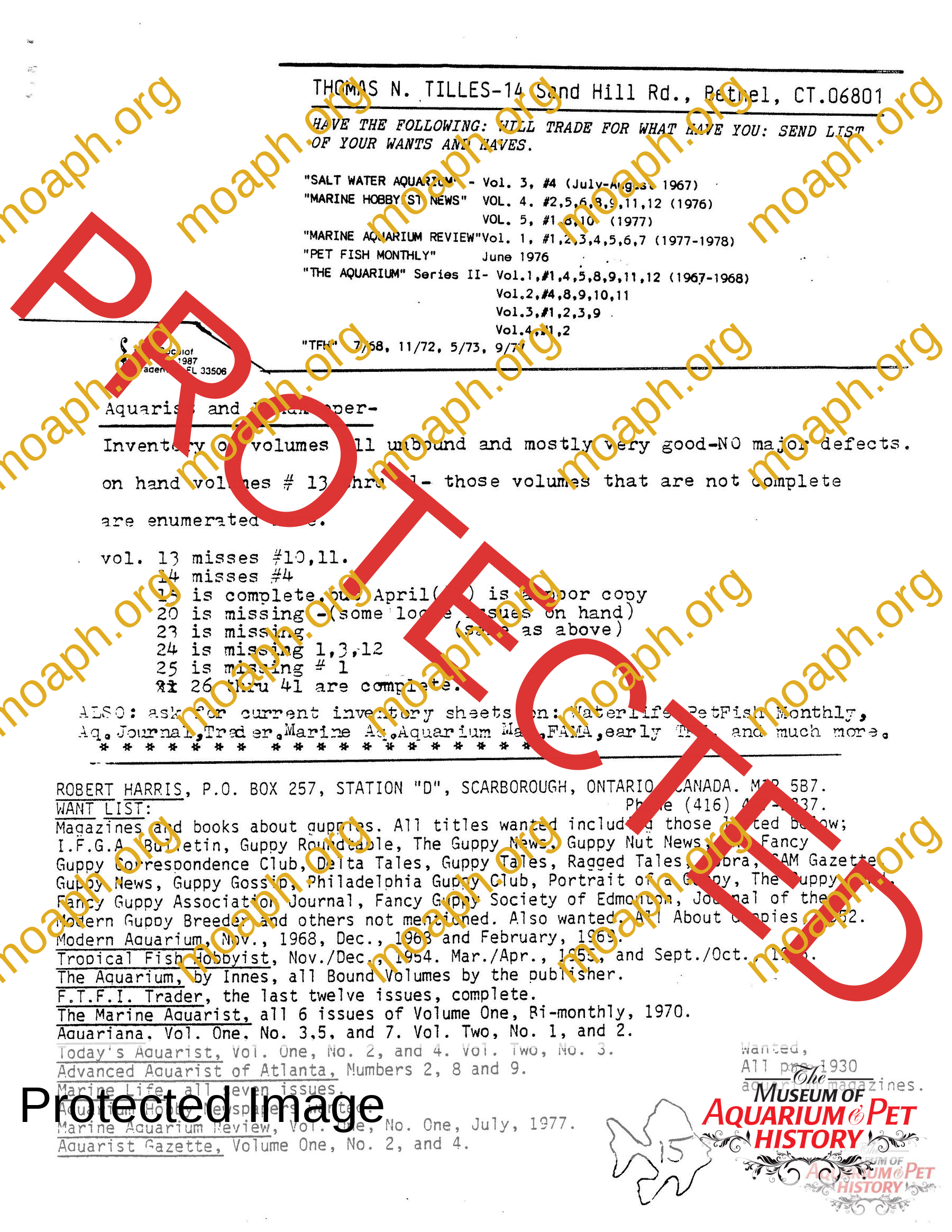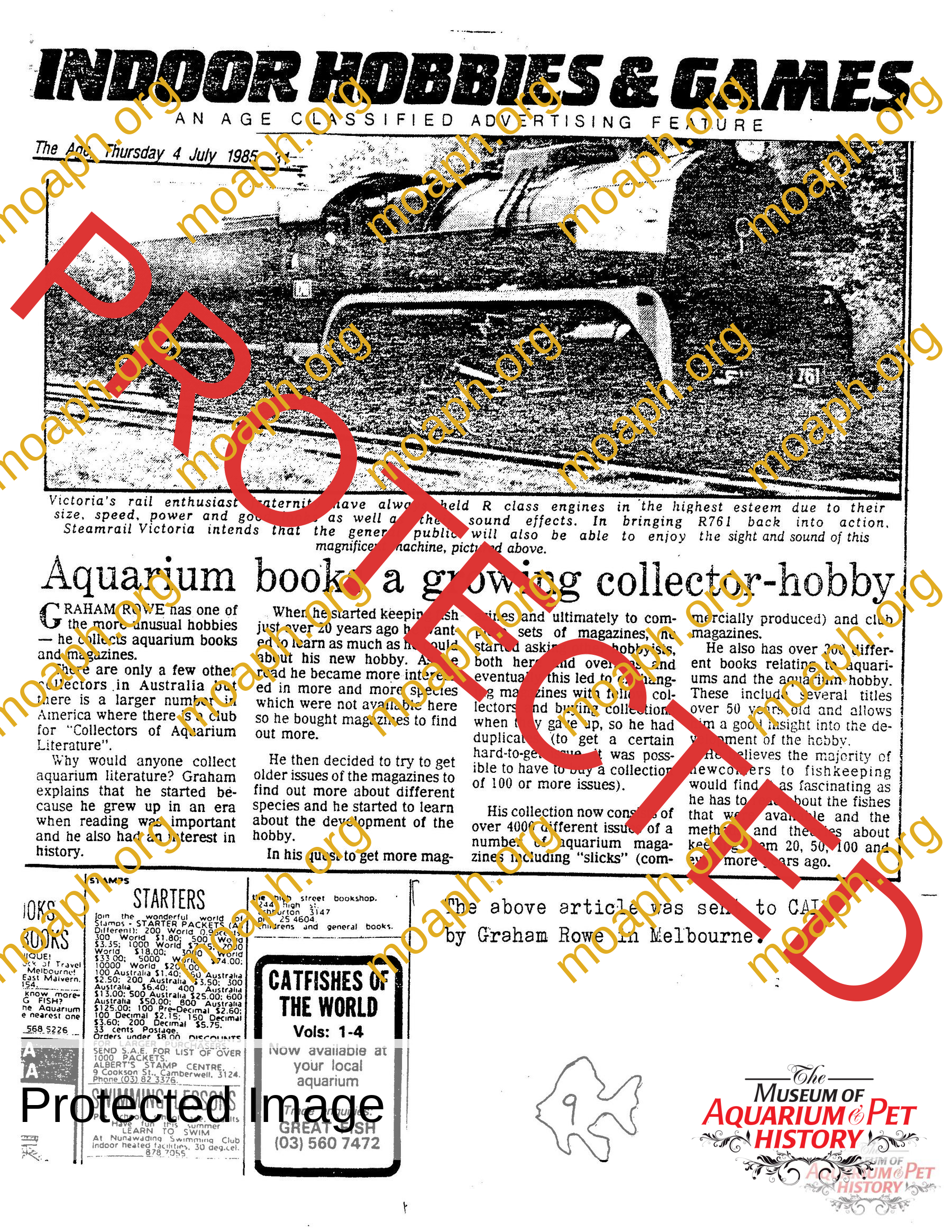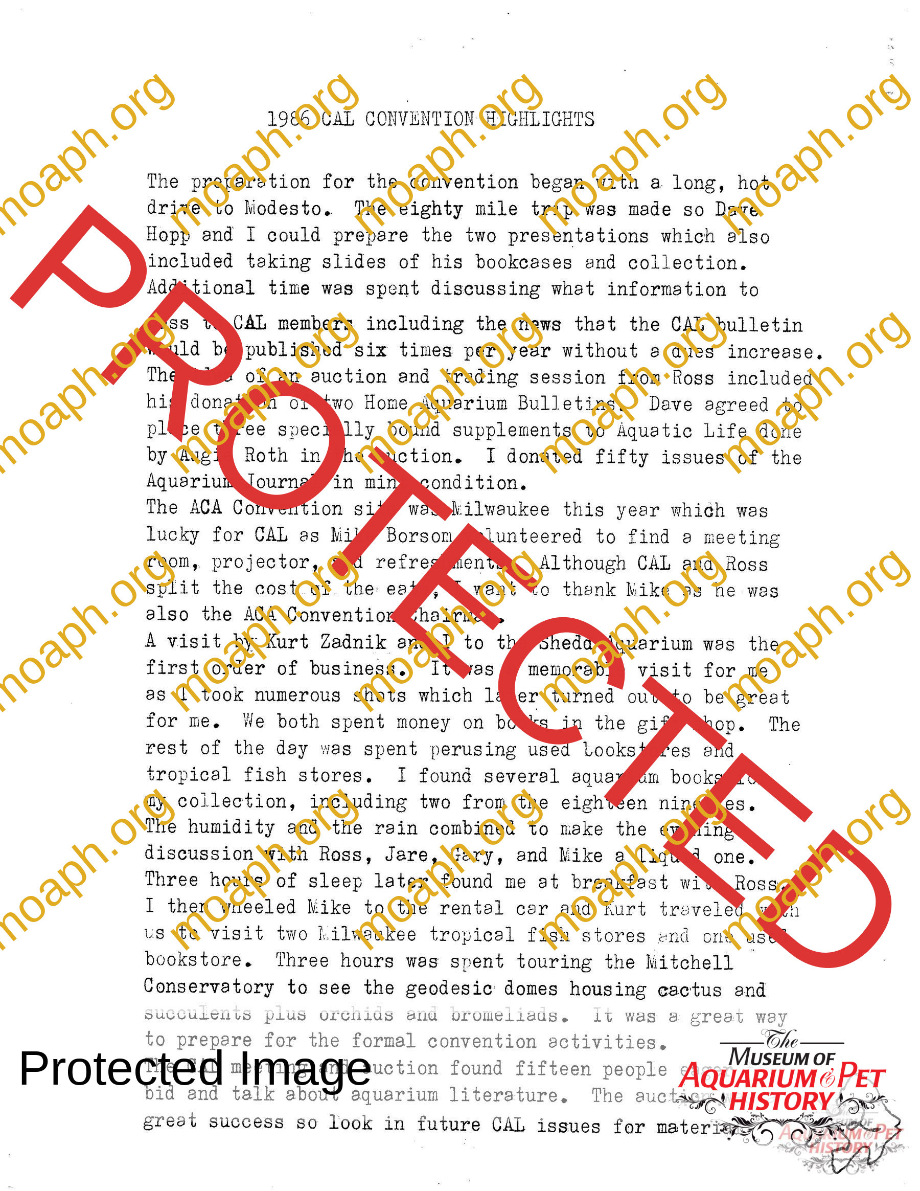 The collectors of aquarium literature was an organization founded by Dave Hopp and Paul Harvey to better organize those who collected vintage aquarium magazines and books. Each issue had articles on aquarium publication history plus articles related to book and magazine collecting in general. This publication ran from May 1983 through June 1994 for a total of 55 issues. (August through November 1988 was a combined issue 25/26 and March through July 1989 was marked 29/30 1989.)