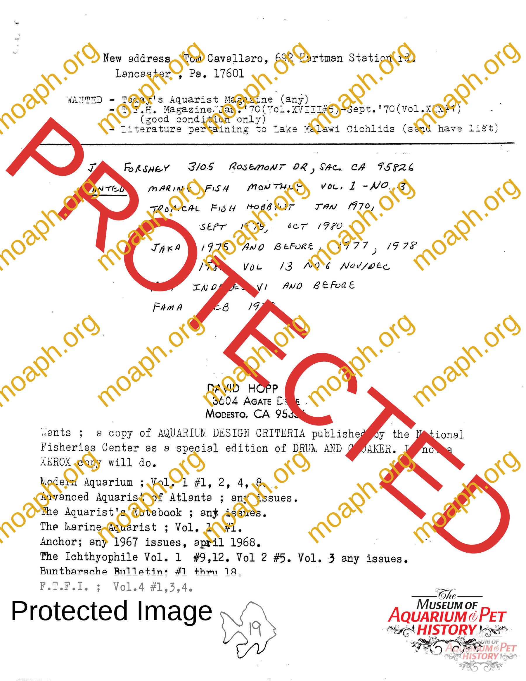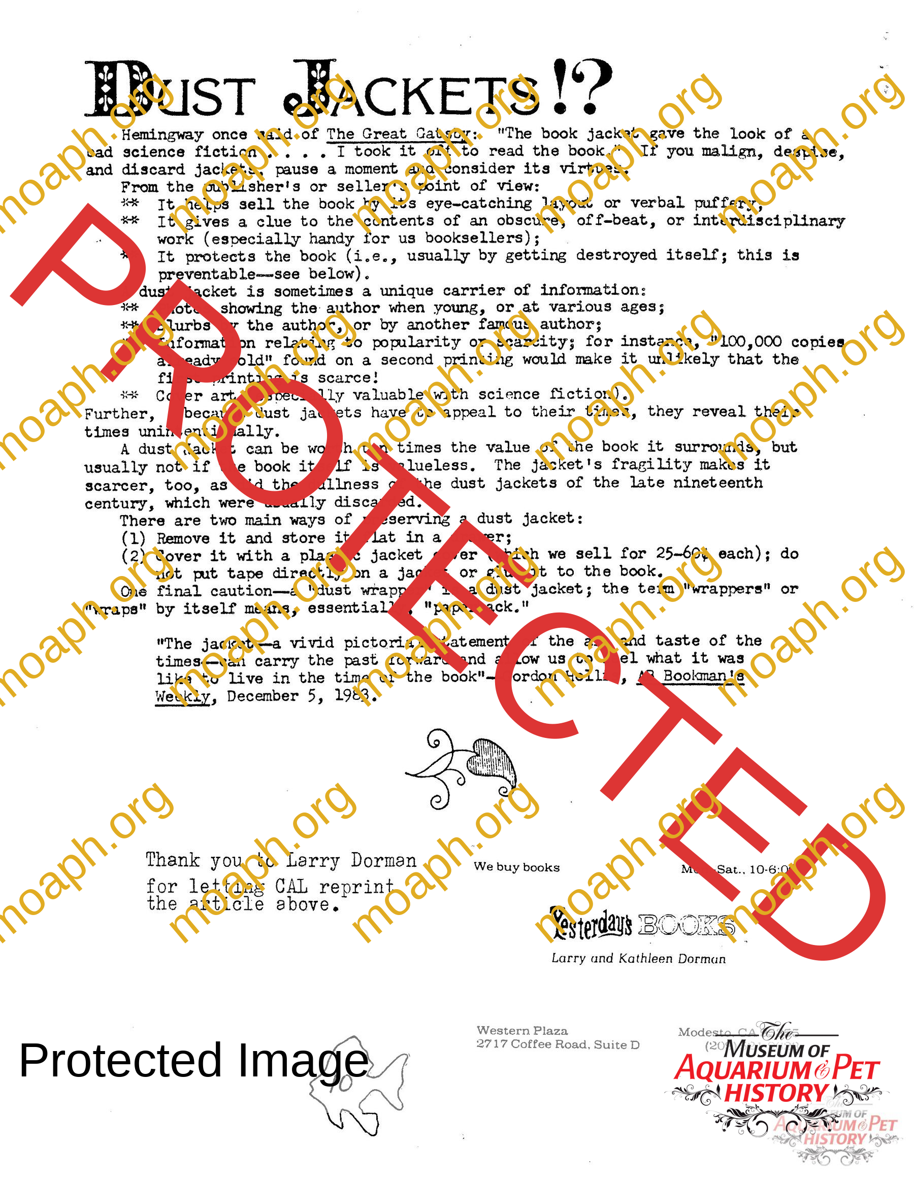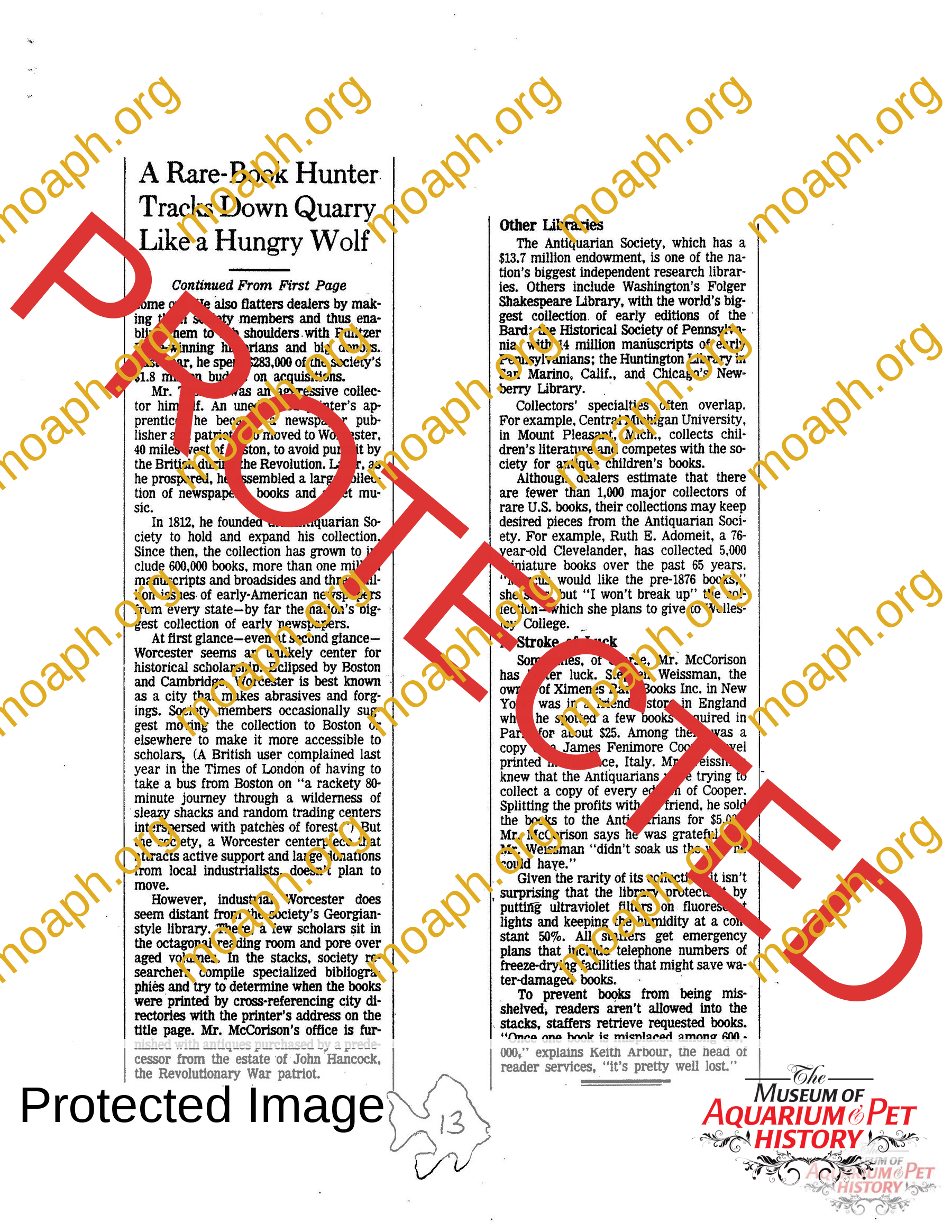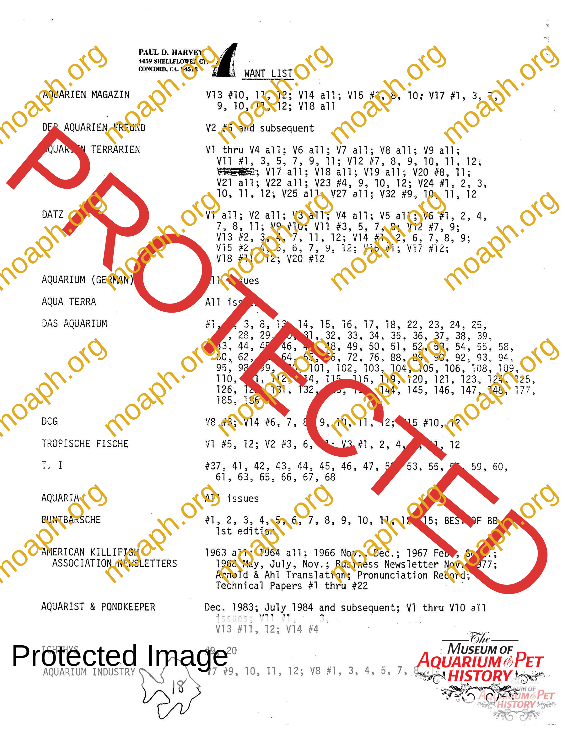 The collectors of aquarium literature was an organization founded by Dave Hopp and Paul Harvey to better organize those who collected vintage aquarium magazines and books. Each issue had articles on aquarium publication history plus articles related to book and magazine collecting in general. This publication ran from May 1983 through June 1994 for a total of 55 issues. (August through November 1988 was a combined issue 25/26 and March through July 1989 was marked 29/30 1989.)