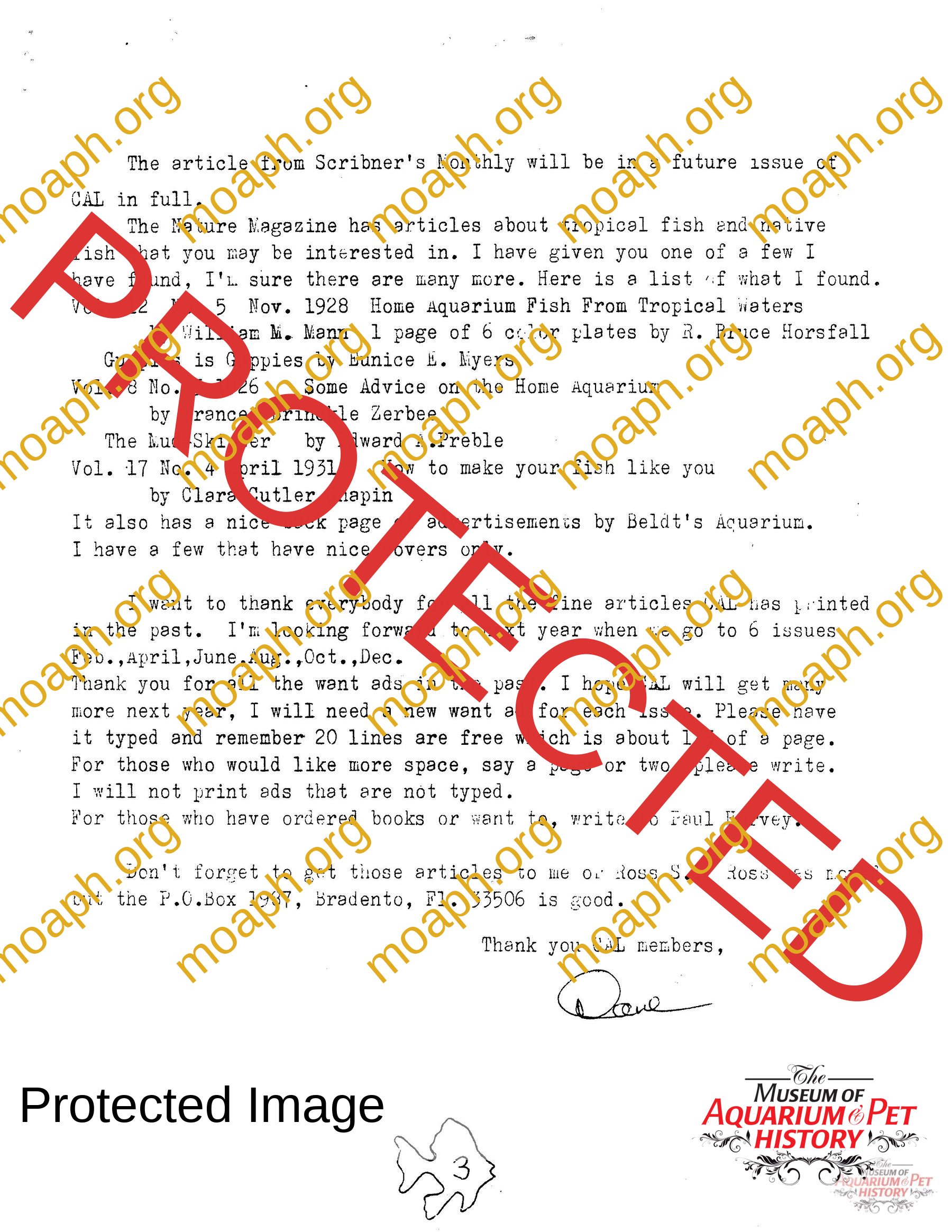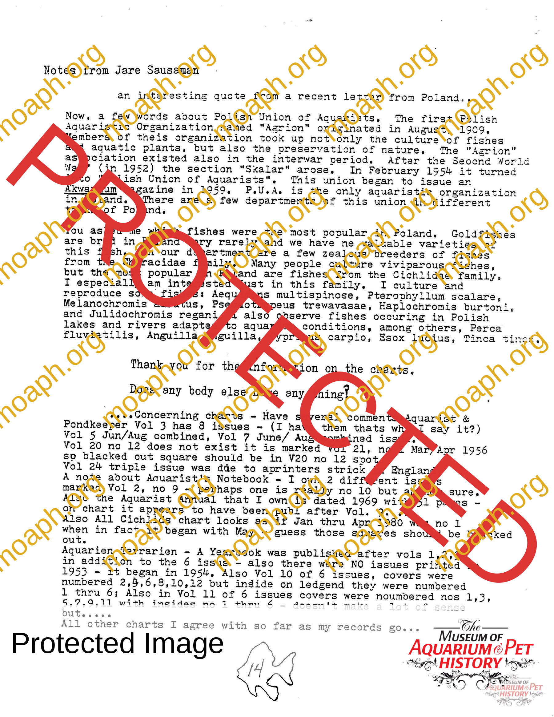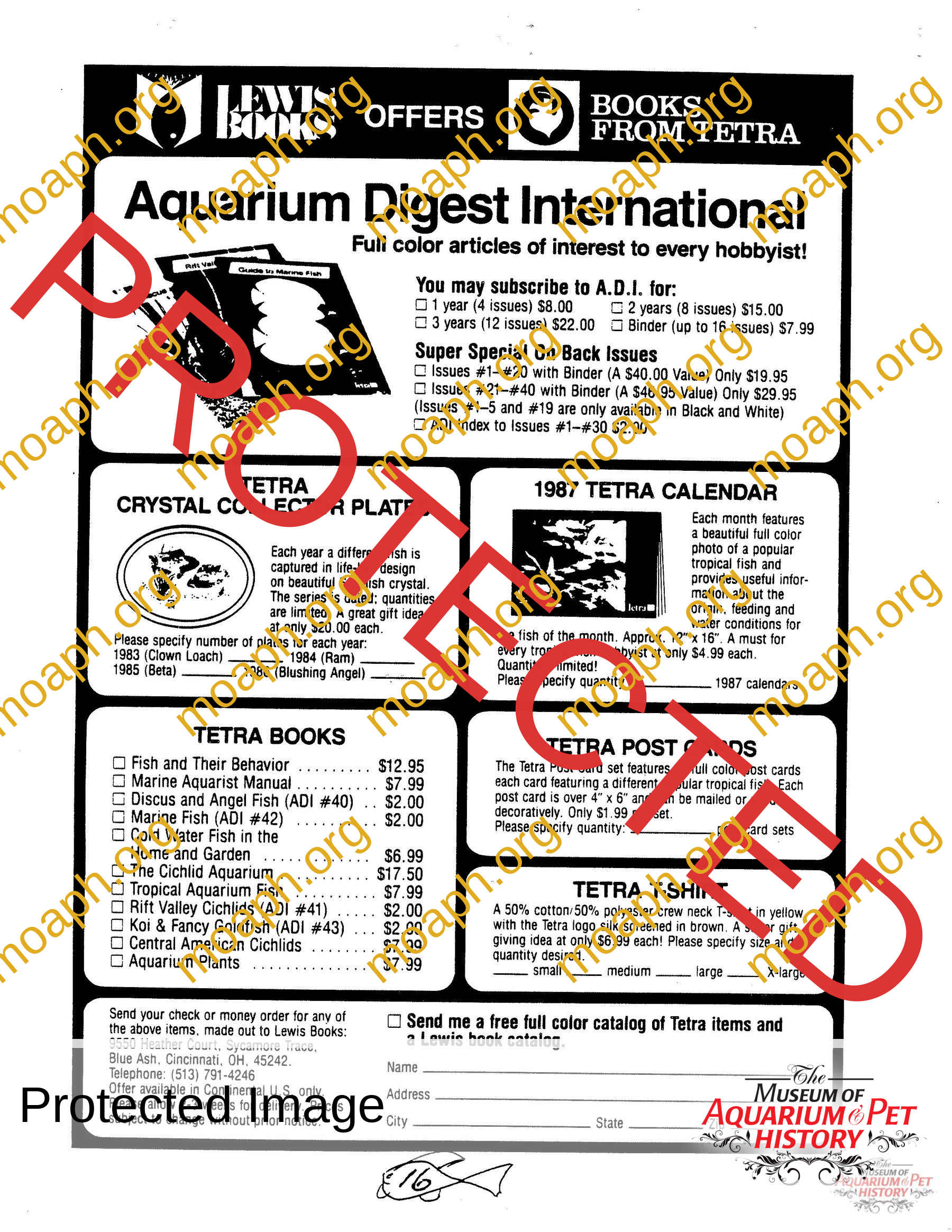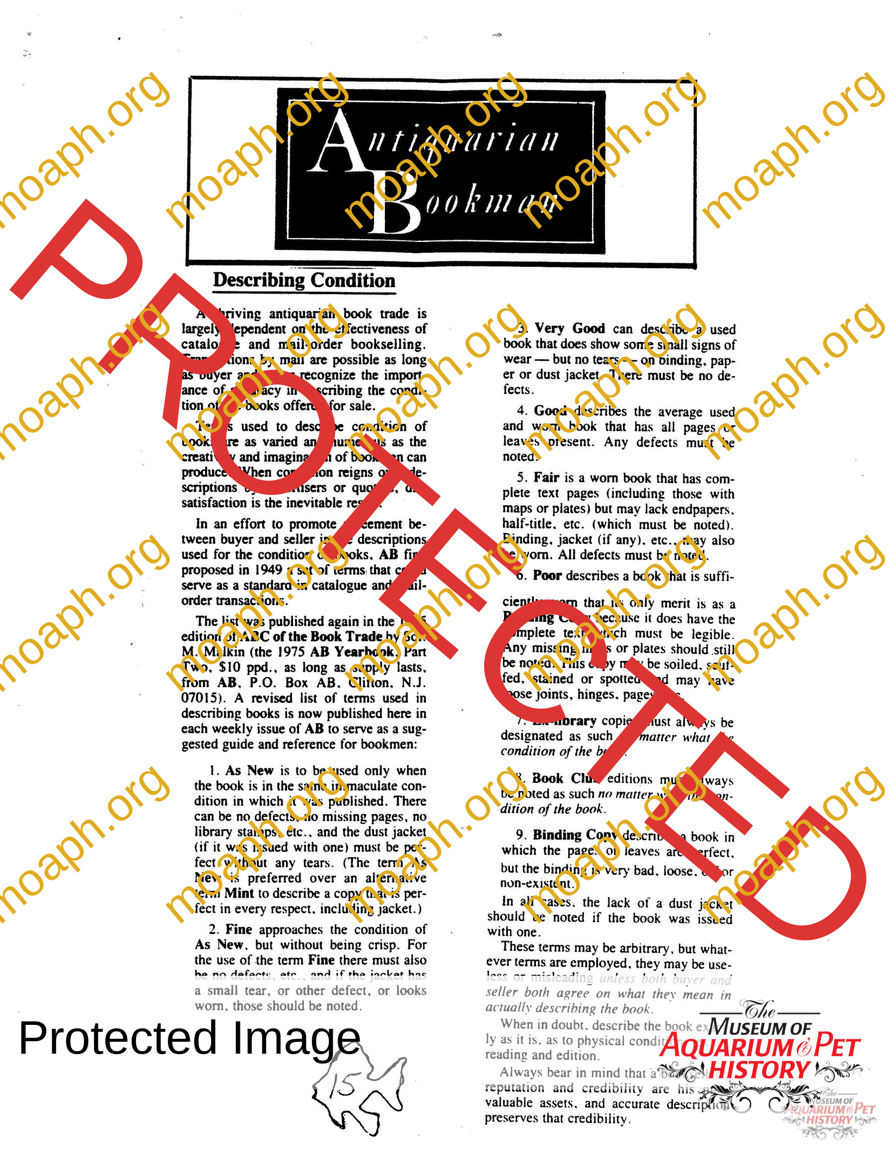 The collectors of aquarium literature was an organization founded by Dave Hopp and Paul Harvey to better organize those who collected vintage aquarium magazines and books. Each issue had articles on aquarium publication history plus articles related to book and magazine collecting in general. This publication ran from May 1983 through June 1994 for a total of 55 issues. (August through November 1988 was a combined issue 25/26 and March through July 1989 was marked 29/30 1989.)