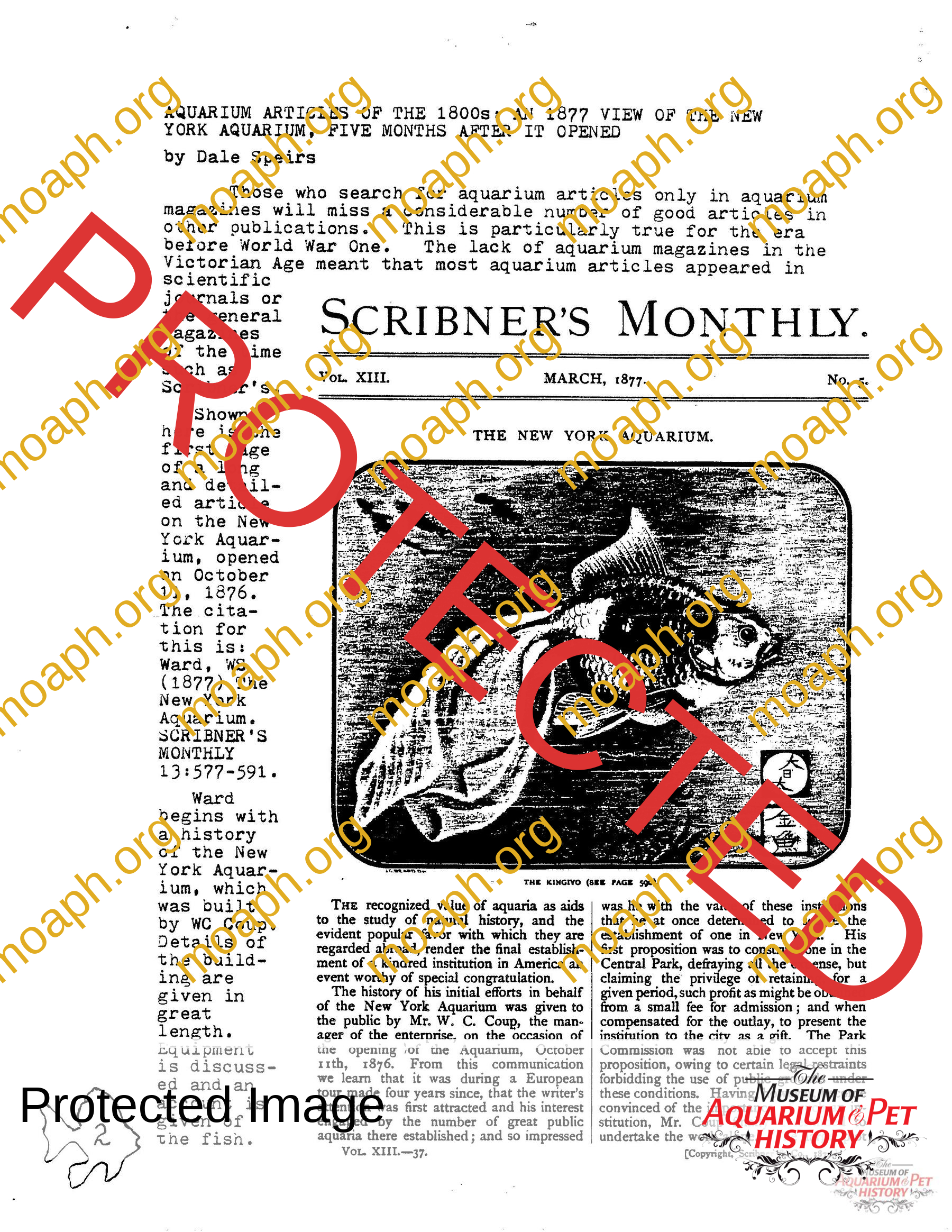 1. Aquarium Articles of the 1800s: An 1877 View of the New York Aquarium, Five Months After it Opened by Dale Speirs