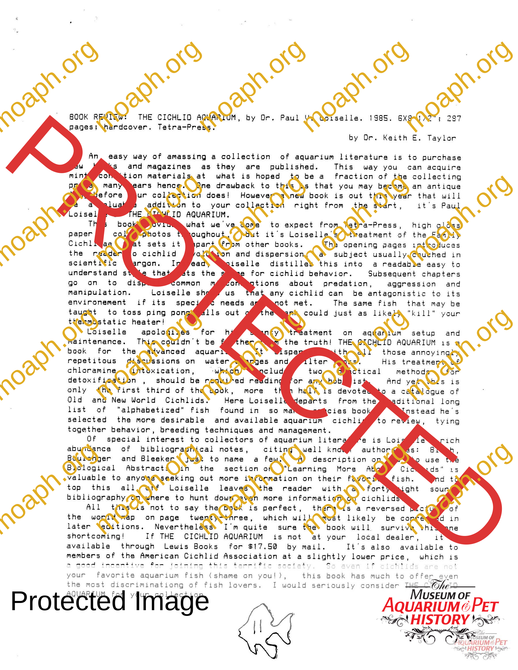 5. Book Reviewby Dr. Keith E. Taylor: The Cichlid Aquarium by Dr. Paul V. Loiselle