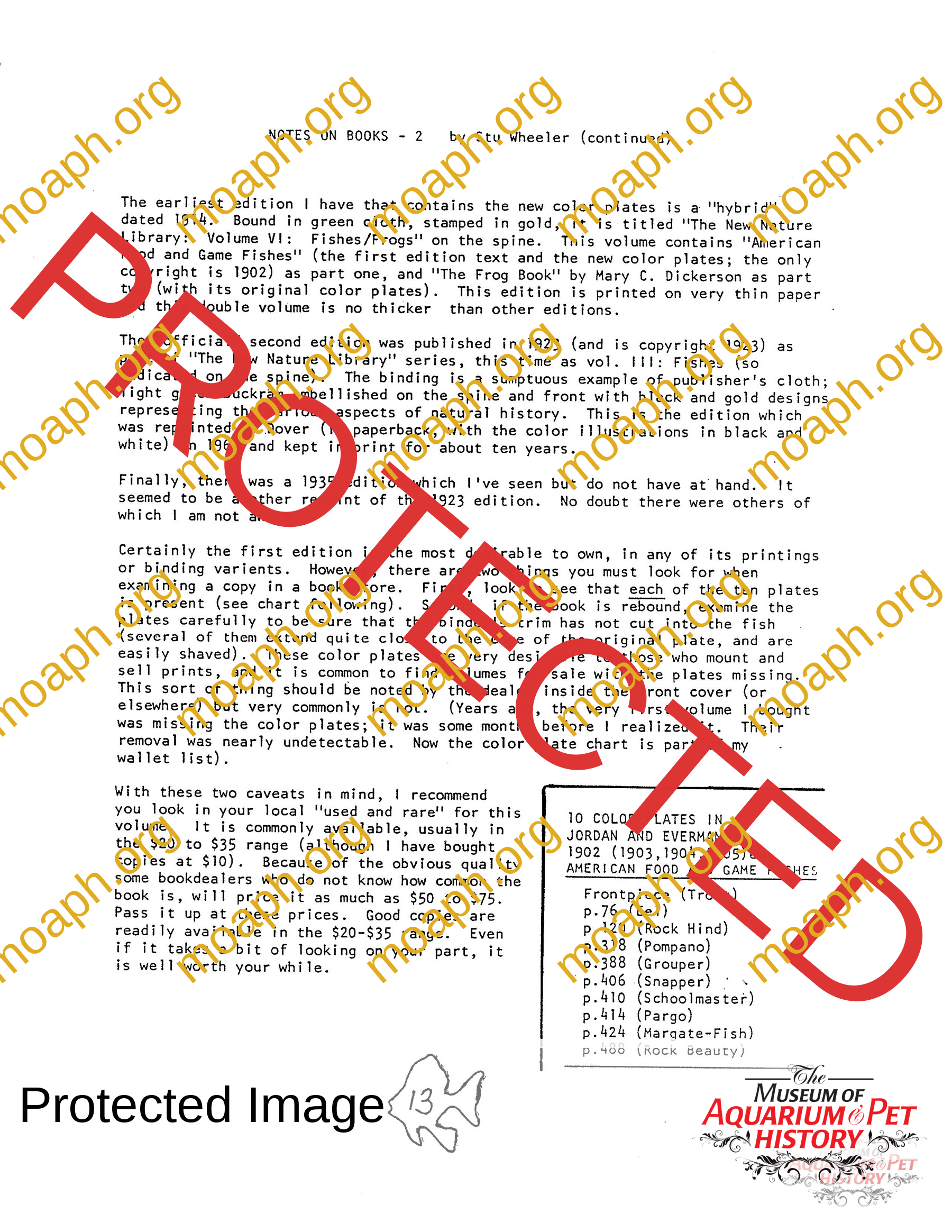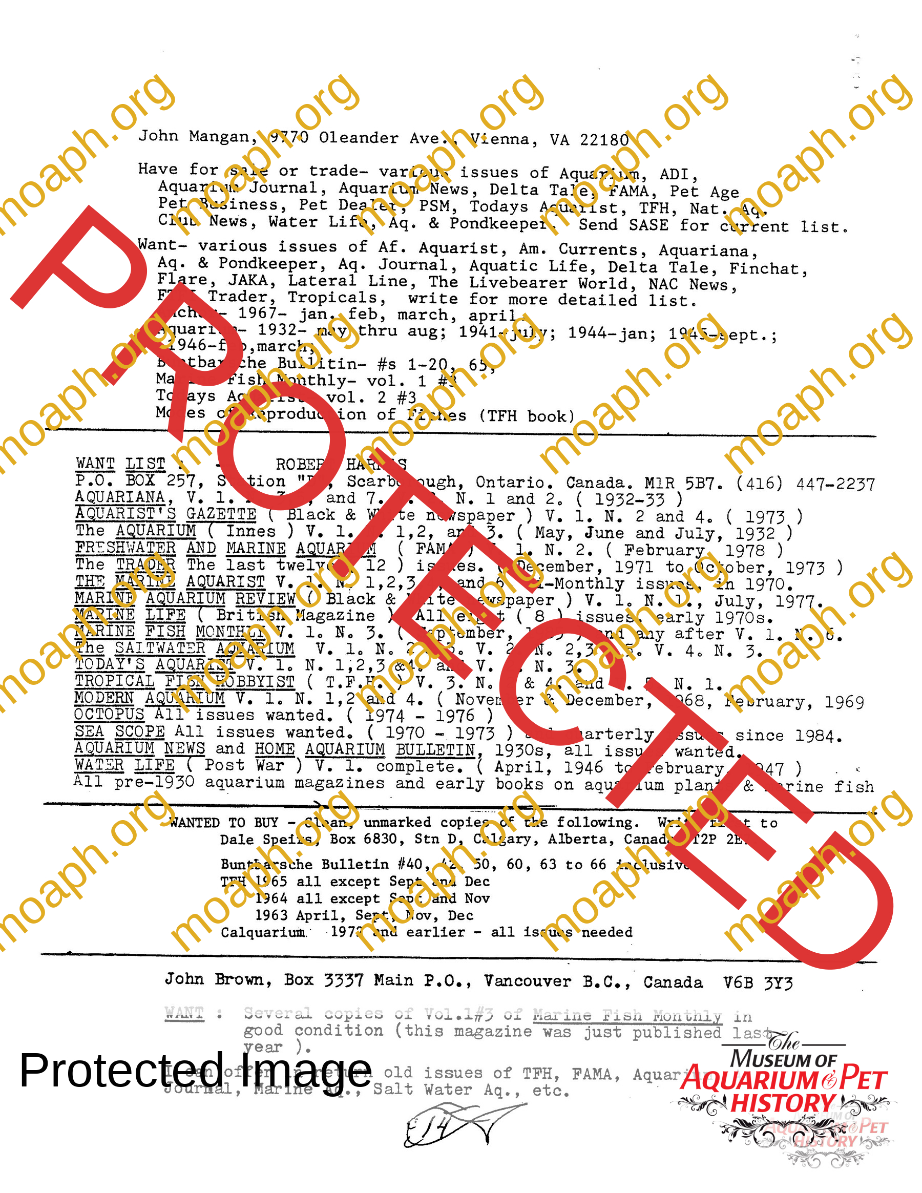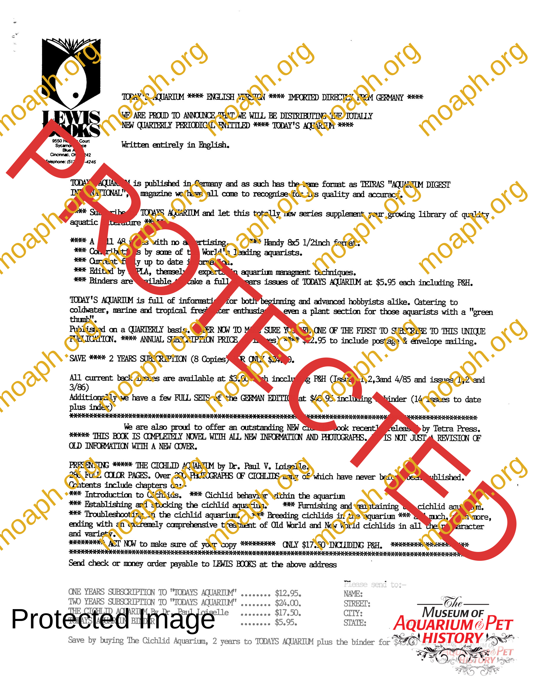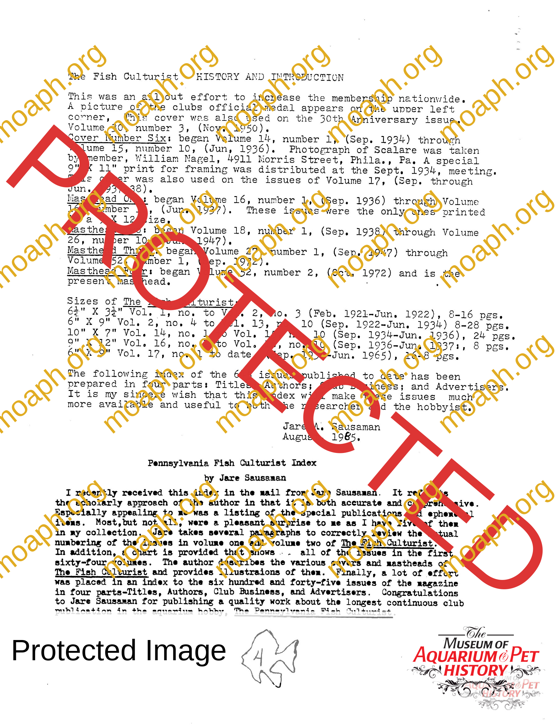 The collectors of aquarium literature was an organization founded by Dave Hopp and Paul Harvey to better organize those who collected vintage aquarium magazines and books. Each issue had articles on aquarium publication history plus articles related to book and magazine collecting in general. This publication ran from May 1983 through June 1994 for a total of 55 issues. (August through November 1988 was a combined issue 25/26 and March through July 1989 was marked 29/30 1989.)