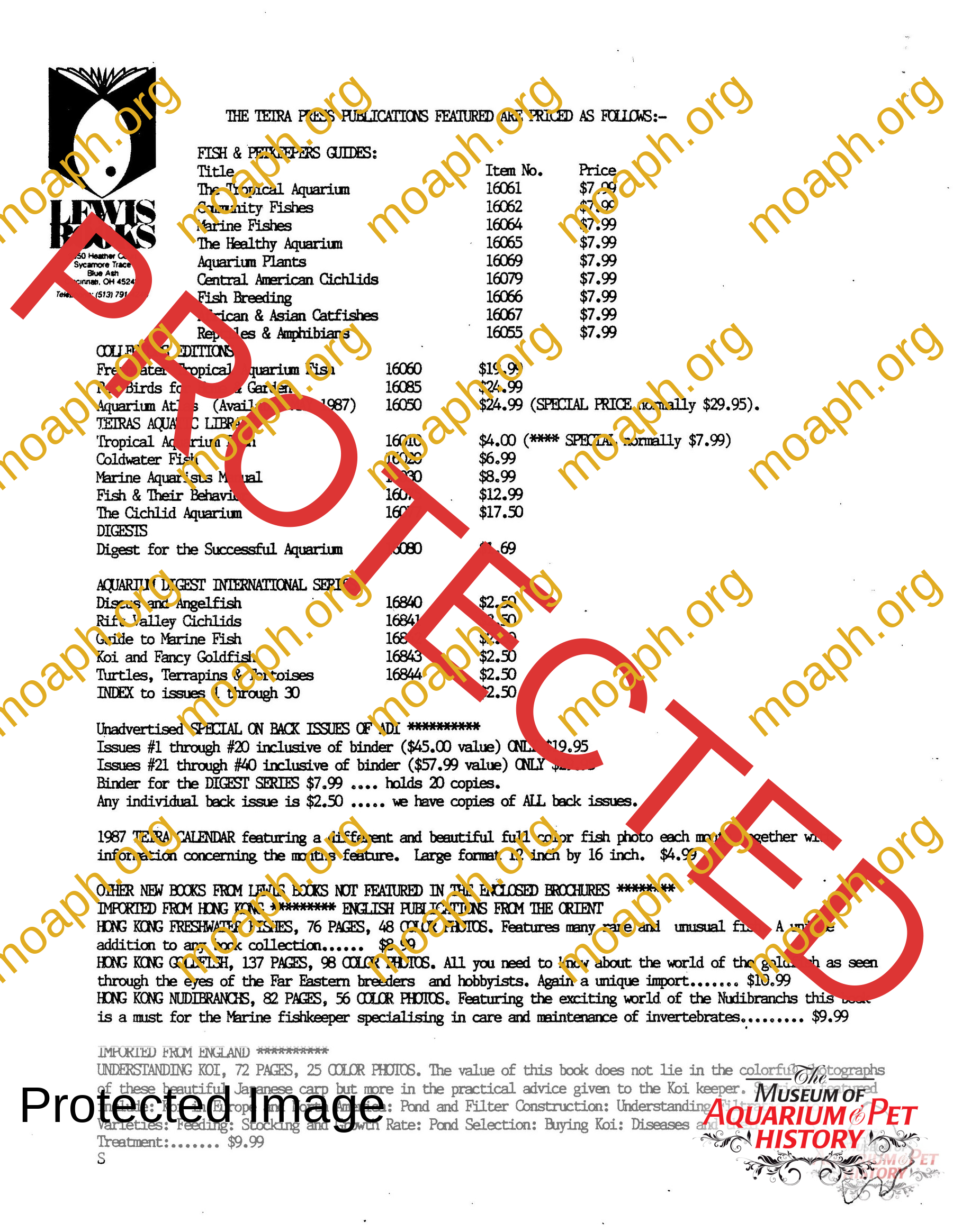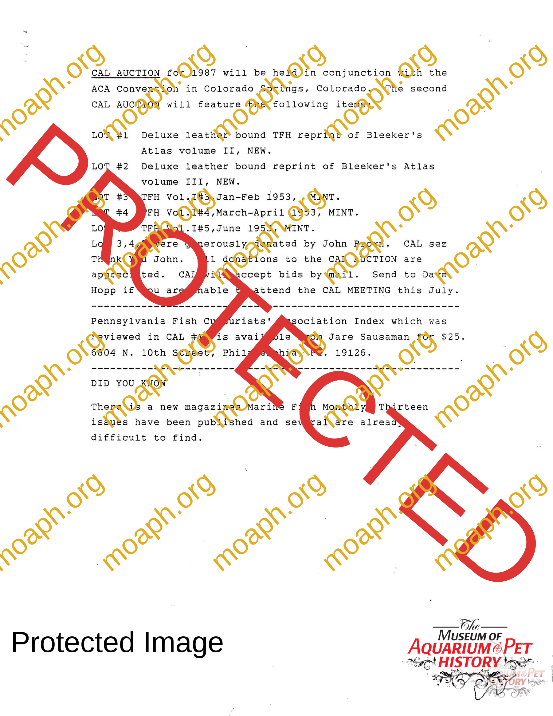Collectors of Aquarium Literature – Number 17 April 1987
