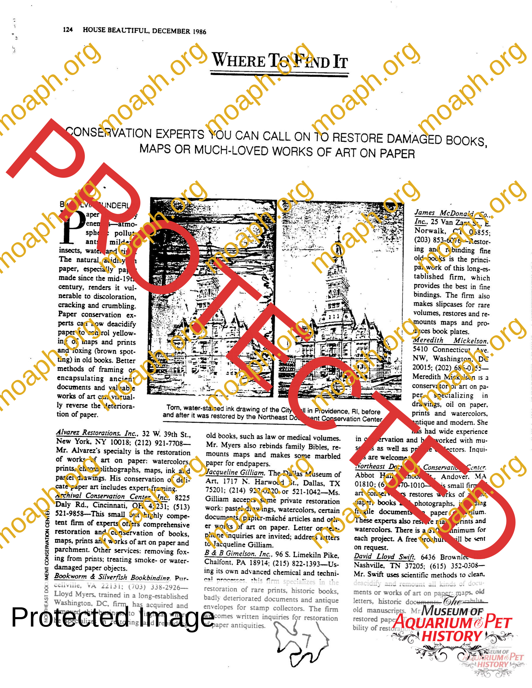 - Where to Find It: Conservation Experts You Can Call on to Restore Damaged Books, Maps or Much-Loved Works of Art on Paper by Sylvia Sunderlin