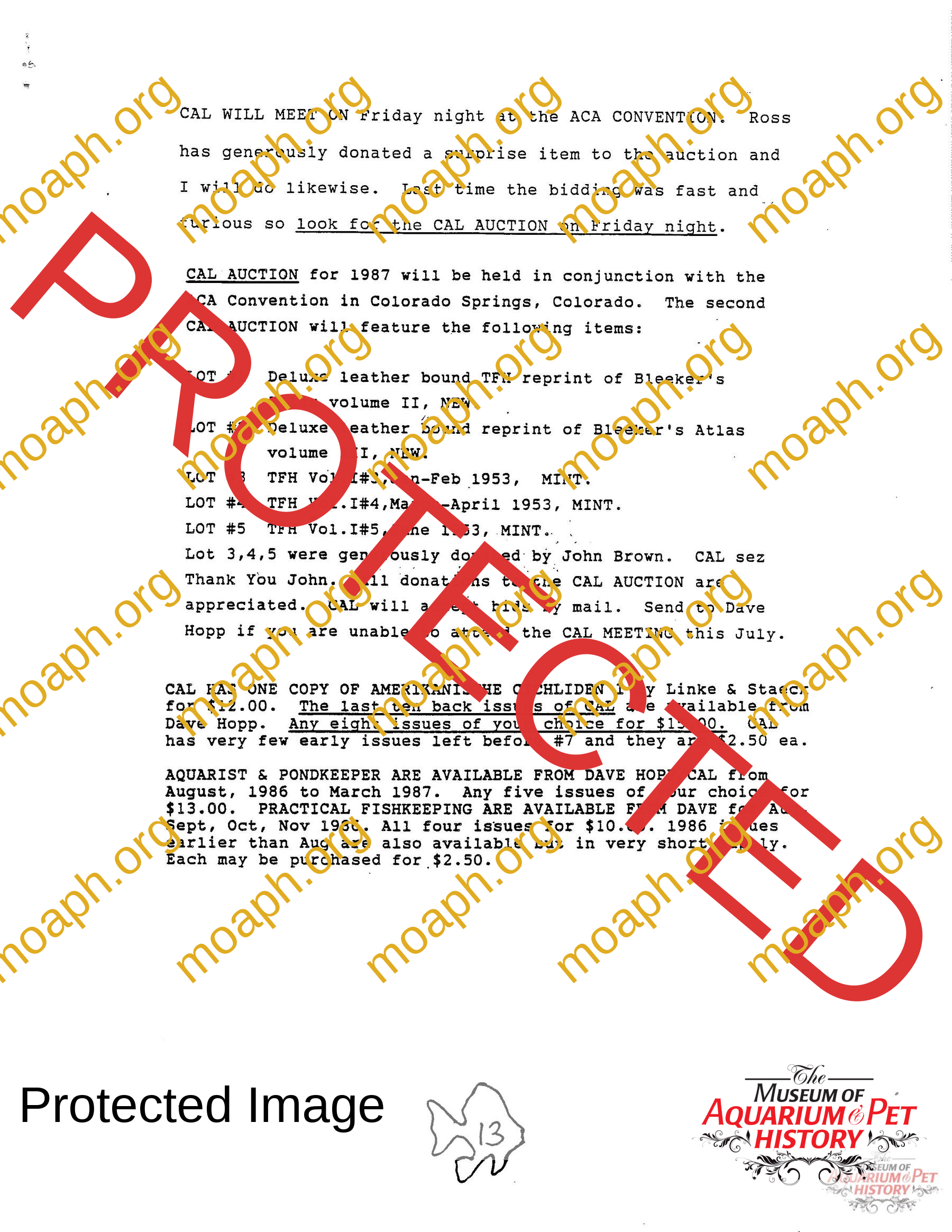 Collectors of Aquarium Literature – Number 19 August 1987