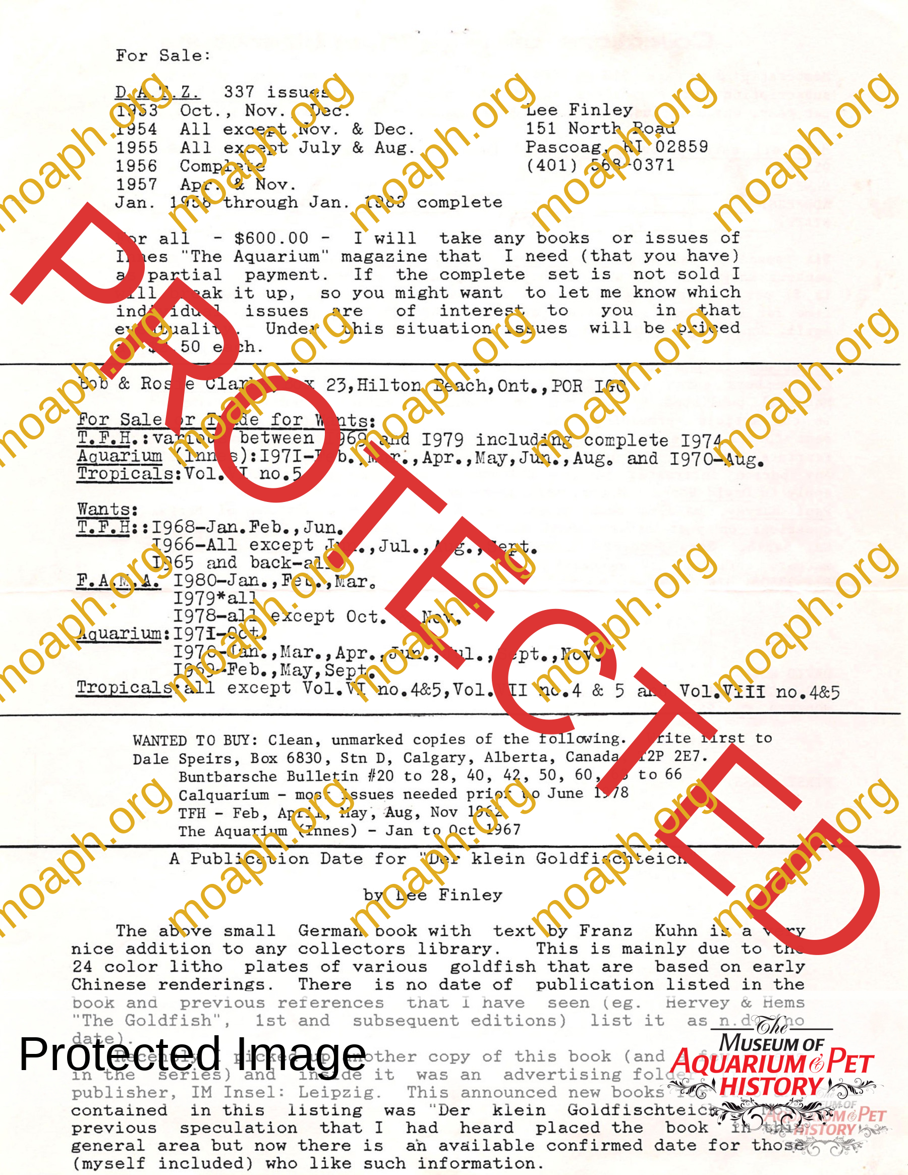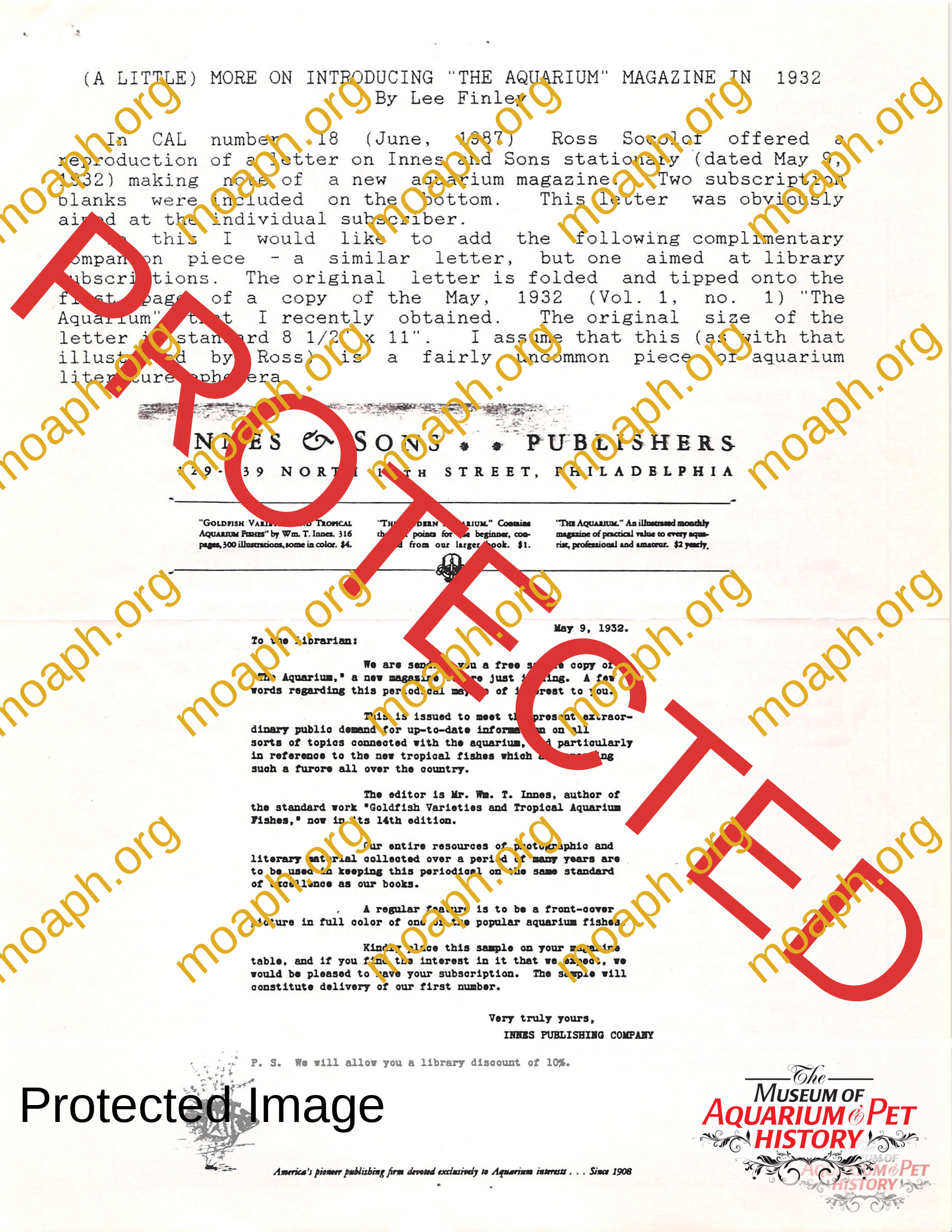 - (A Little) More on Introducing “The Aquarium” Magazine in 1932 by Lee Finley
