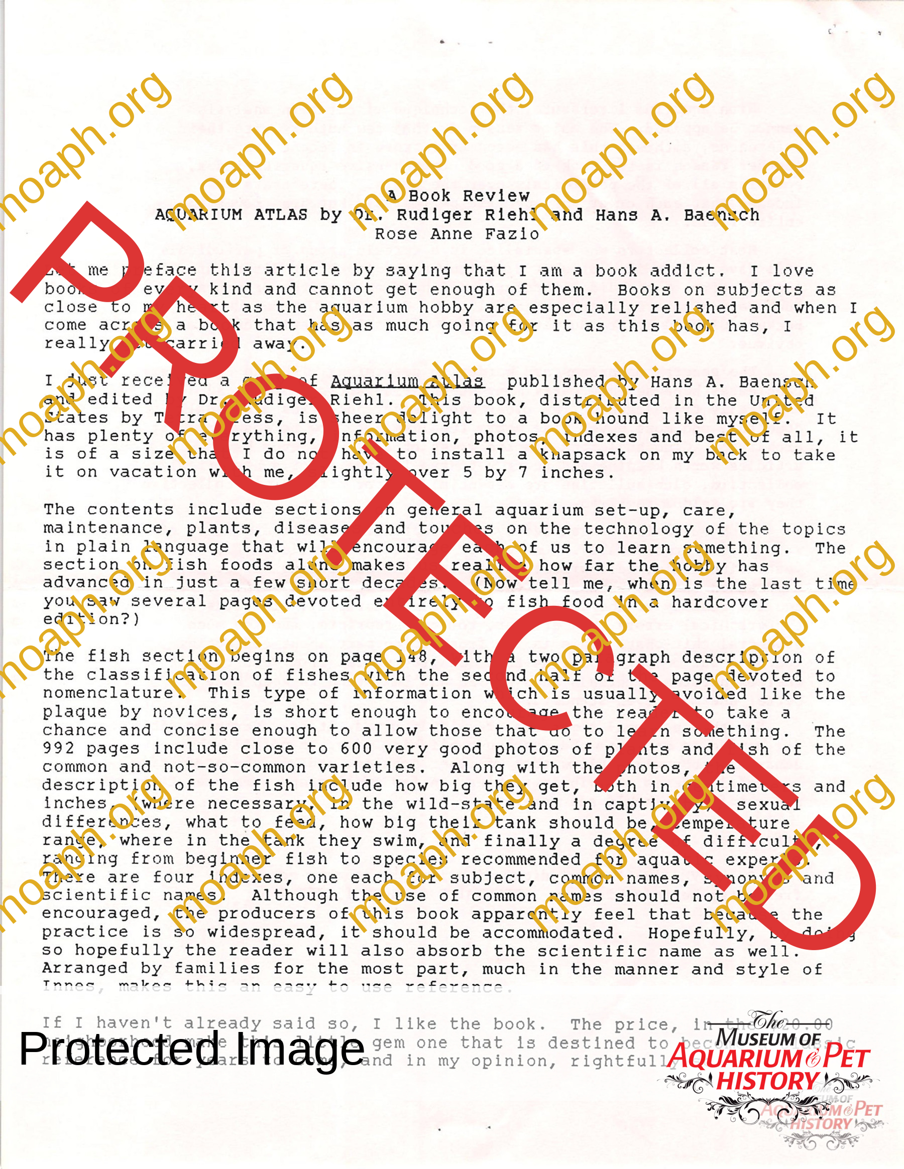 - A Book Review: Aquarium Atlas by Dr. Rudiger Riehl and Hans A. Baensch
