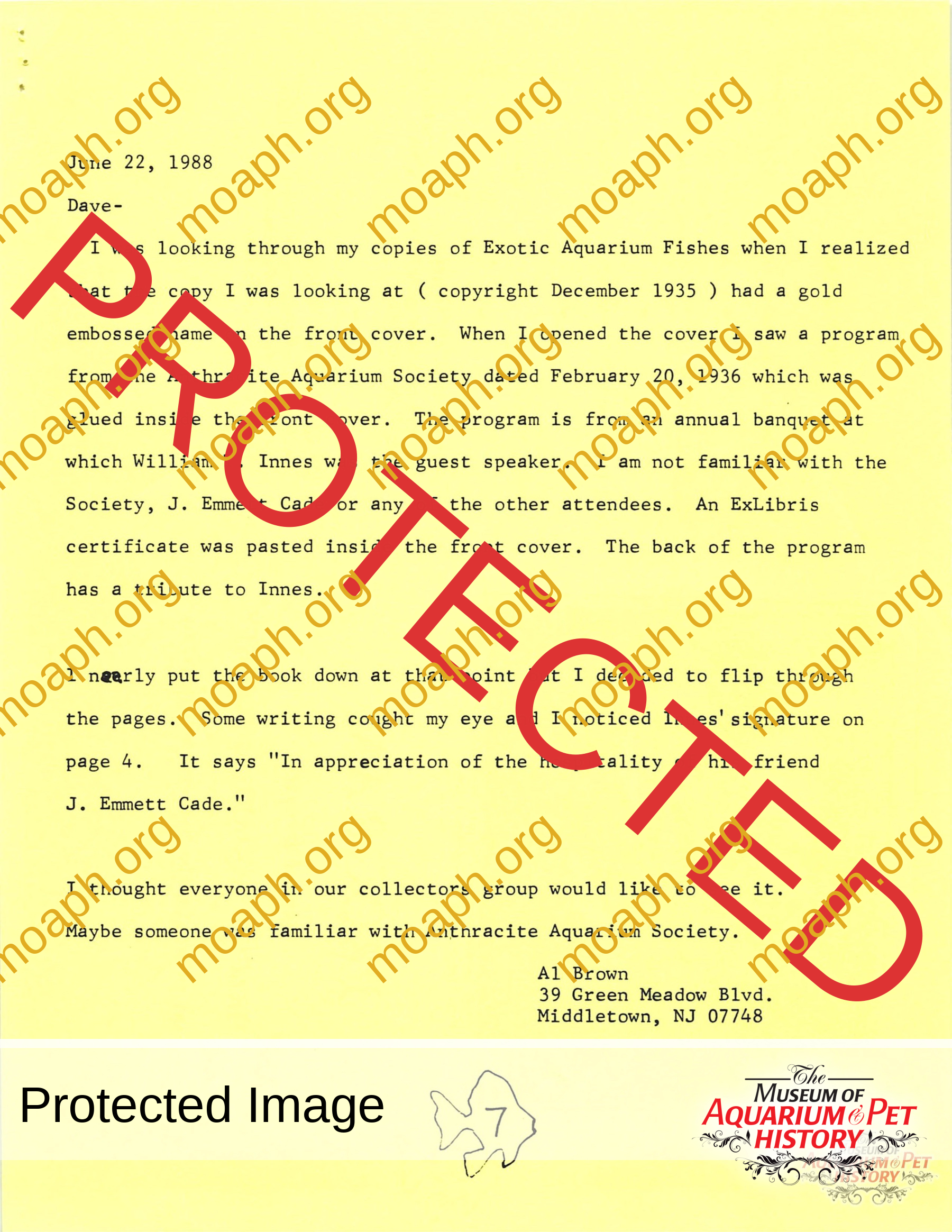 - Letter from Al Brown about Anthracite Aquarium Society with Innes’ signature