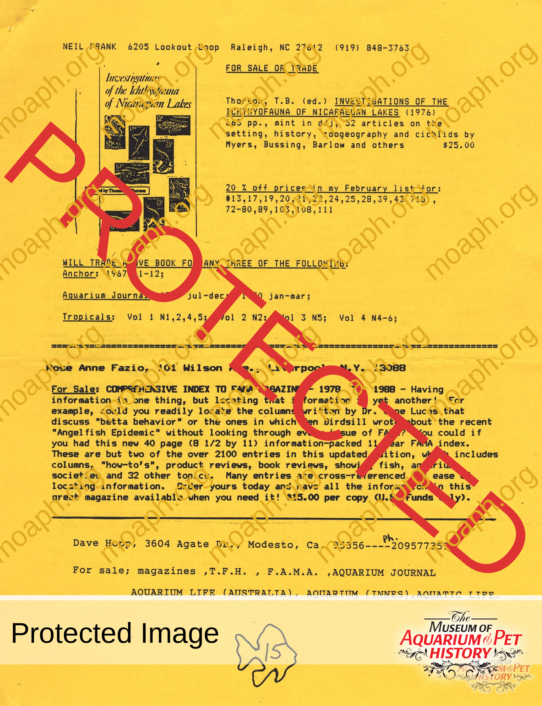 The collectors of aquarium literature was an organization founded by Dave Hopp and Paul Harvey to better organize those who collected vintage aquarium magazines and books. Each issue had articles on aquarium publication history plus articles related to book and magazine collecting in general. This publication ran from May 1983 through June 1994 for a total of 55 issues. (August through November 1988 was a combined issue 25/26 and March through July 1989 was marked 29/30 1989.)