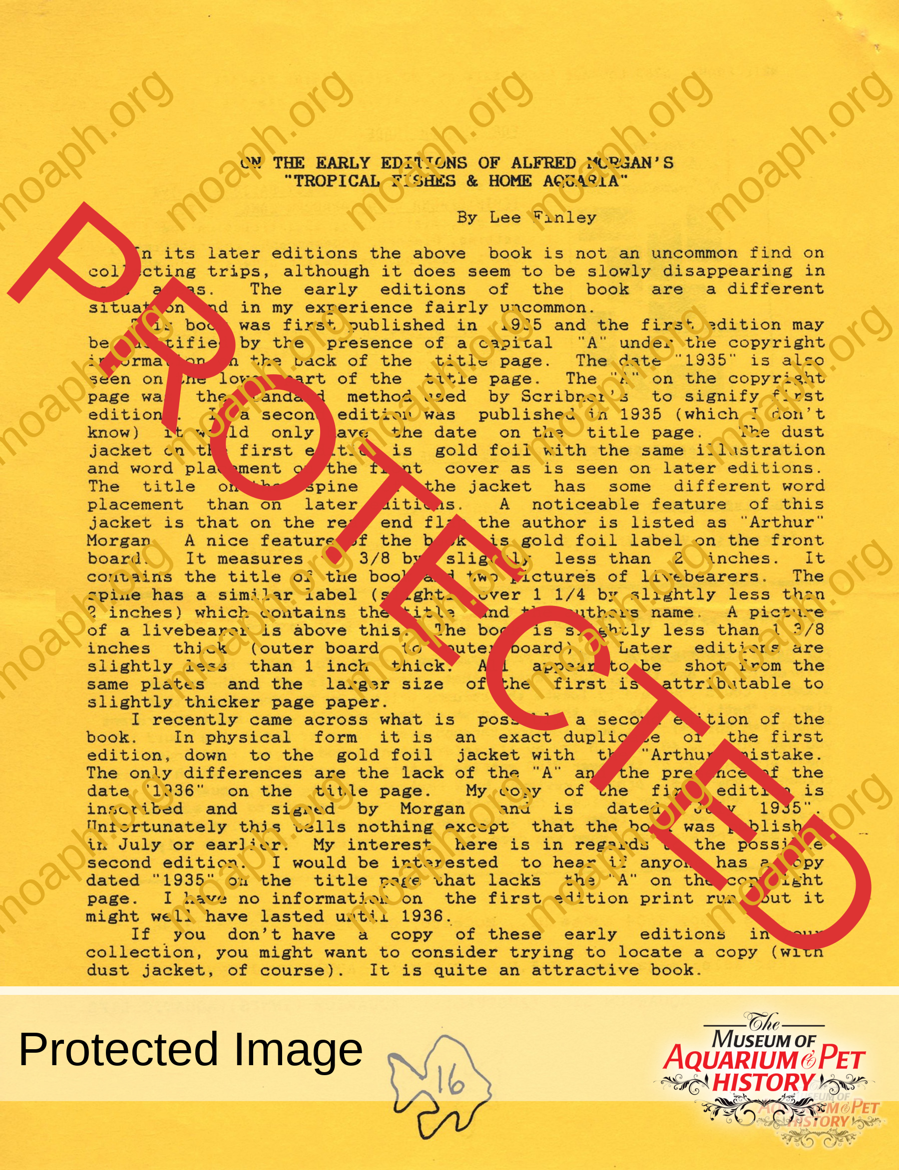 - On the Early Editions of Alfred Morgan’s “Tropical Fishes & Home Aquaria” by Lee Finley