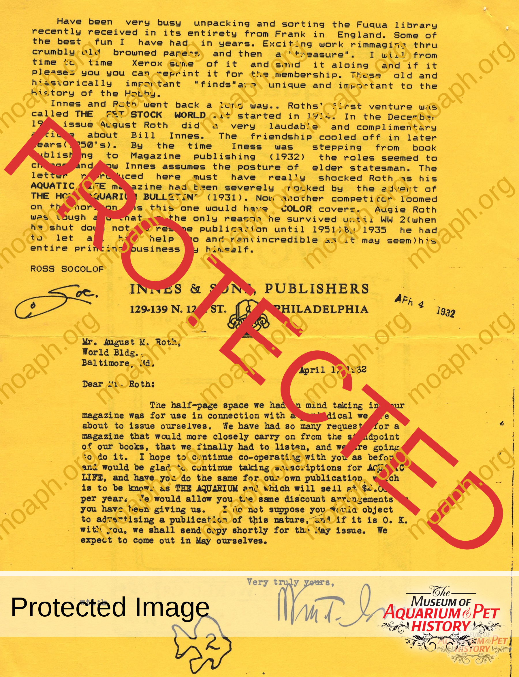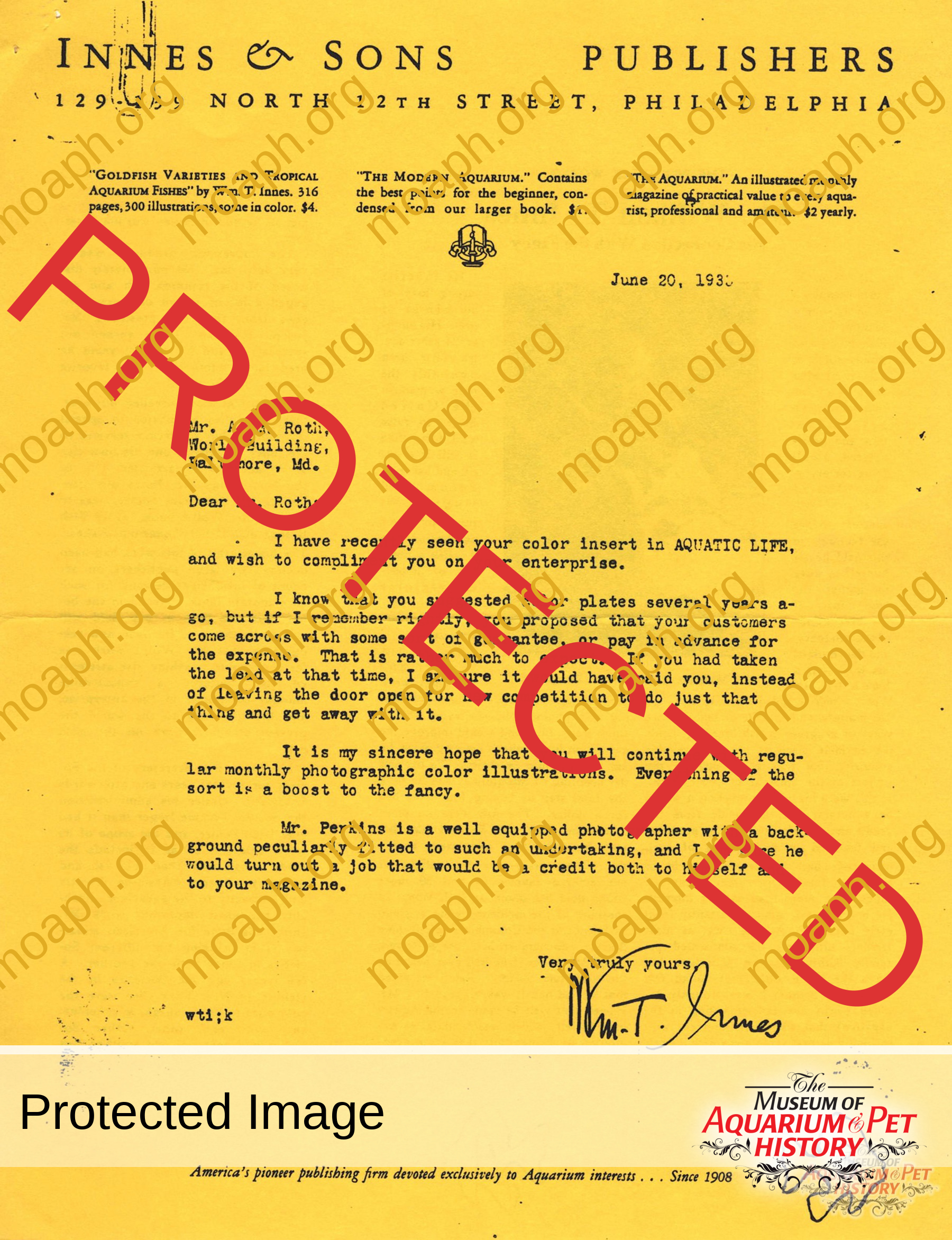 - Letters between Augie Roth and William T. Innes