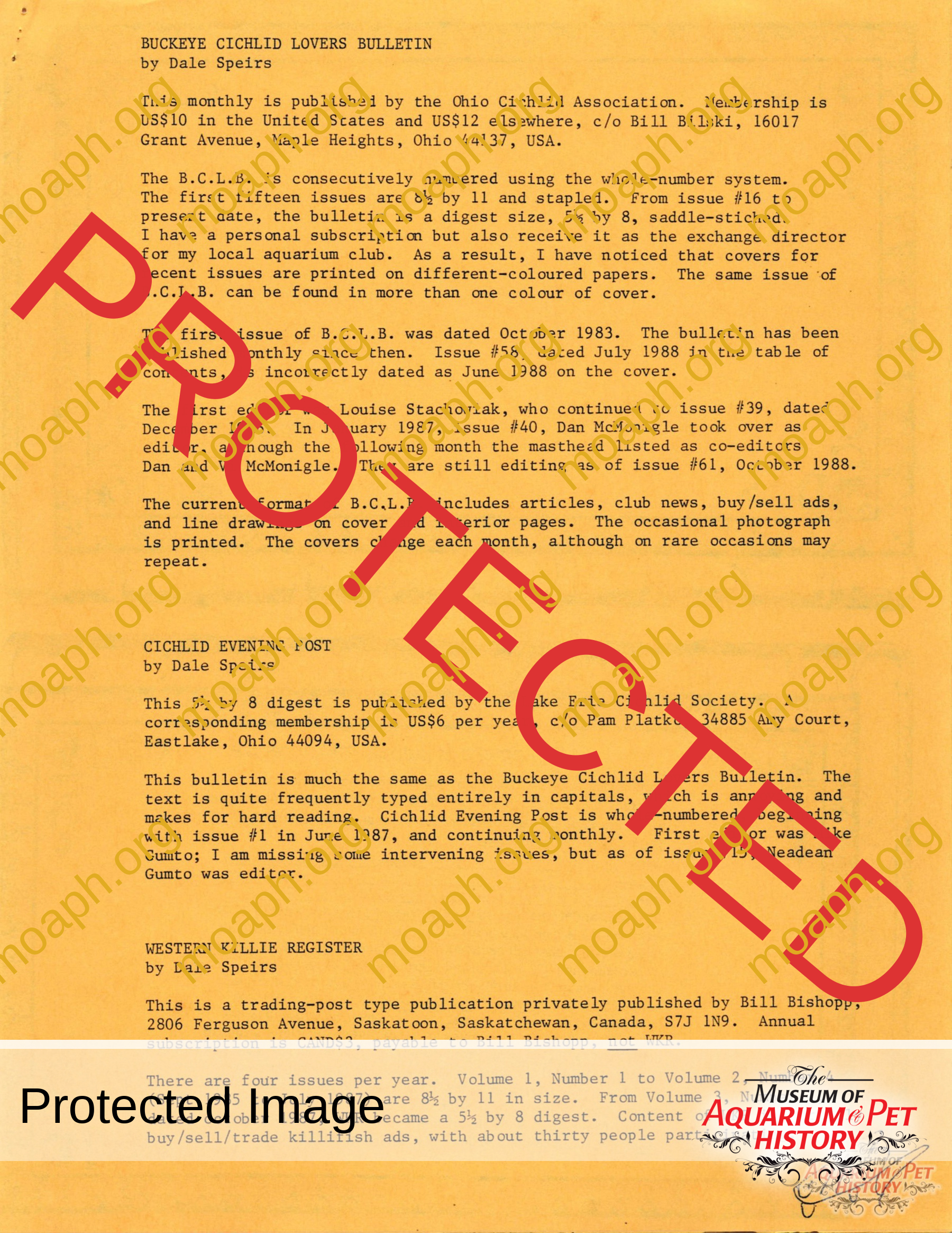 - Vintage Aquarium Club Publication News by Dale Speirs