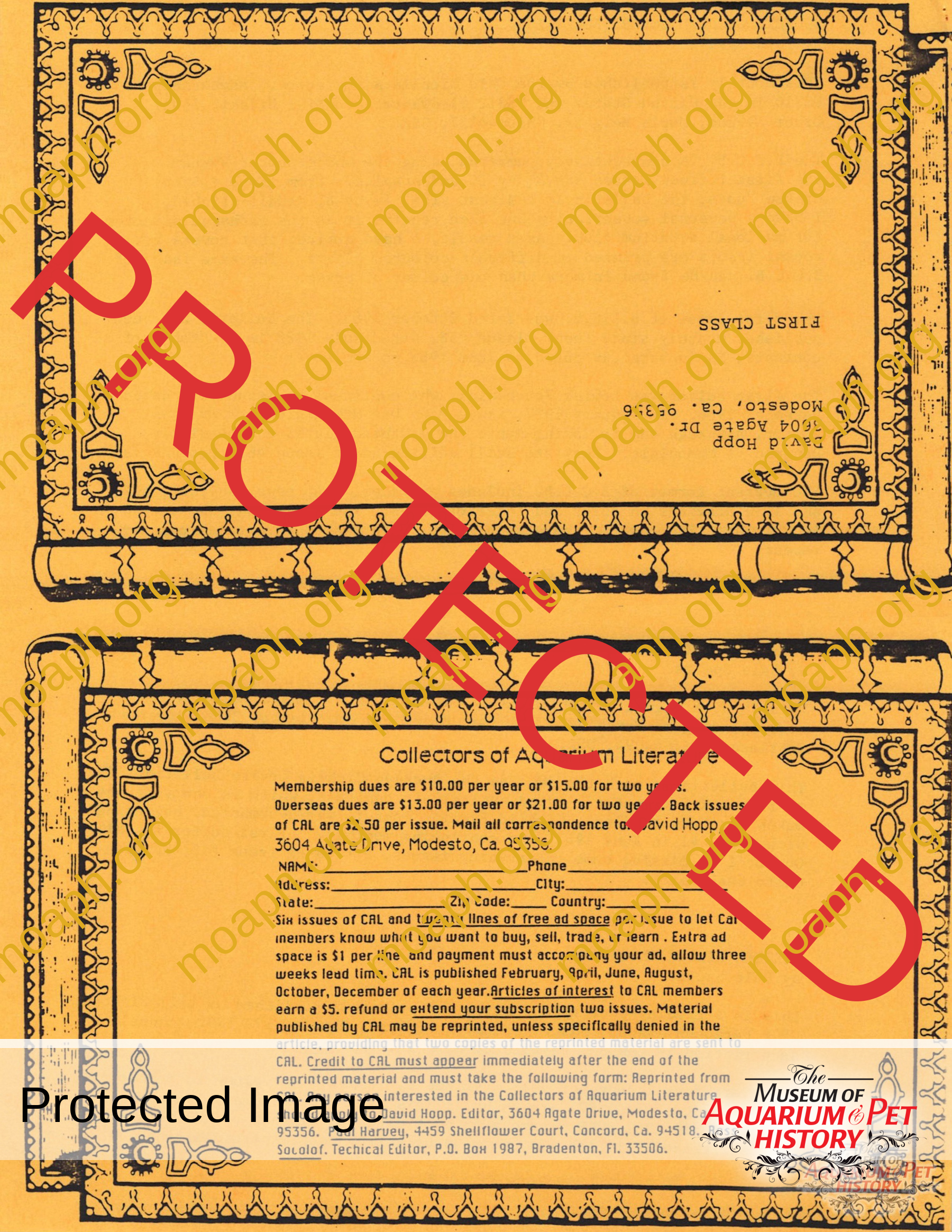 The collectors of aquarium literature was an organization founded by Dave Hopp and Paul Harvey to better organize those who collected vintage aquarium magazines and books. Each issue had articles on aquarium publication history plus articles related to book and magazine collecting in general. This publication ran from May 1983 through June 1994 for a total of 55 issues. (August through November 1988 was a combined issue 25/26 and March through July 1989 was marked 29/30 1989.)