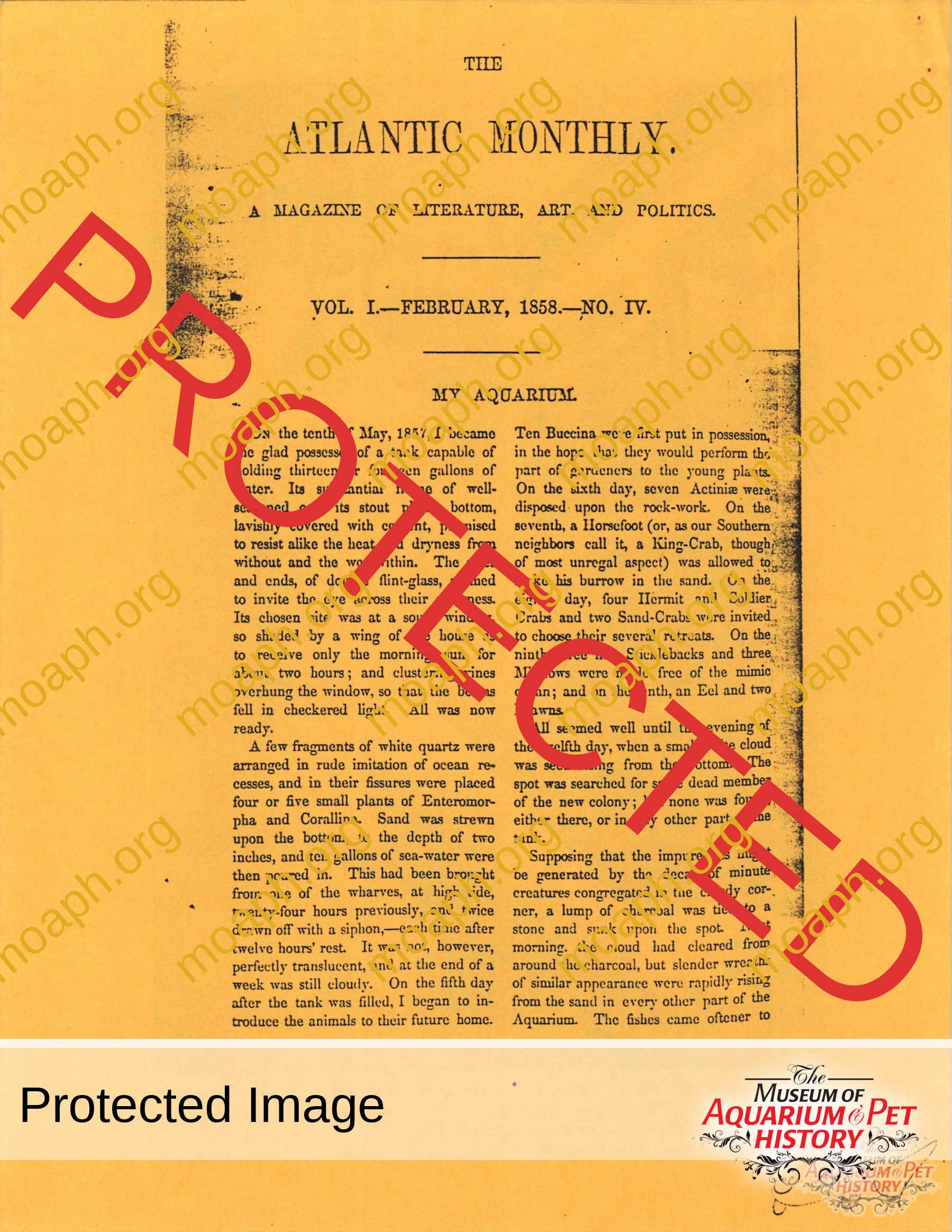 - 1858 article on “My Aquarium” from the Atlantic Monthly
