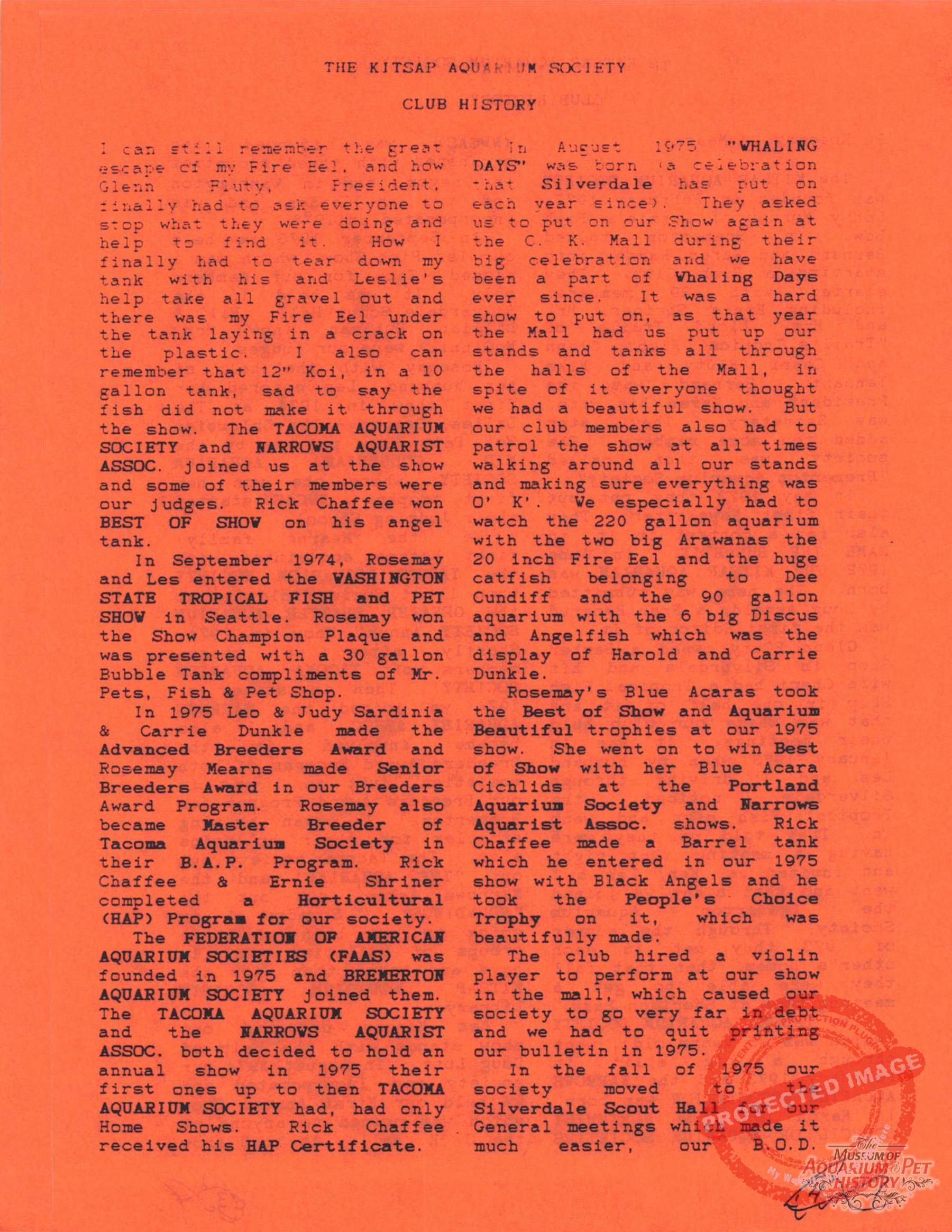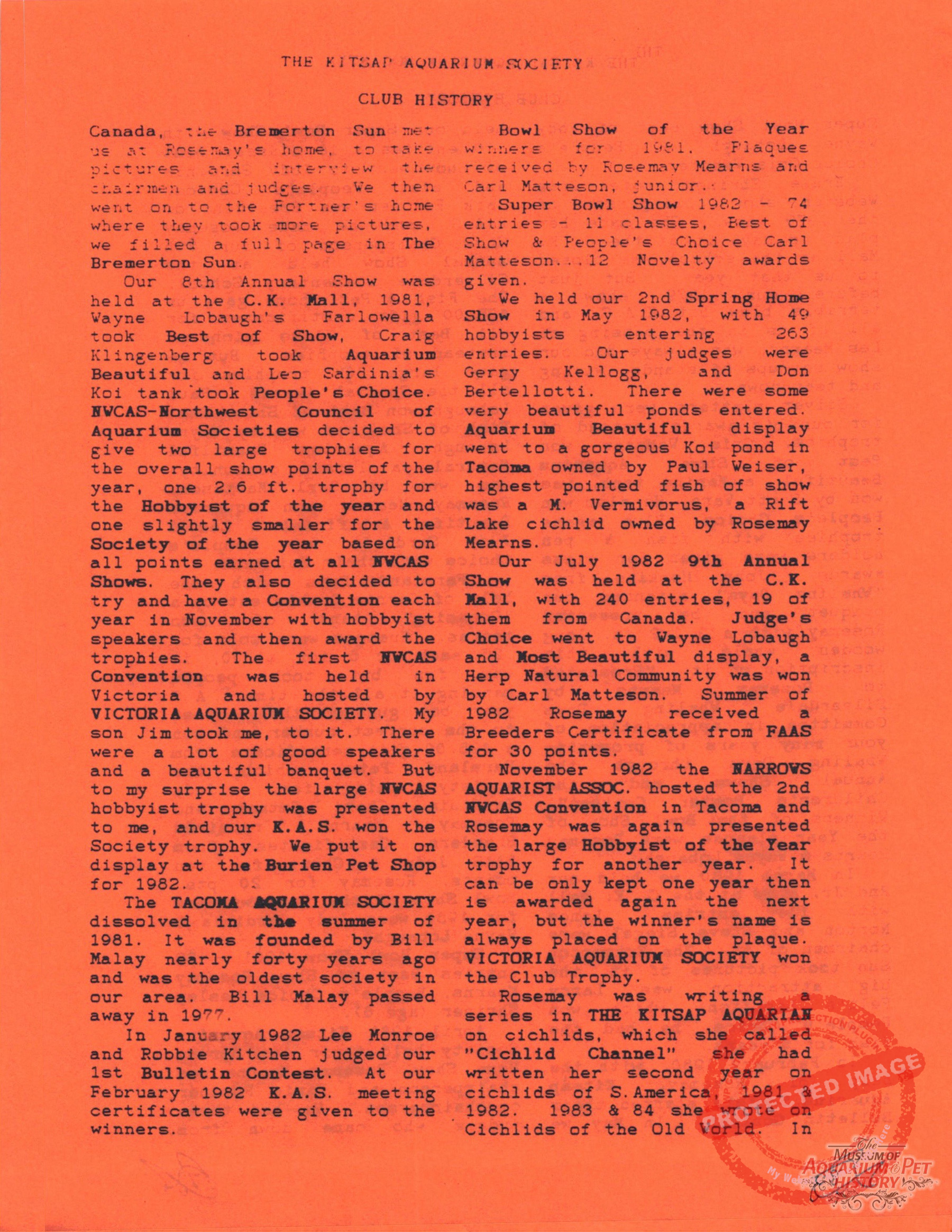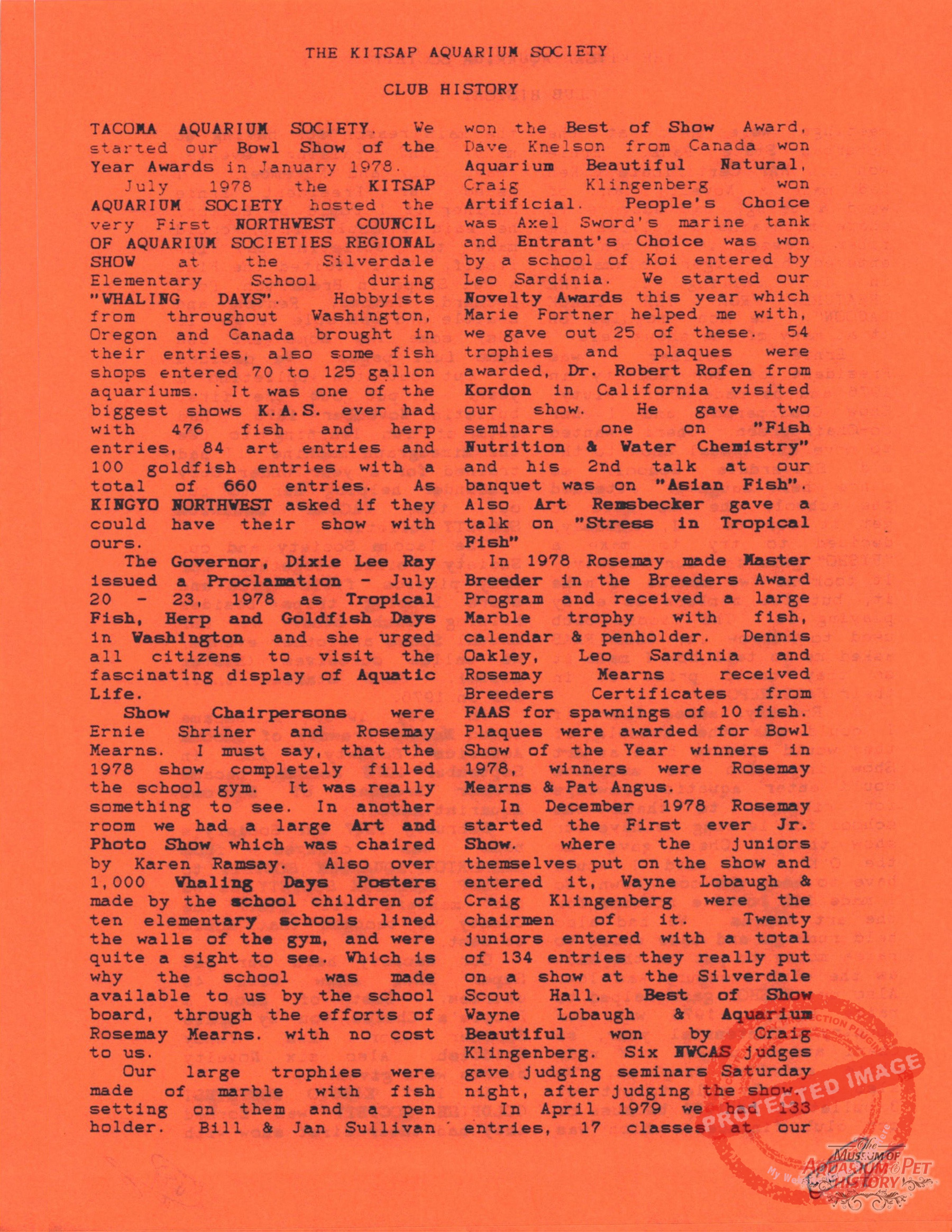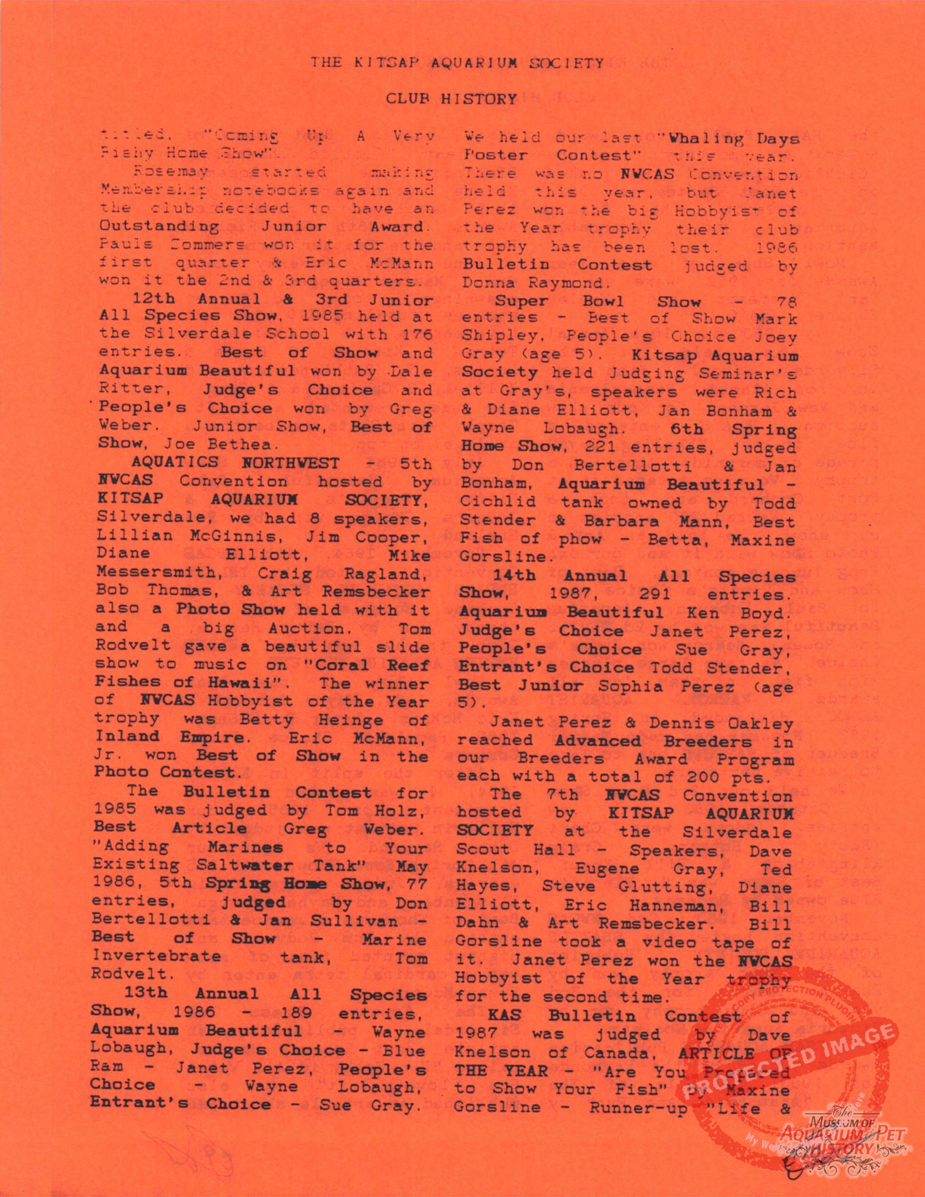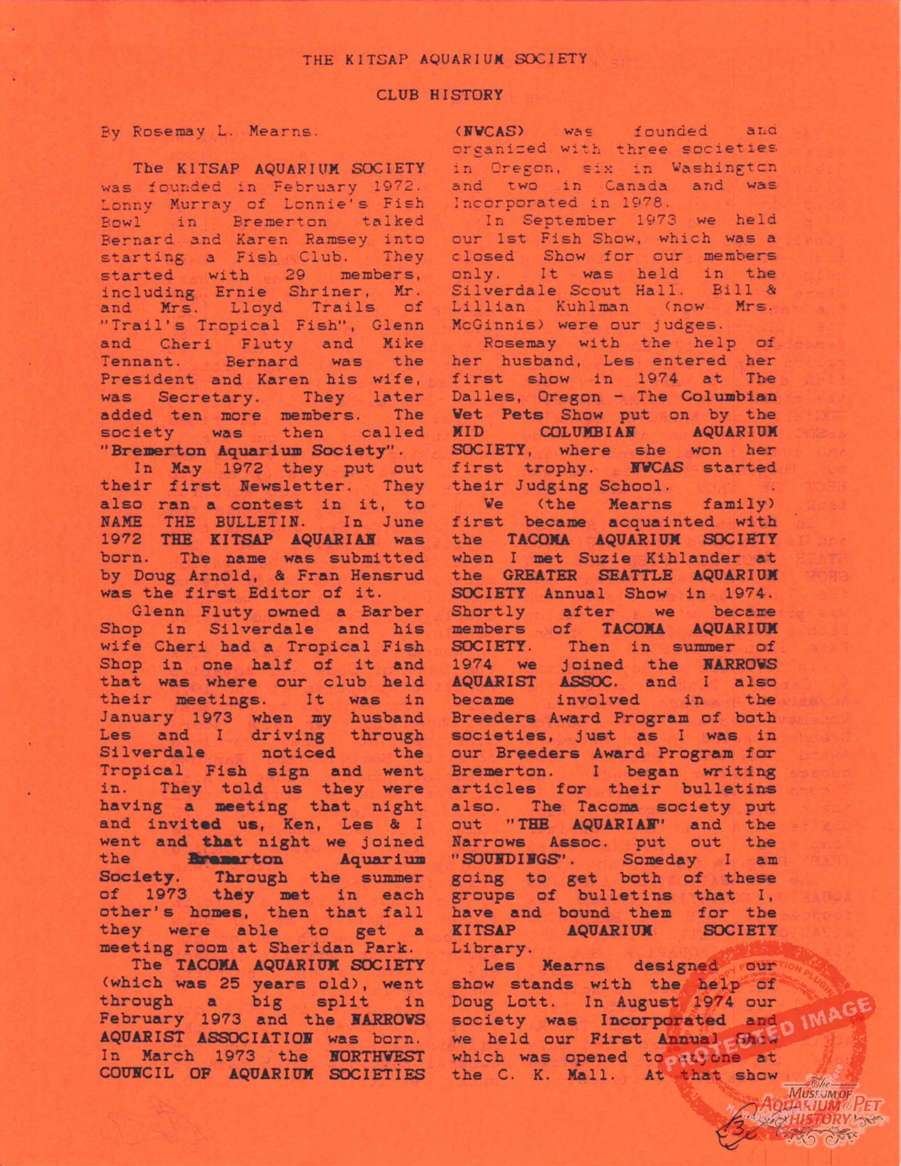 The Kitsap Aquarium Society Club History