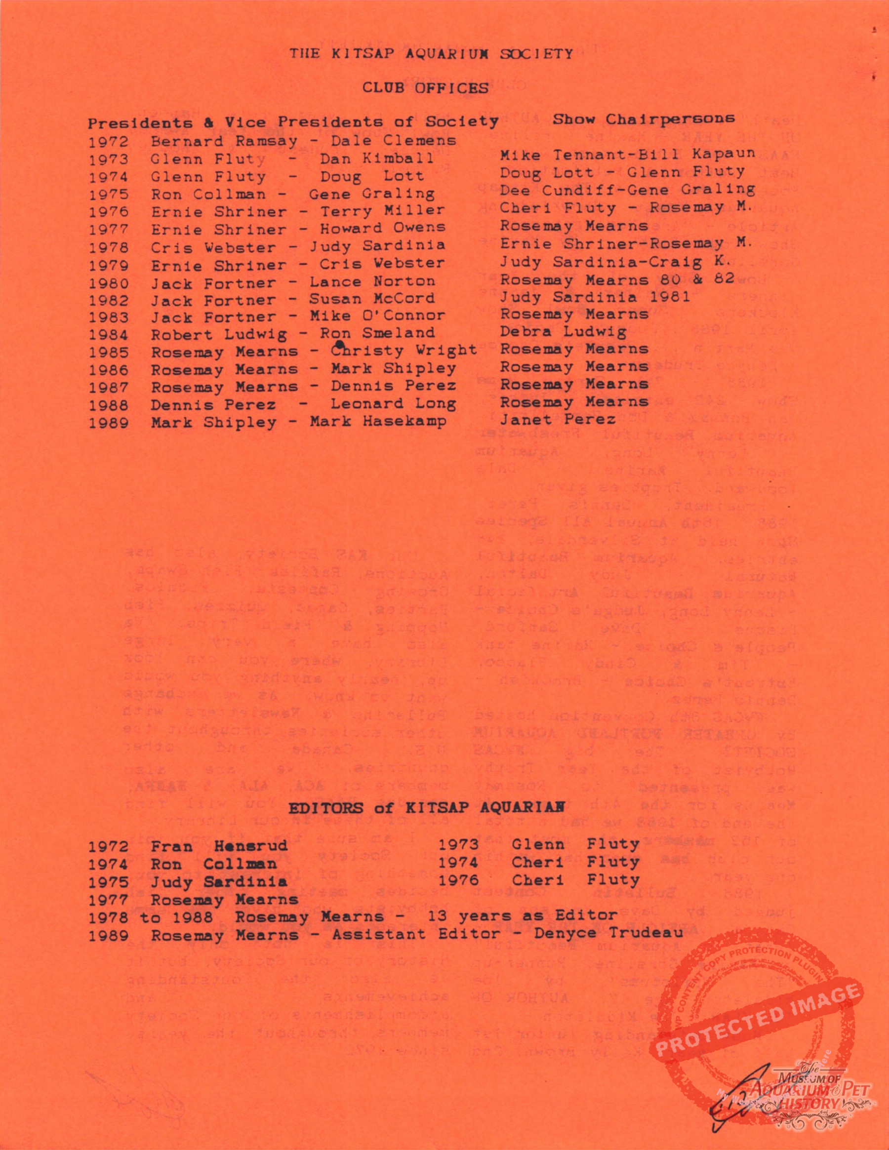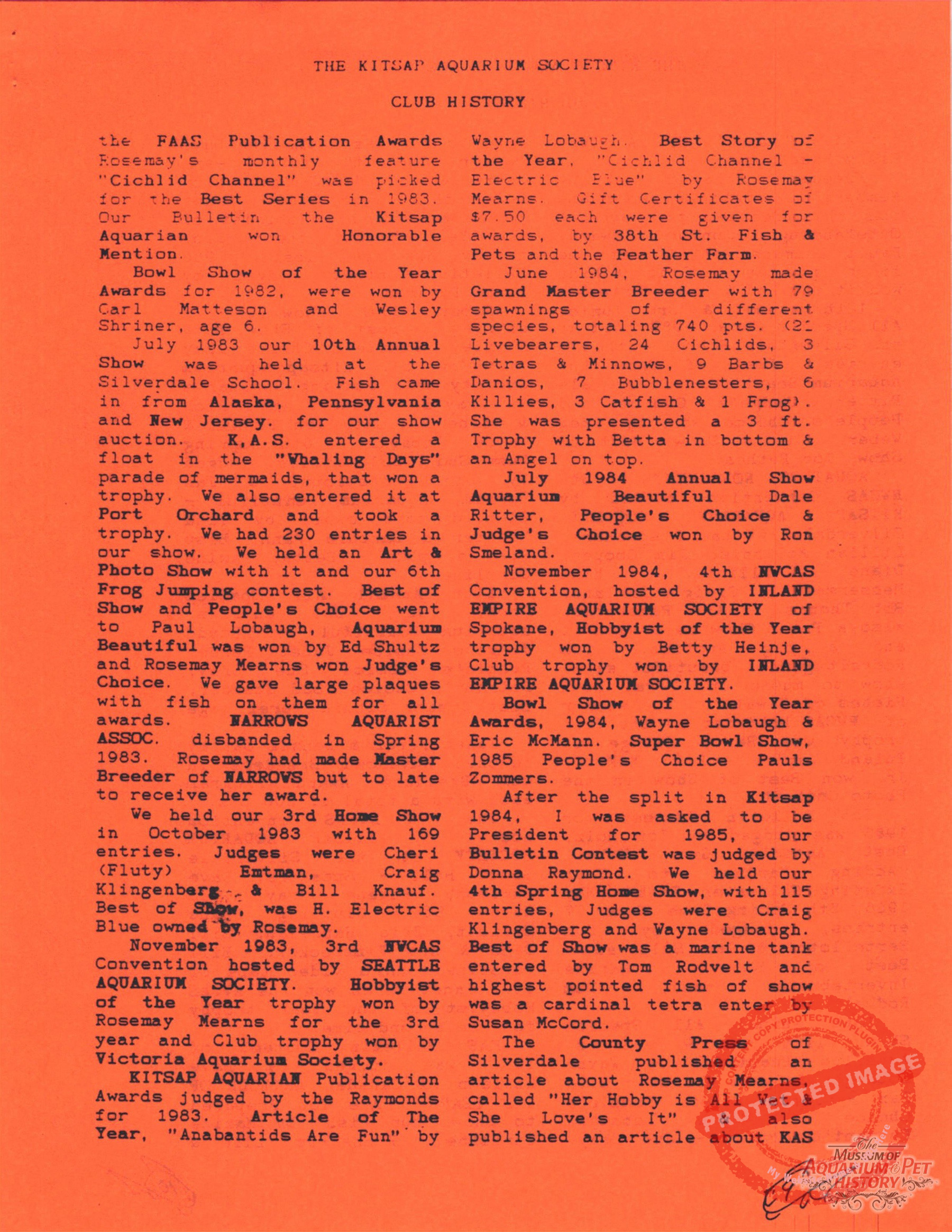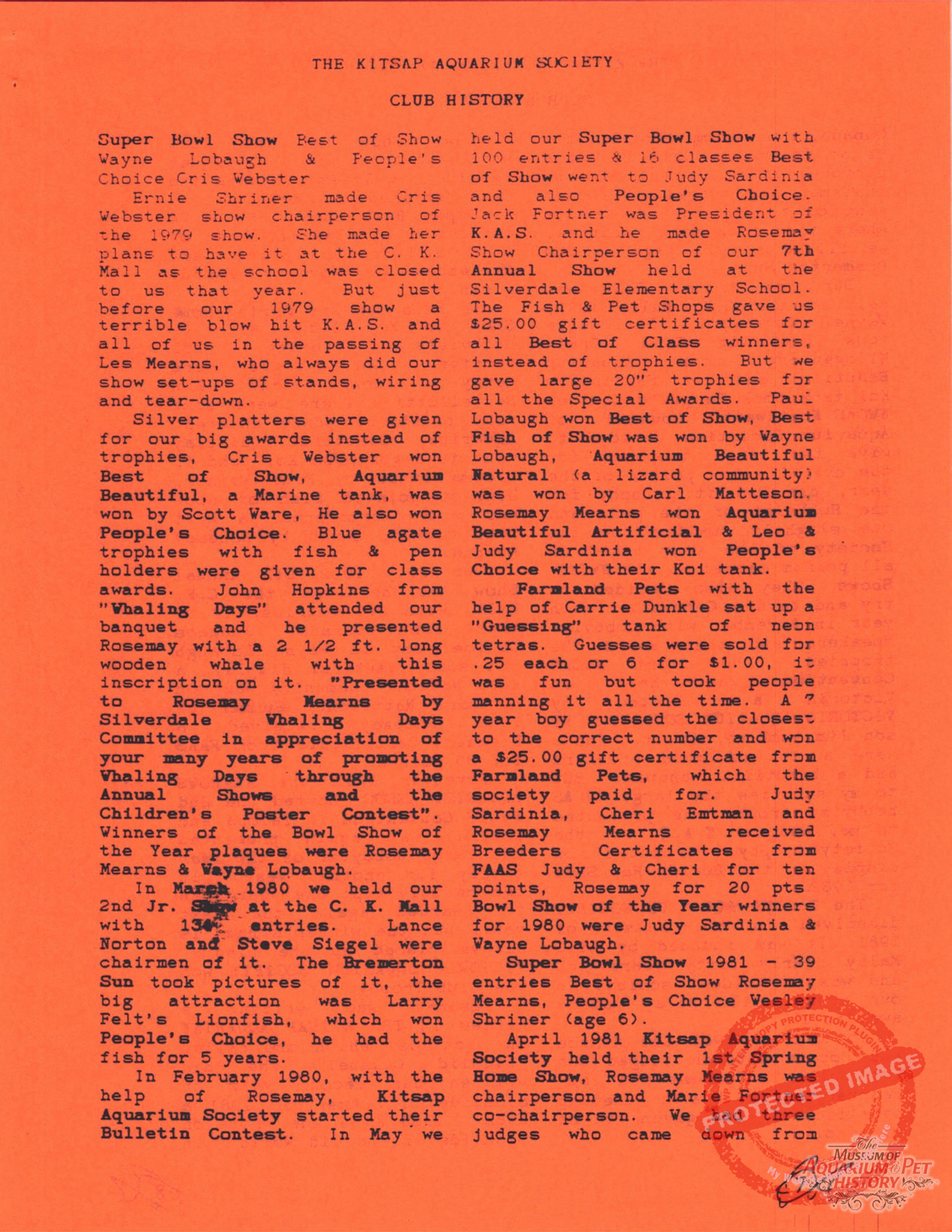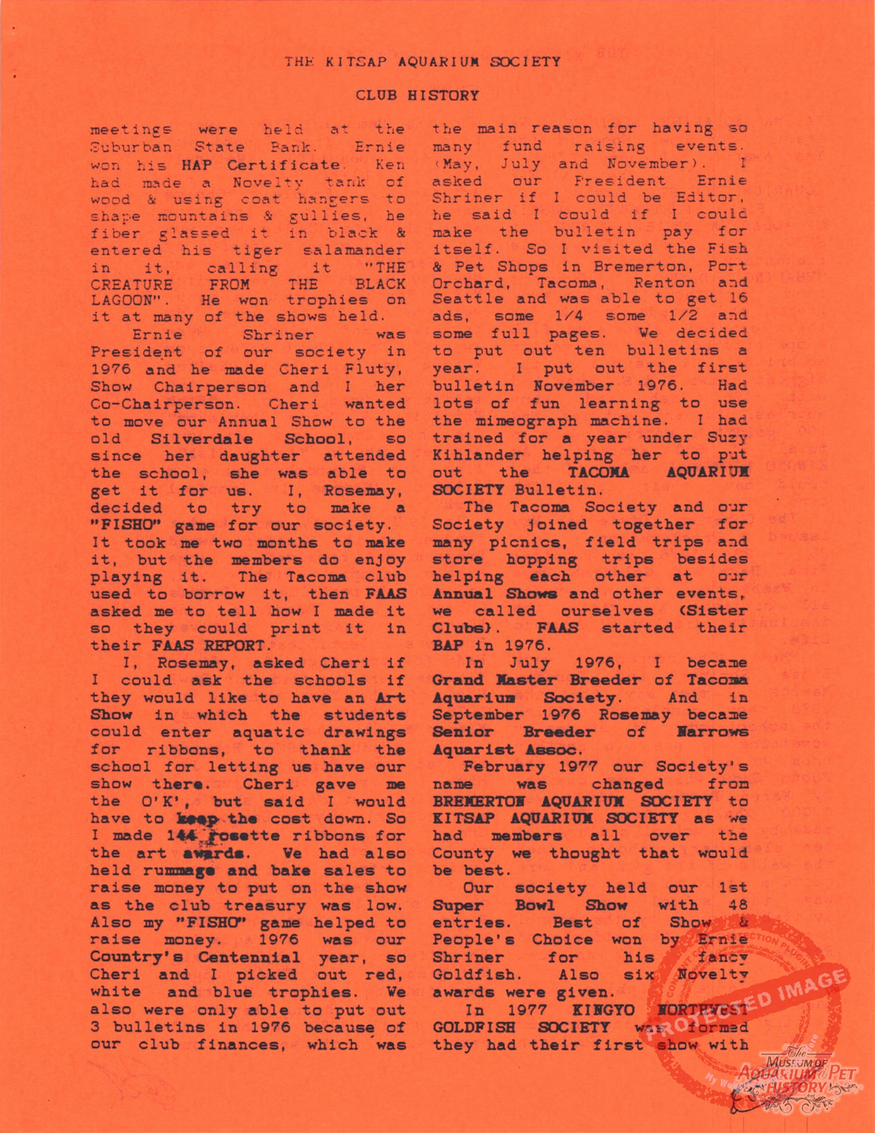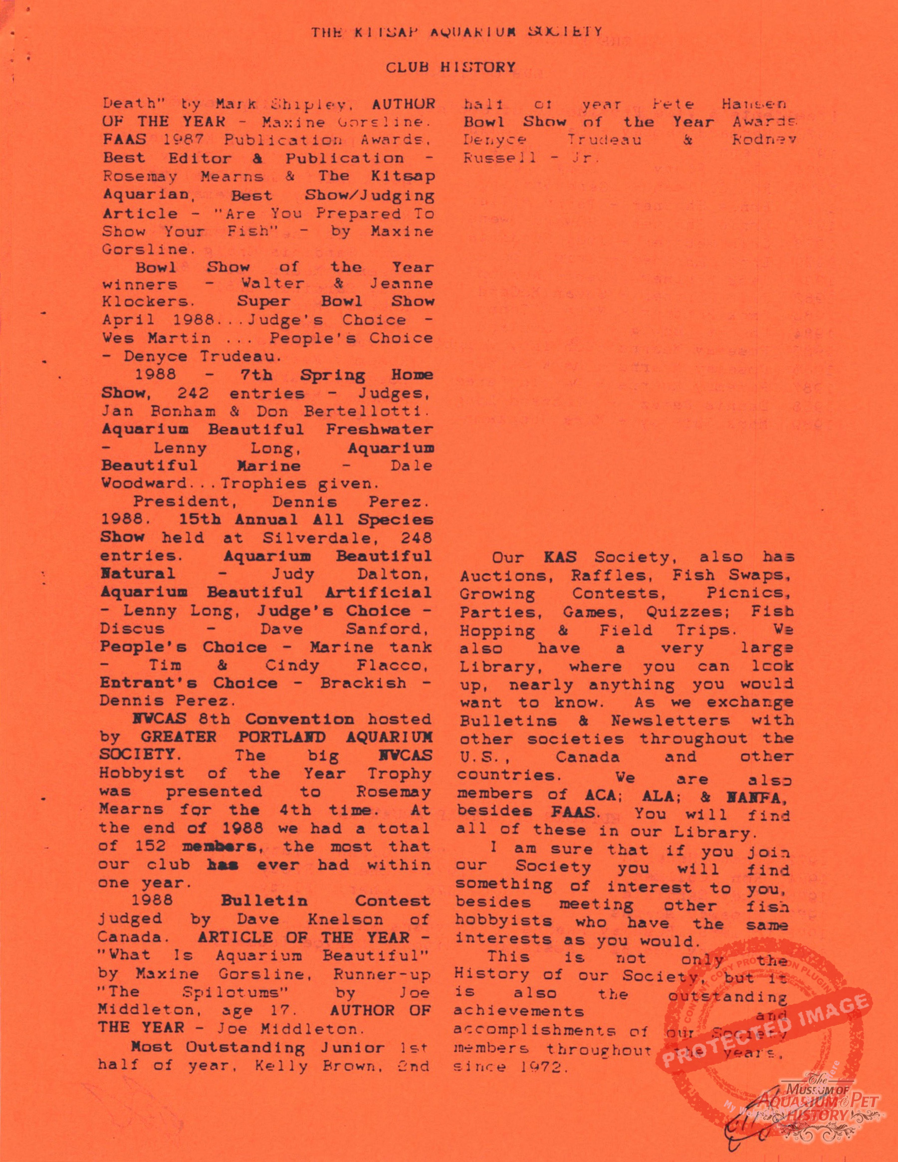 The Kitsap Aquarium Society Club History