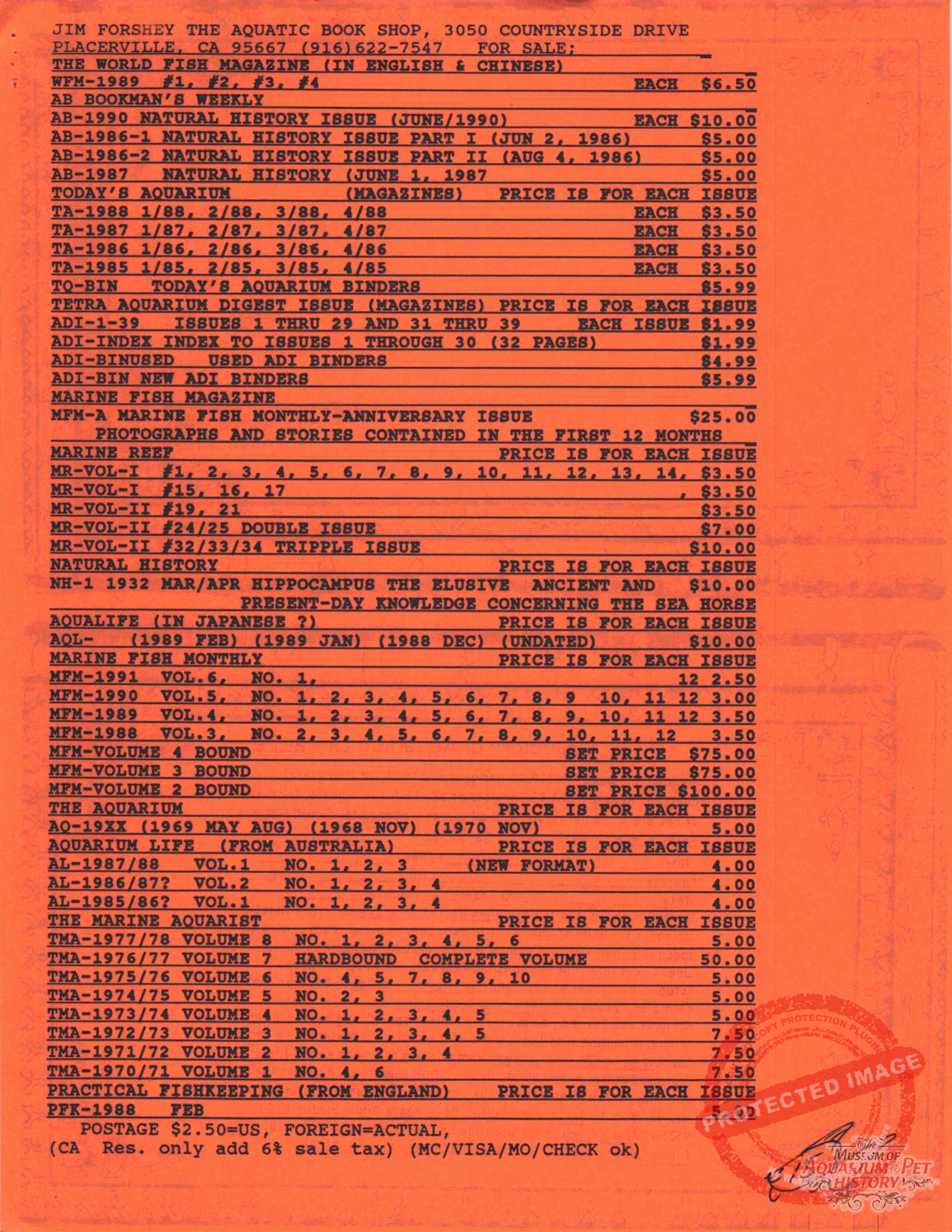 Collectors of Aquarium Literature – Number 39 December 1990