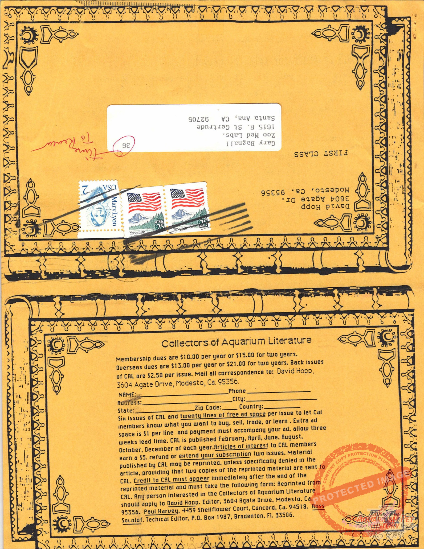 The collectors of aquarium literature was an organization founded by Dave Hopp and Paul Harvey to better organize those who collected vintage aquarium magazines and books. Each issue had articles on aquarium publication history plus articles related to book and magazine collecting in general. This publication ran from May 1983 through June 1994 for a total of 55 issues. (August through November 1988 was a combined issue 25/26 and March through July 1989 was marked 29/30 1989.)