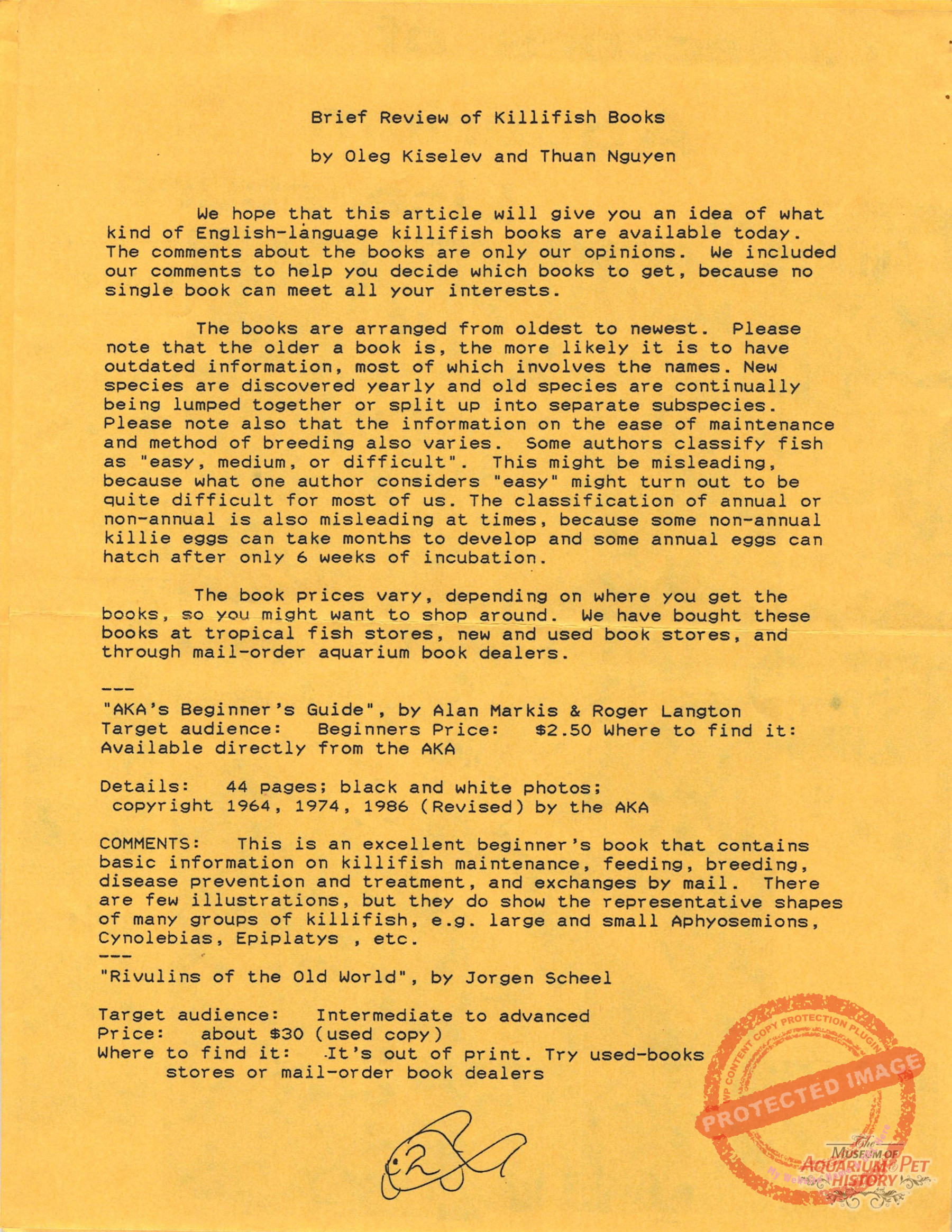 1. Brief Review of Killifish Books by Oleg Kiselev and Thuan Nguyen