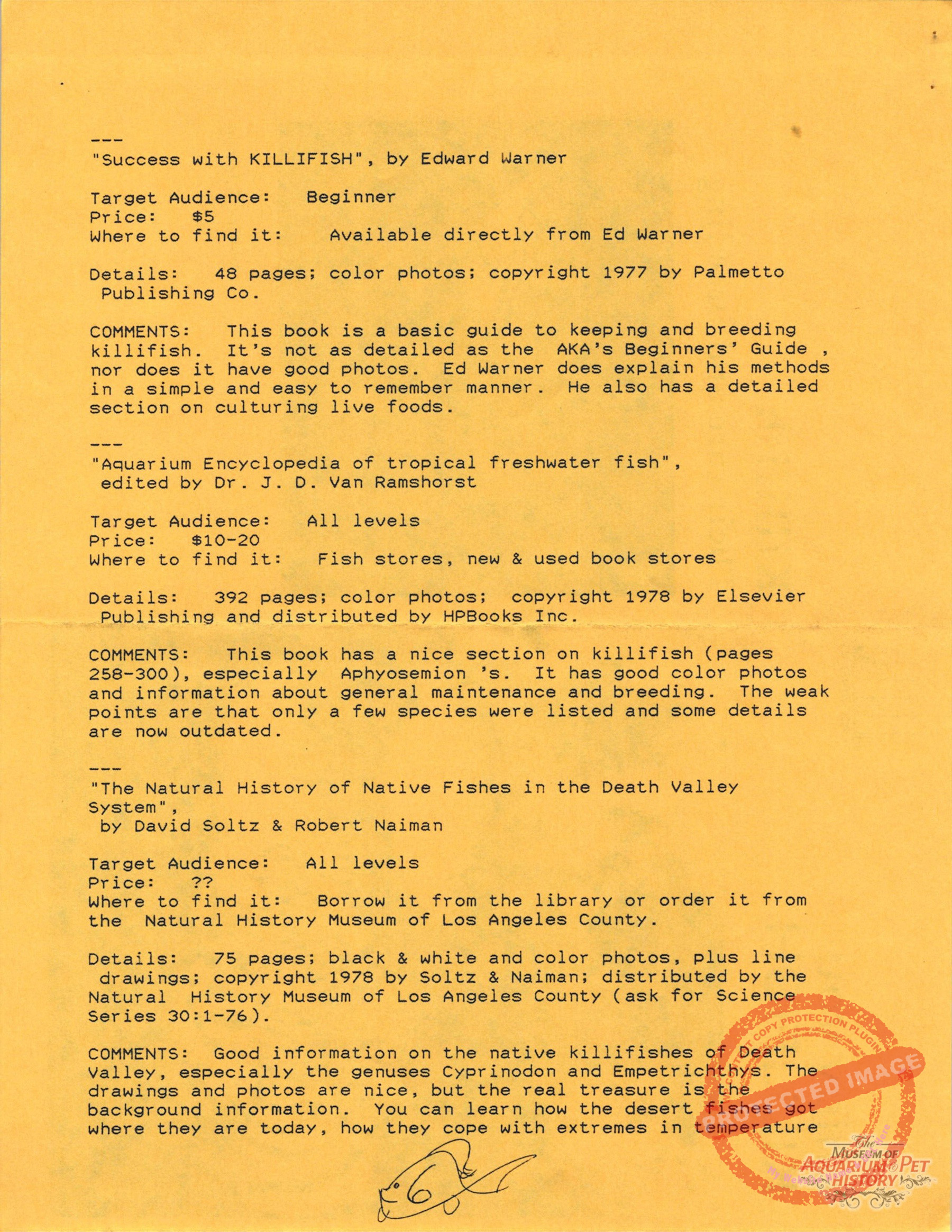 Collectors of Aquarium Literature – Number 41 April 1991