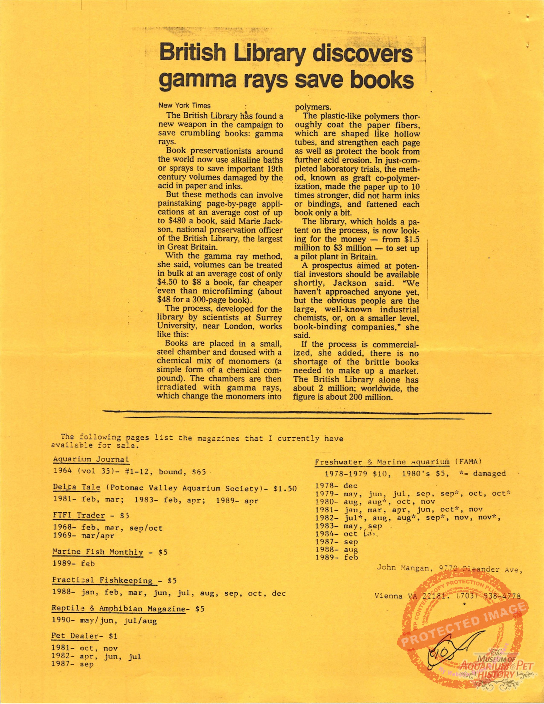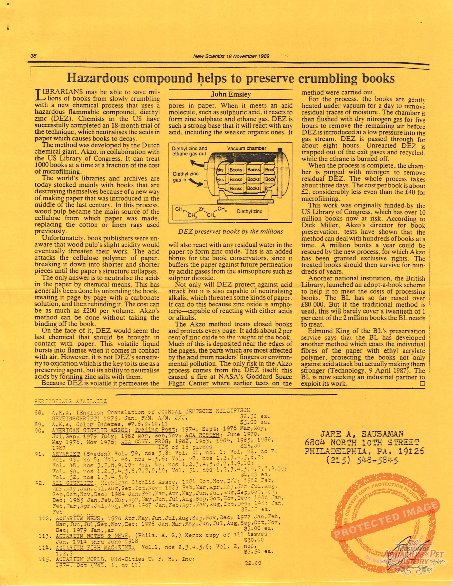 Collectors of Aquarium Literature – Number 42 February 1992