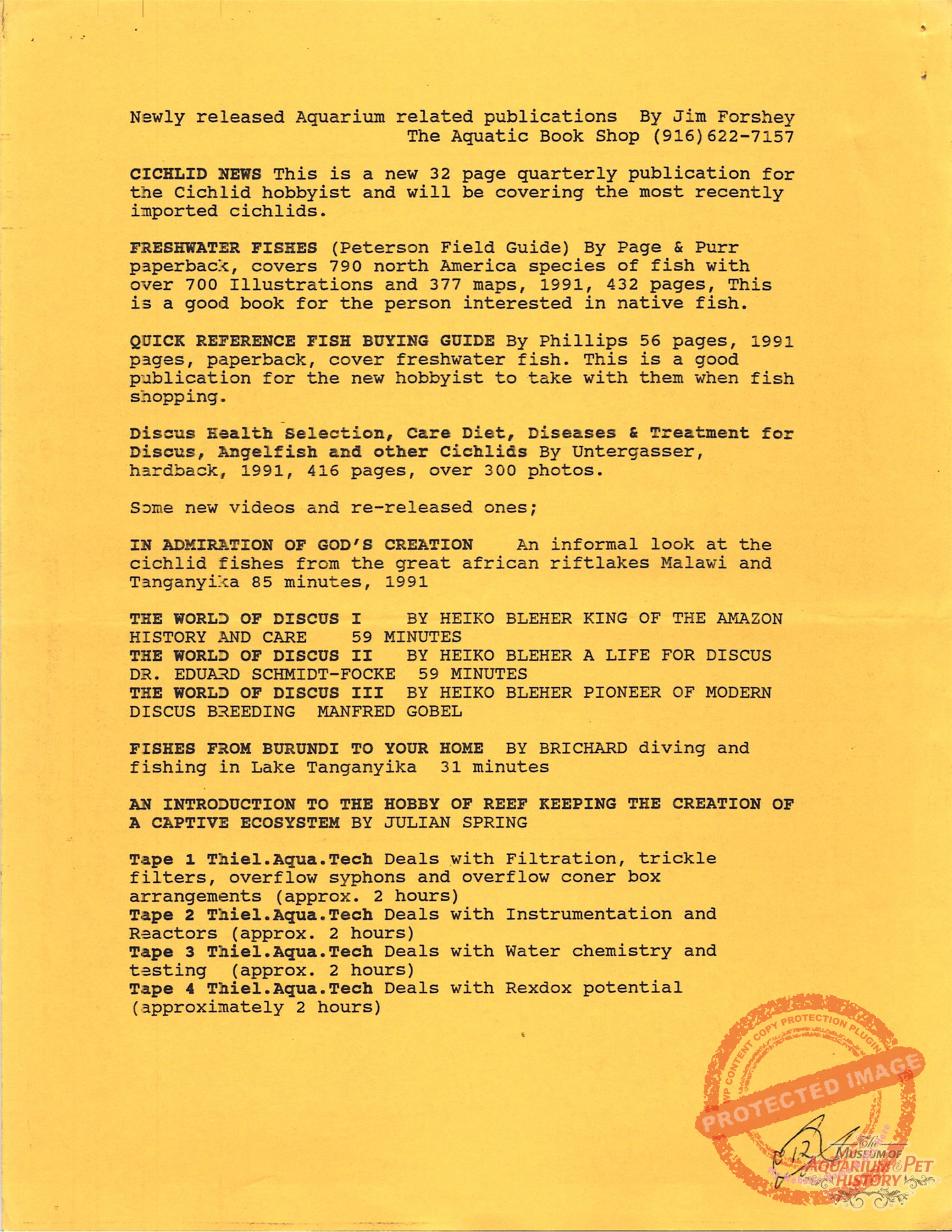 - Newly released Aquarium related publications by Jim Forshey