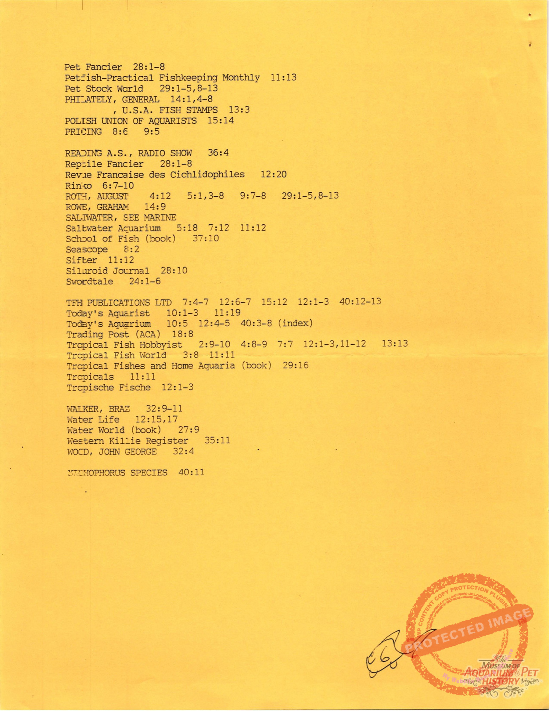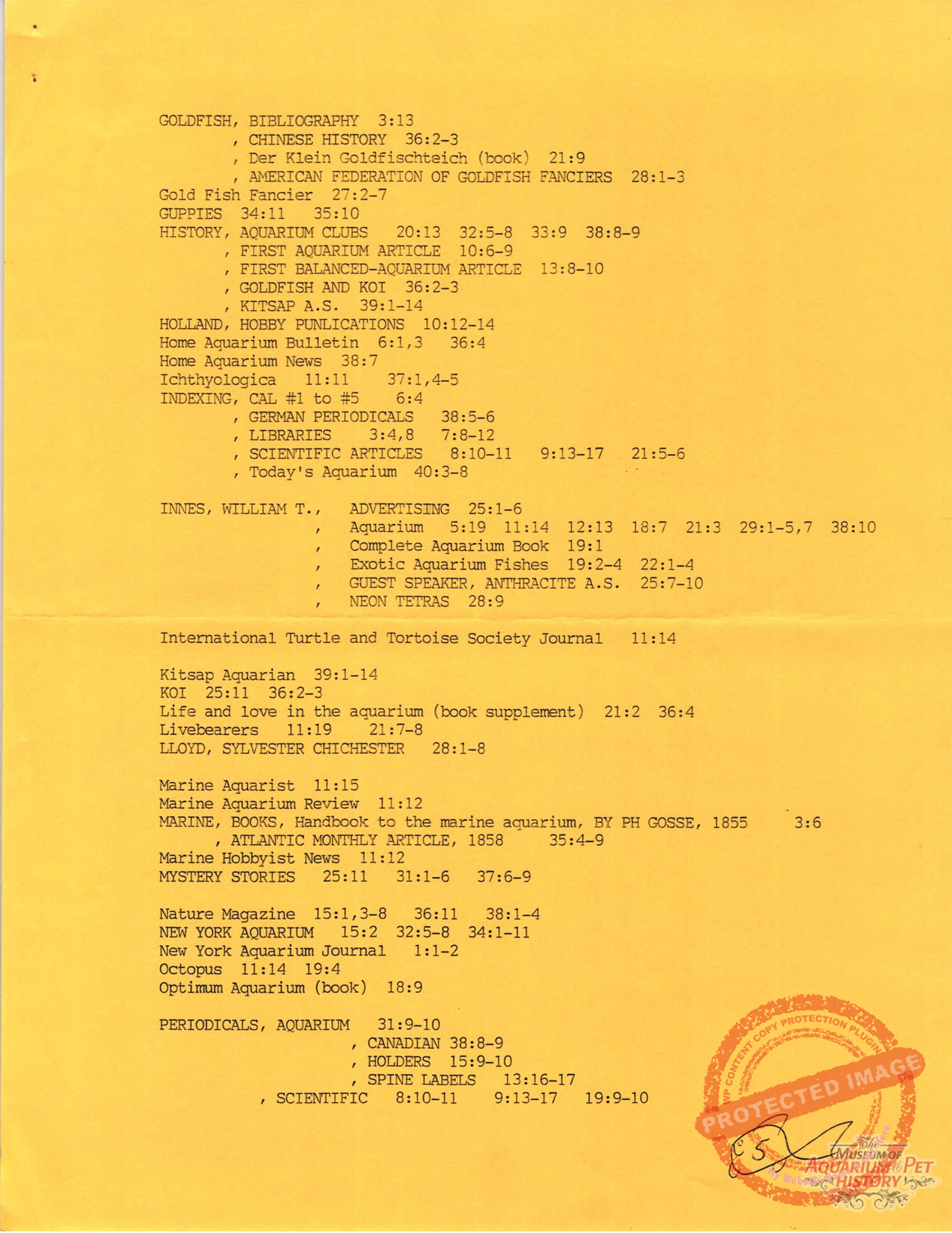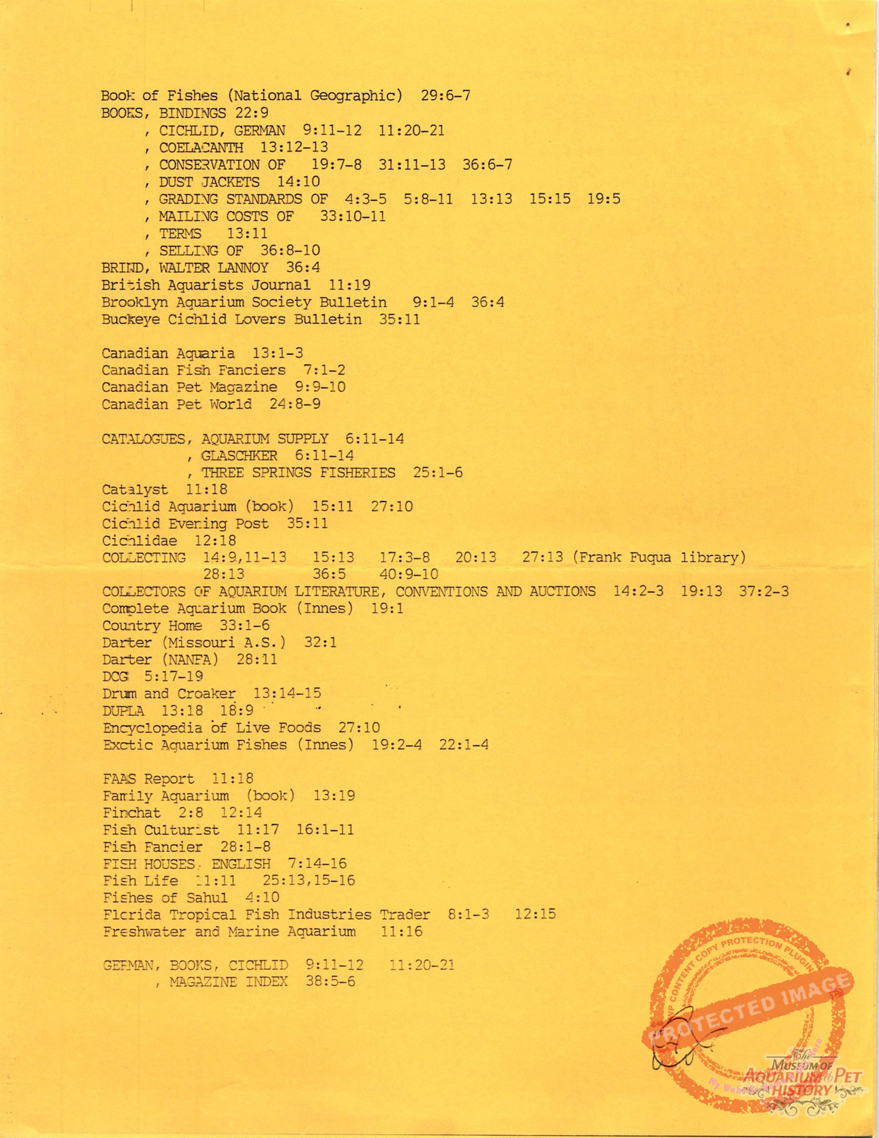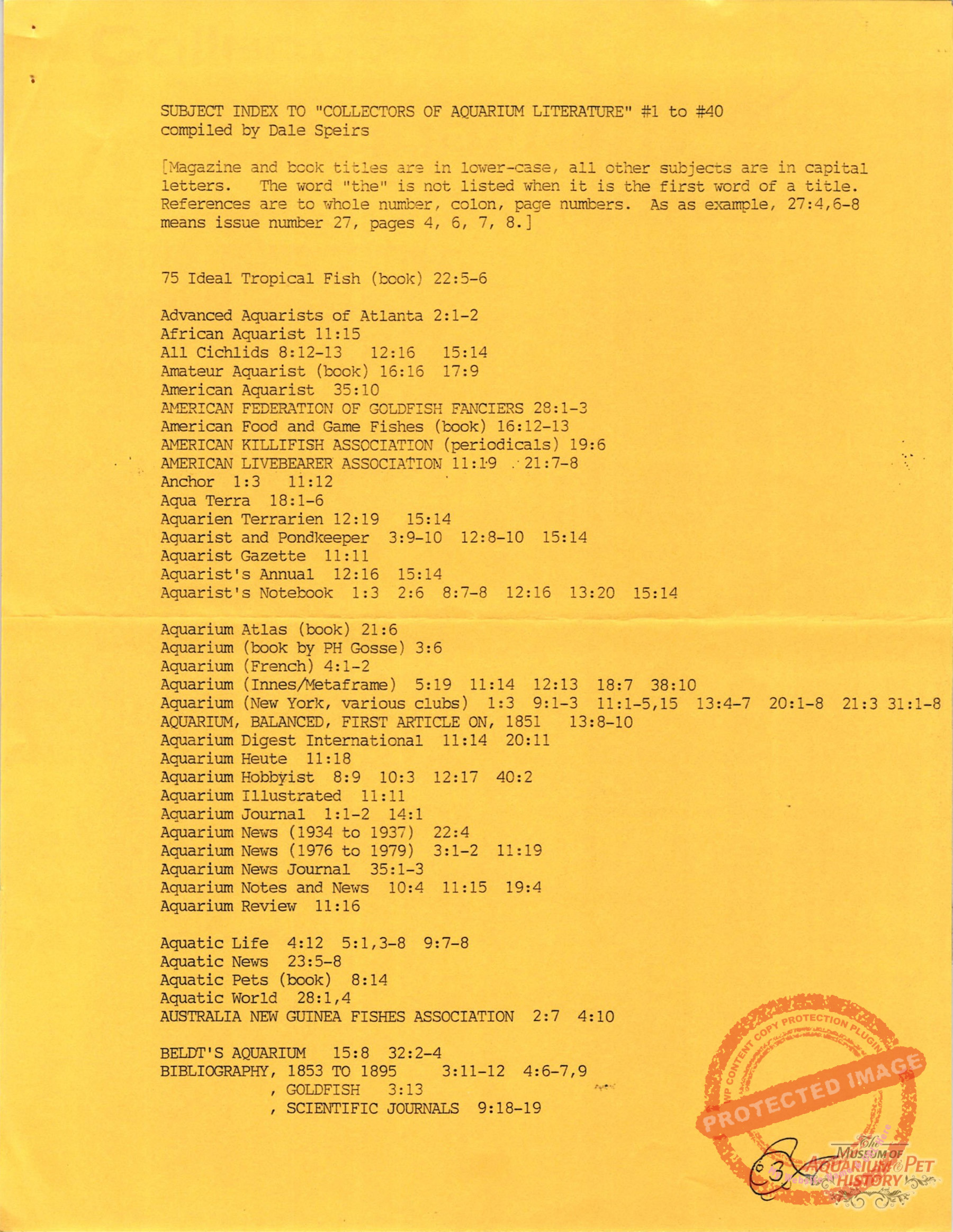 - Index of subjects for Collectors of Aquarium Literature issues 1-40