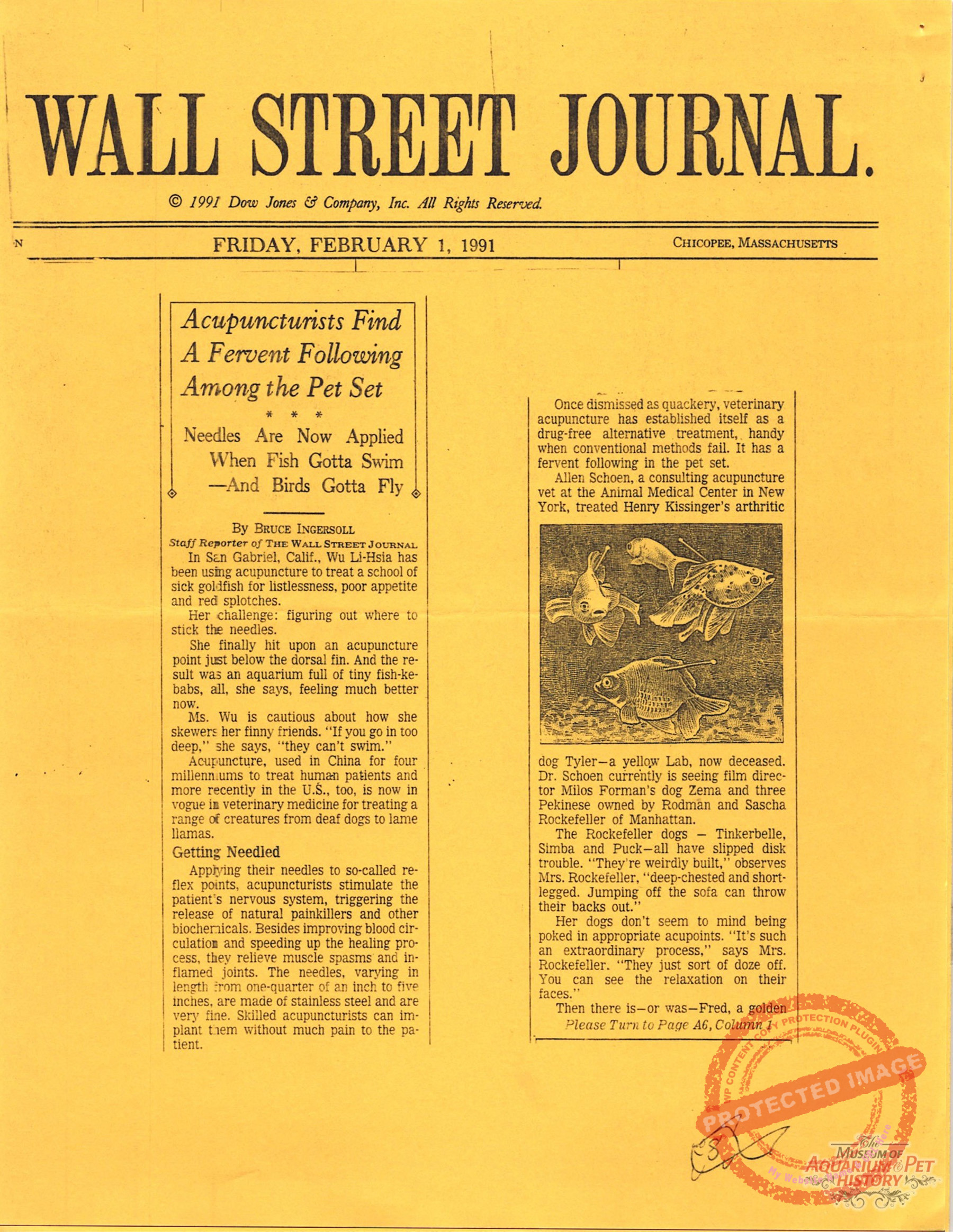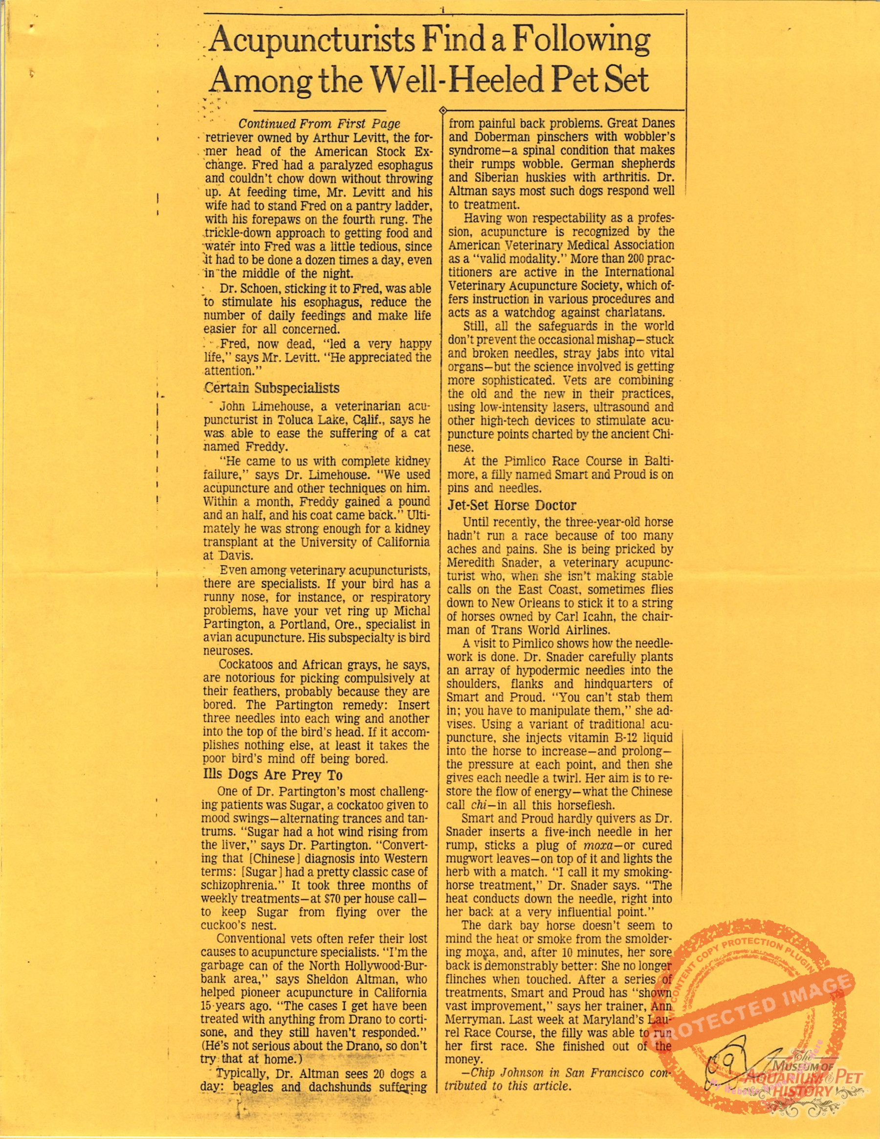 - Wall Street Journal – Acupuncturists Find a Following Among the Well-Heeled Pet Set