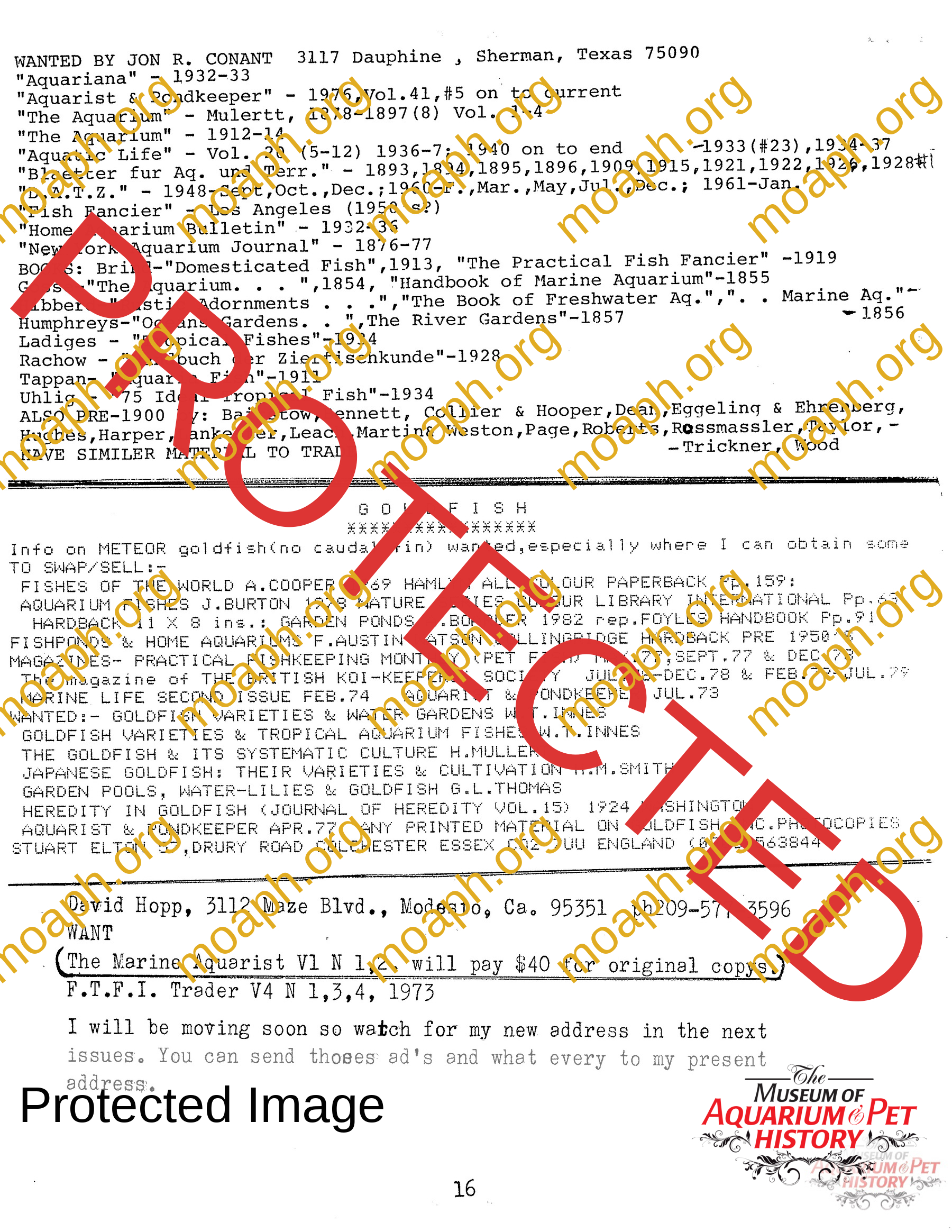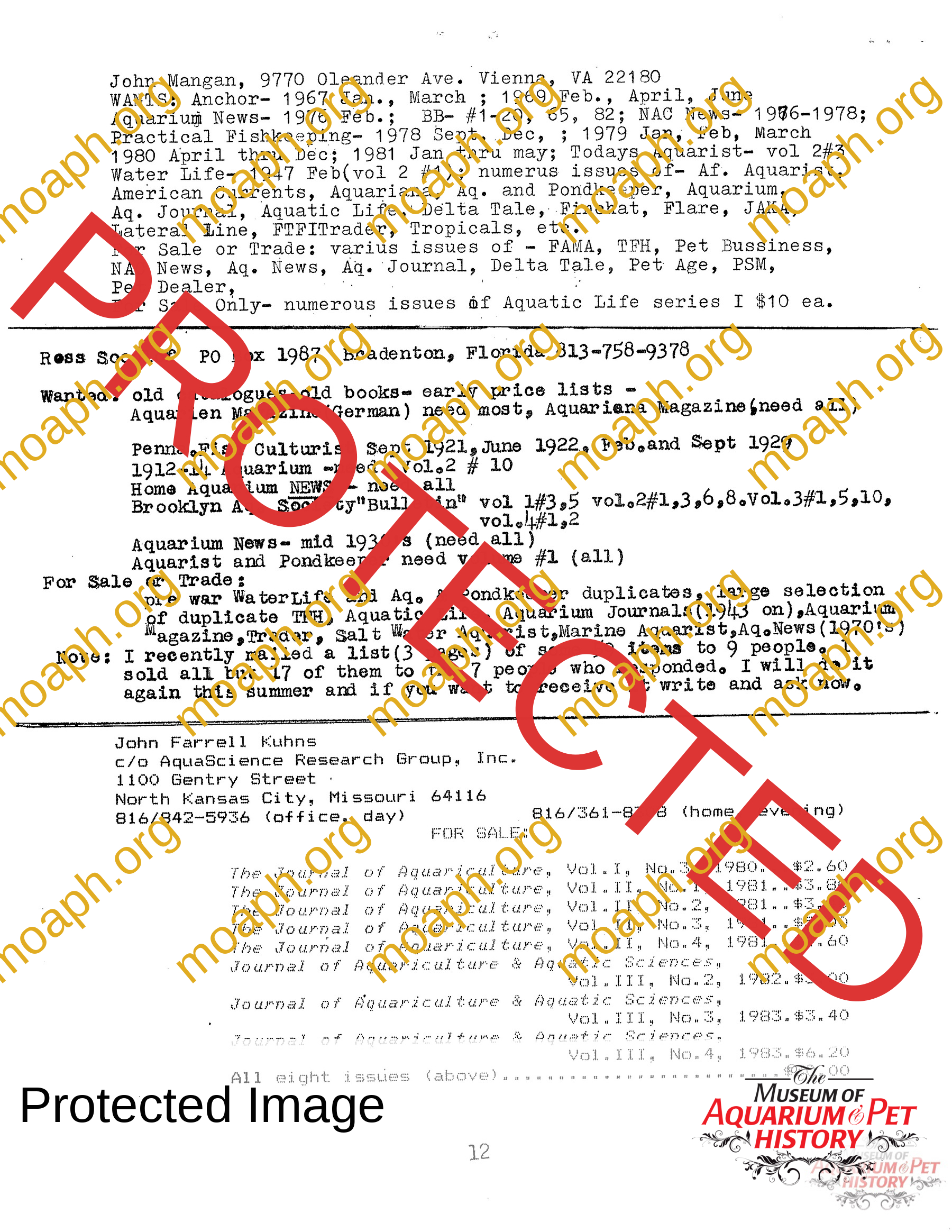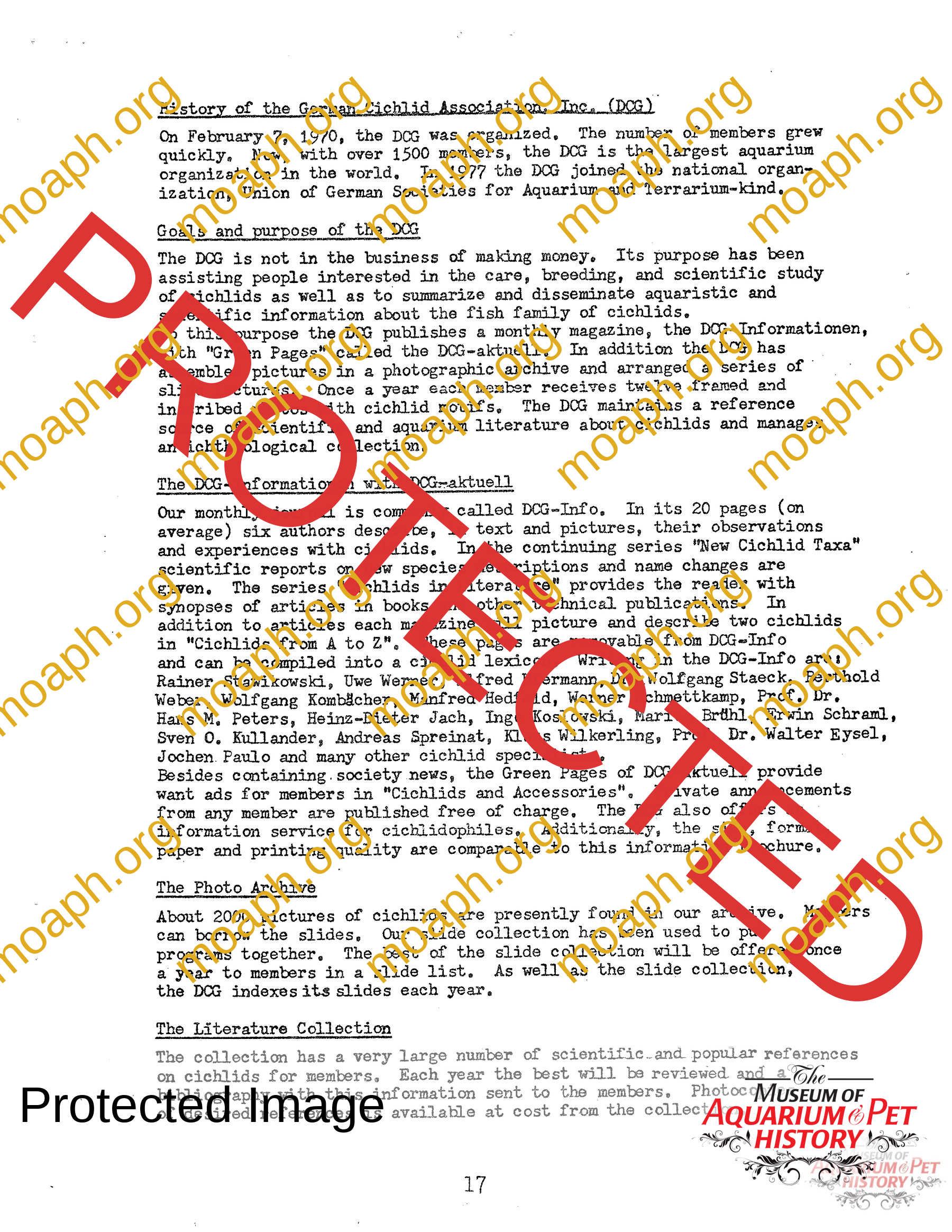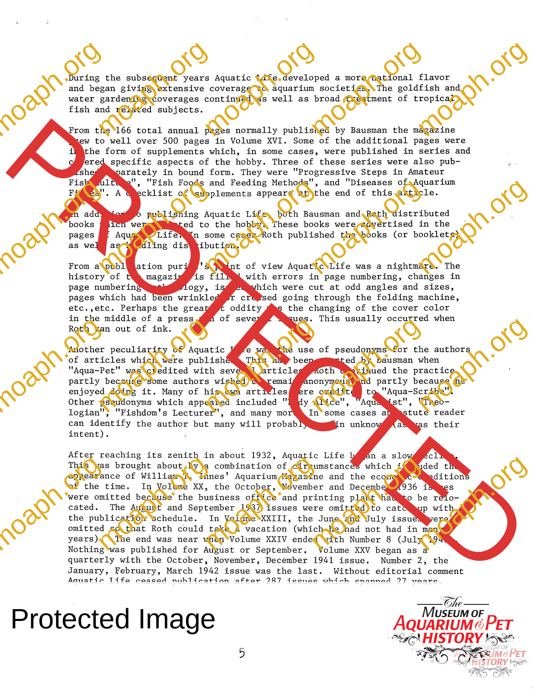 The collectors of aquarium literature was an organization founded by Dave Hopp and Paul Harvey to better organize those who collected vintage aquarium magazines and books. Each issue had articles on aquarium publication history plus articles related to book and magazine collecting in general. This publication ran from May 1983 through June 1994 for a total of 55 issues. (August through November 1988 was a combined issue 25/26 and March through July 1989 was marked 29/30 1989.)