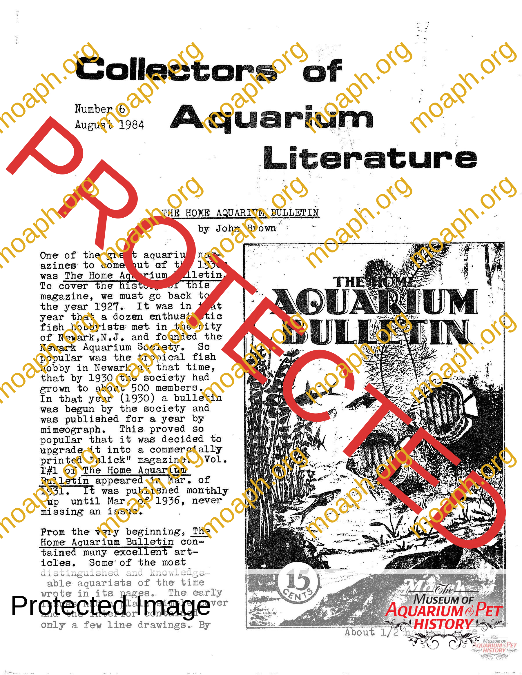 Collectors of Aquarium Literature-Number 6 August 1984