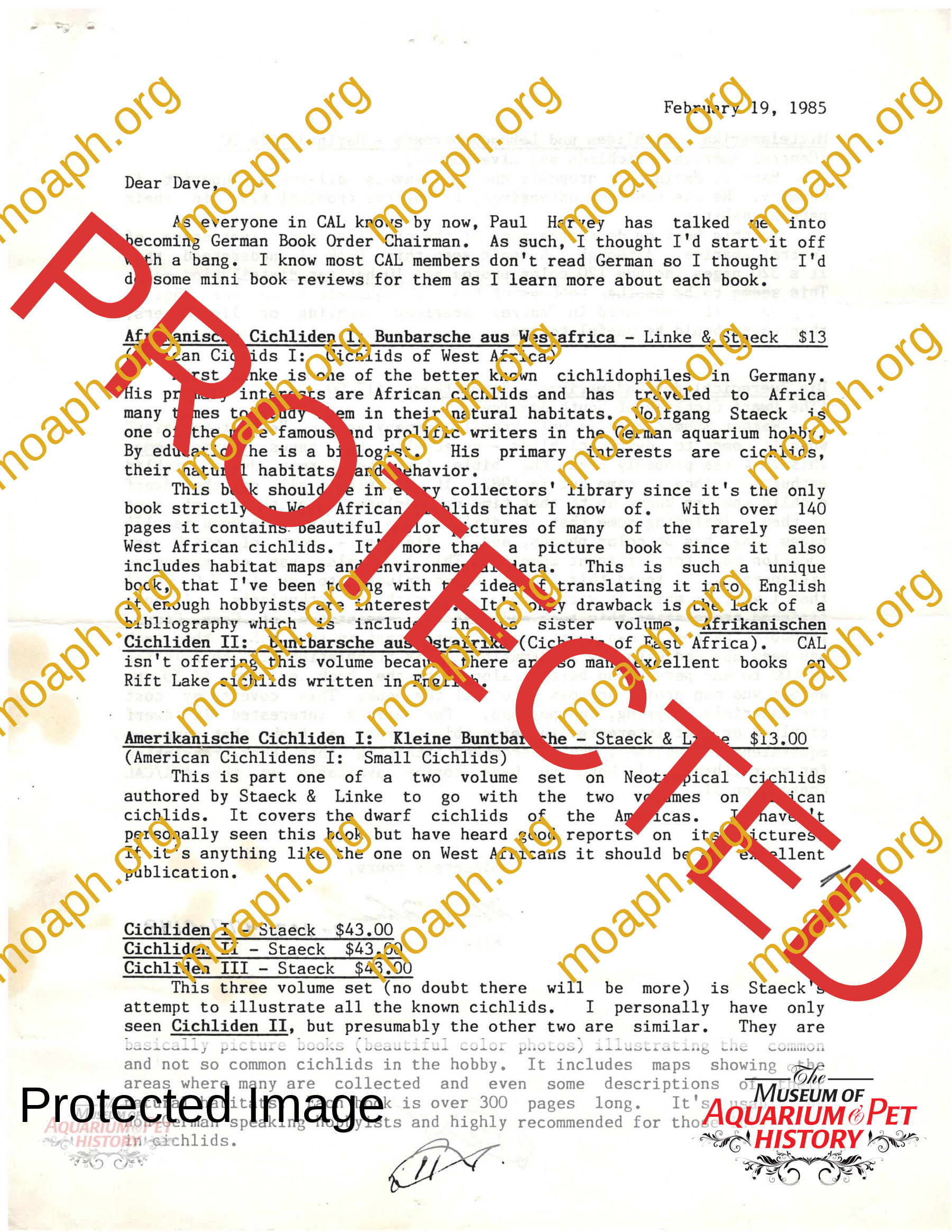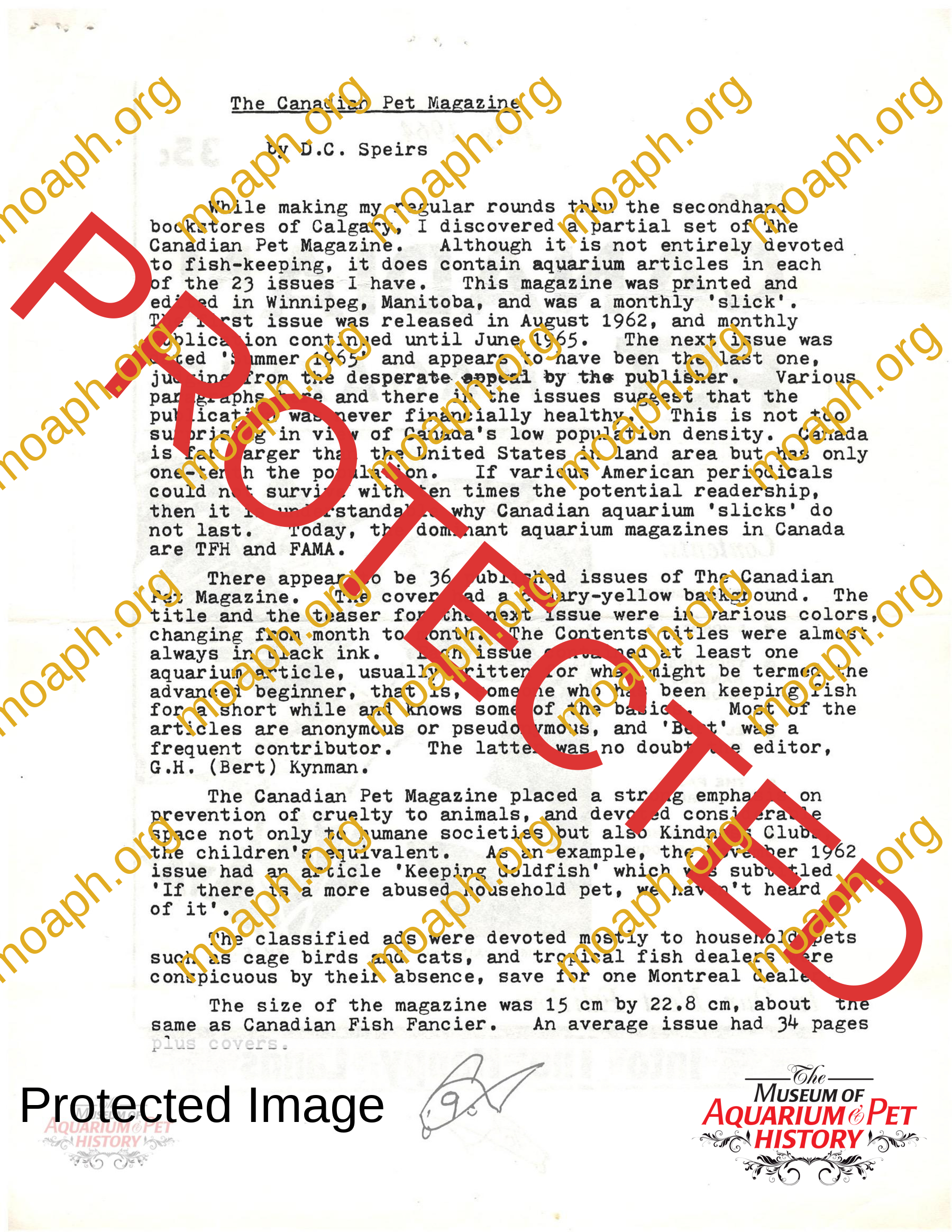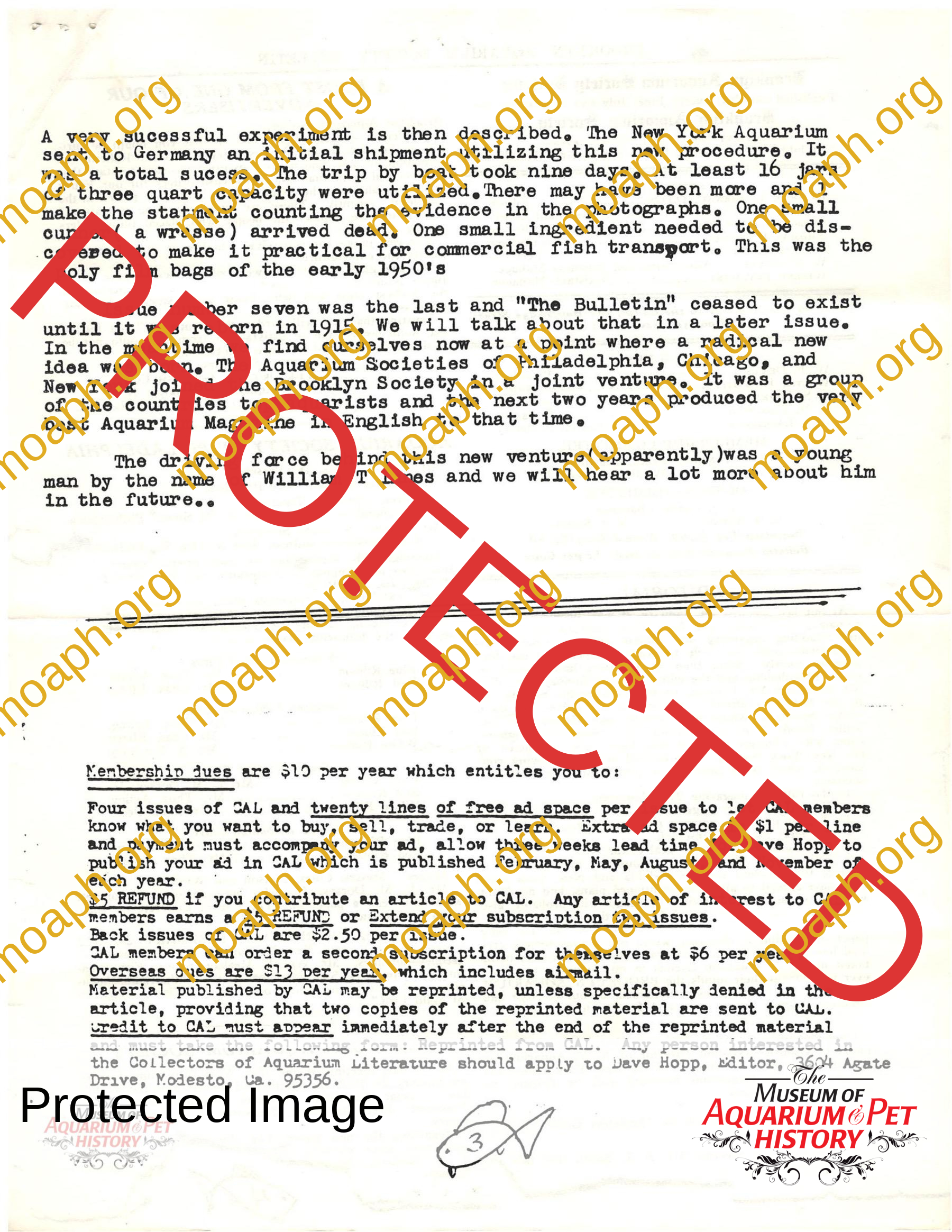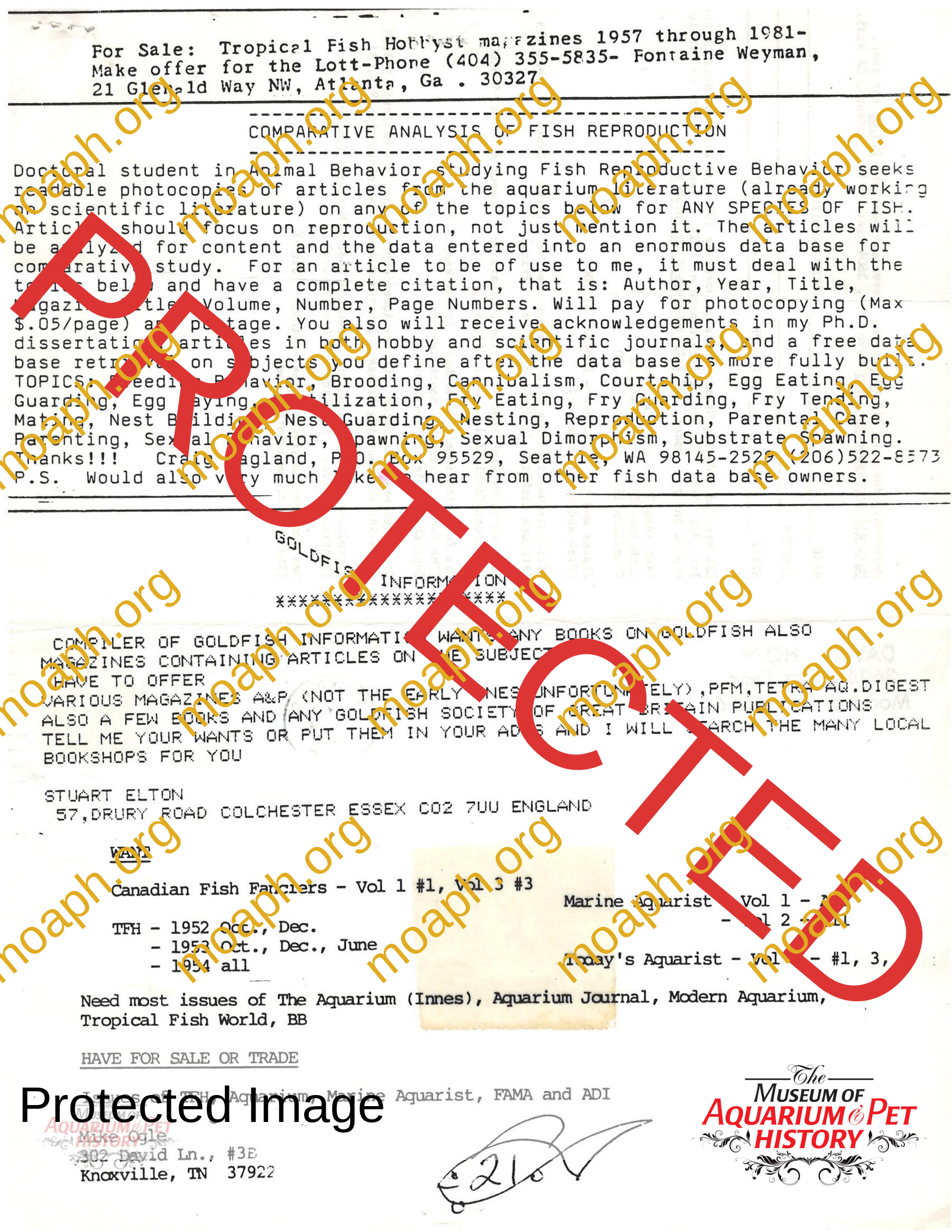The collectors of aquarium literature was an organization founded by Dave Hopp and Paul Harvey to better organize those who collected vintage aquarium magazines and books. Each issue had articles on aquarium publication history plus articles related to book and magazine collecting in general. This publication ran from May 1983 through June 1994 for a total of 55 issues. (August through November 1988 was a combined issue 25/26 and March through July 1989 was marked 29/30 1989.)