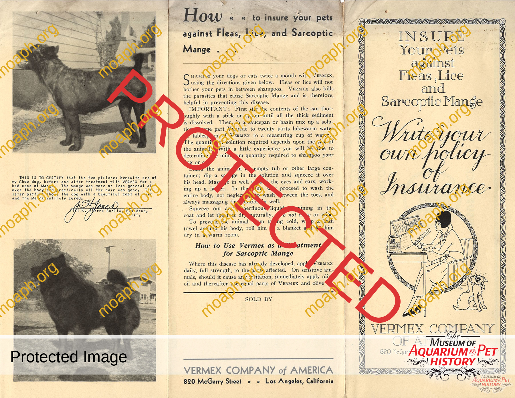 Back to Gallery Vermex Company of America Pet InsuranceAug 5, 2022 Insurance Policy against dog fleas from the Vermex Company of America 1940-50s.