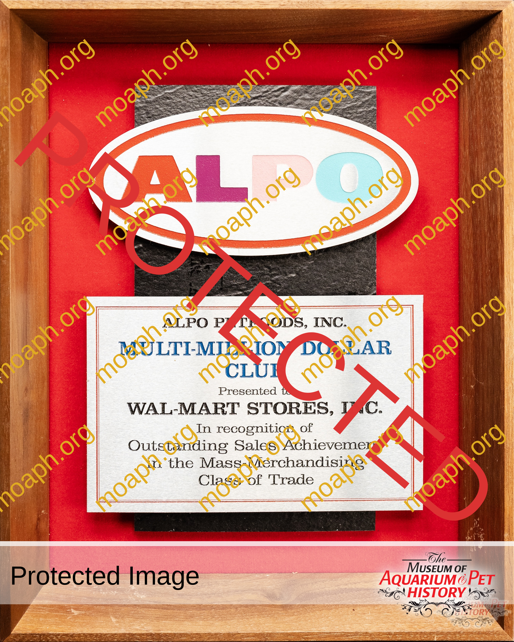 1960s plaque presented to Walmart for being in the ALPO Multi-Million Dollar Club.