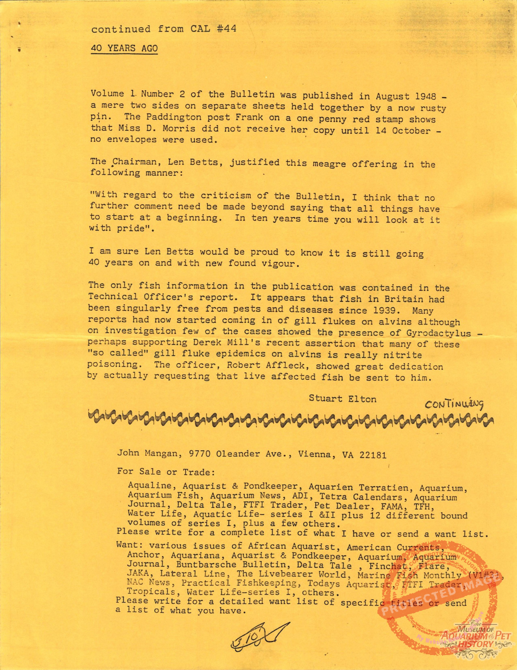 - “40 Years Ago” Part 2 (Info on The BULLETIN created by The Goldfish Society of Great Britain) by Stuart Elton