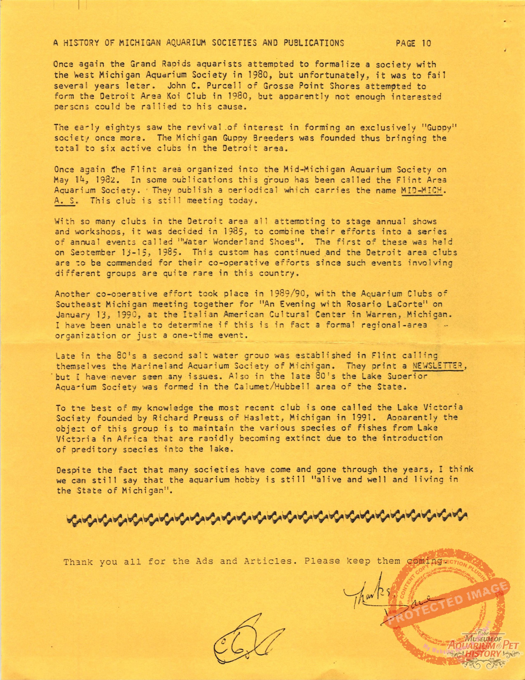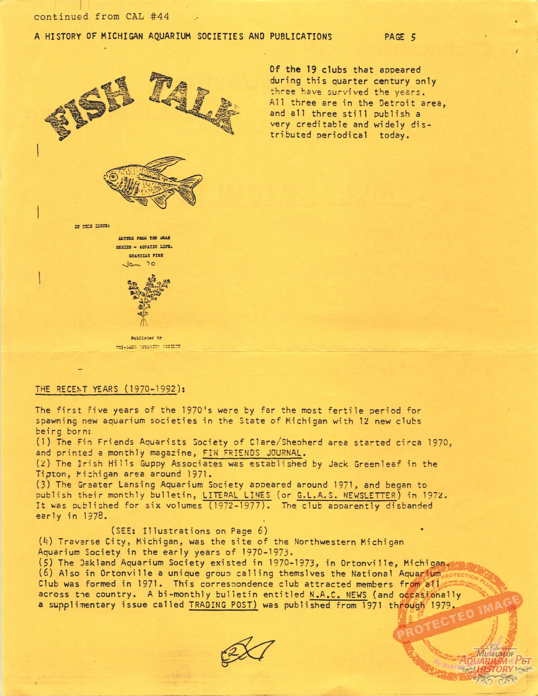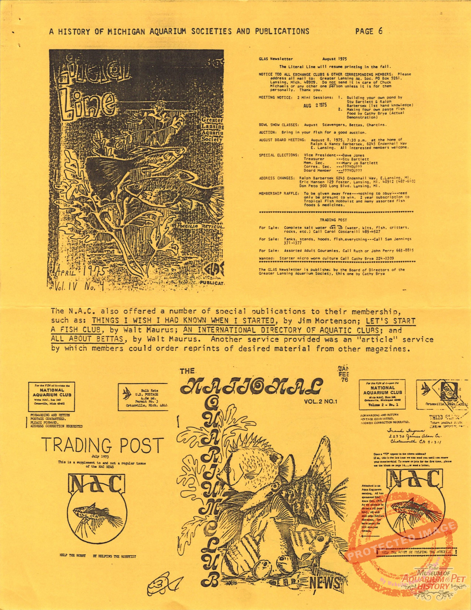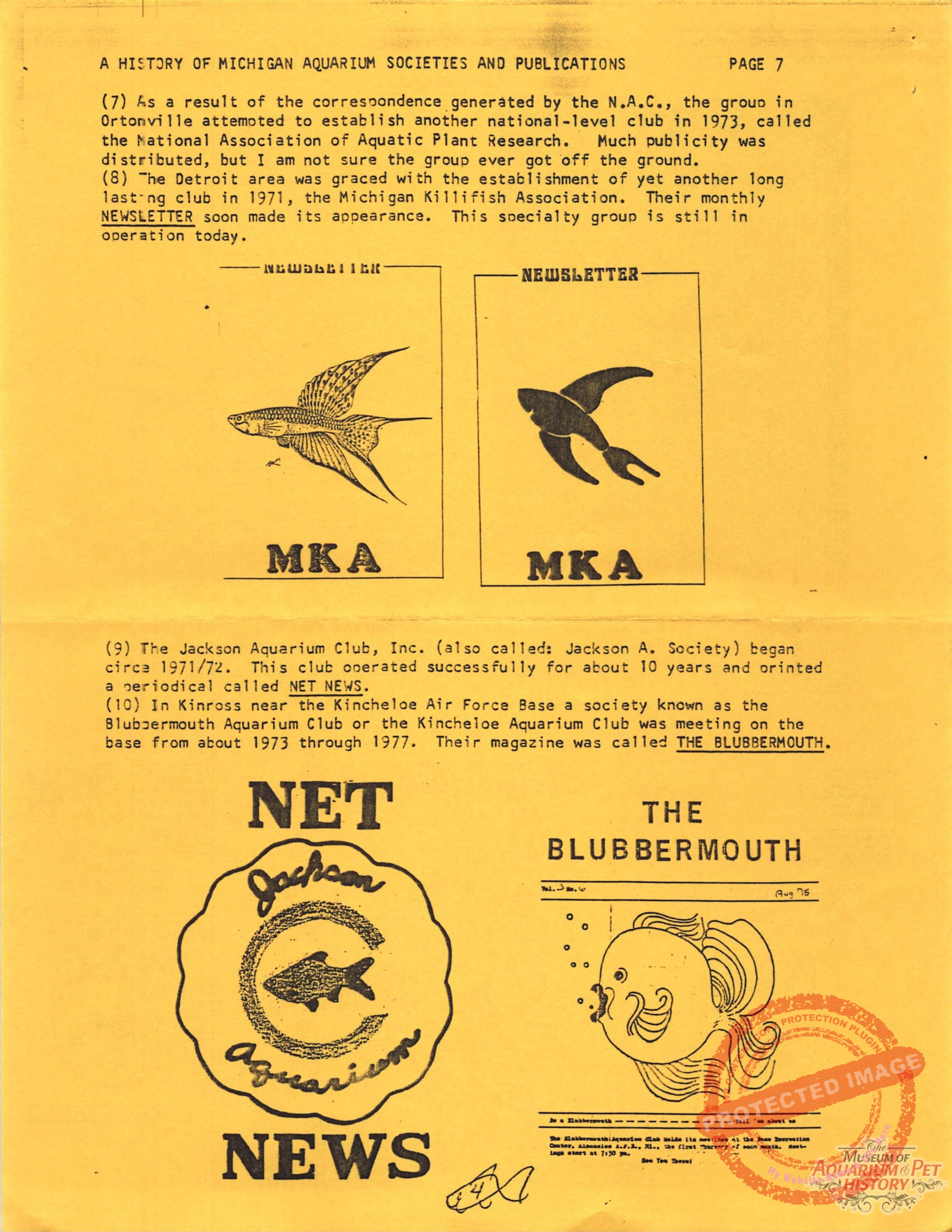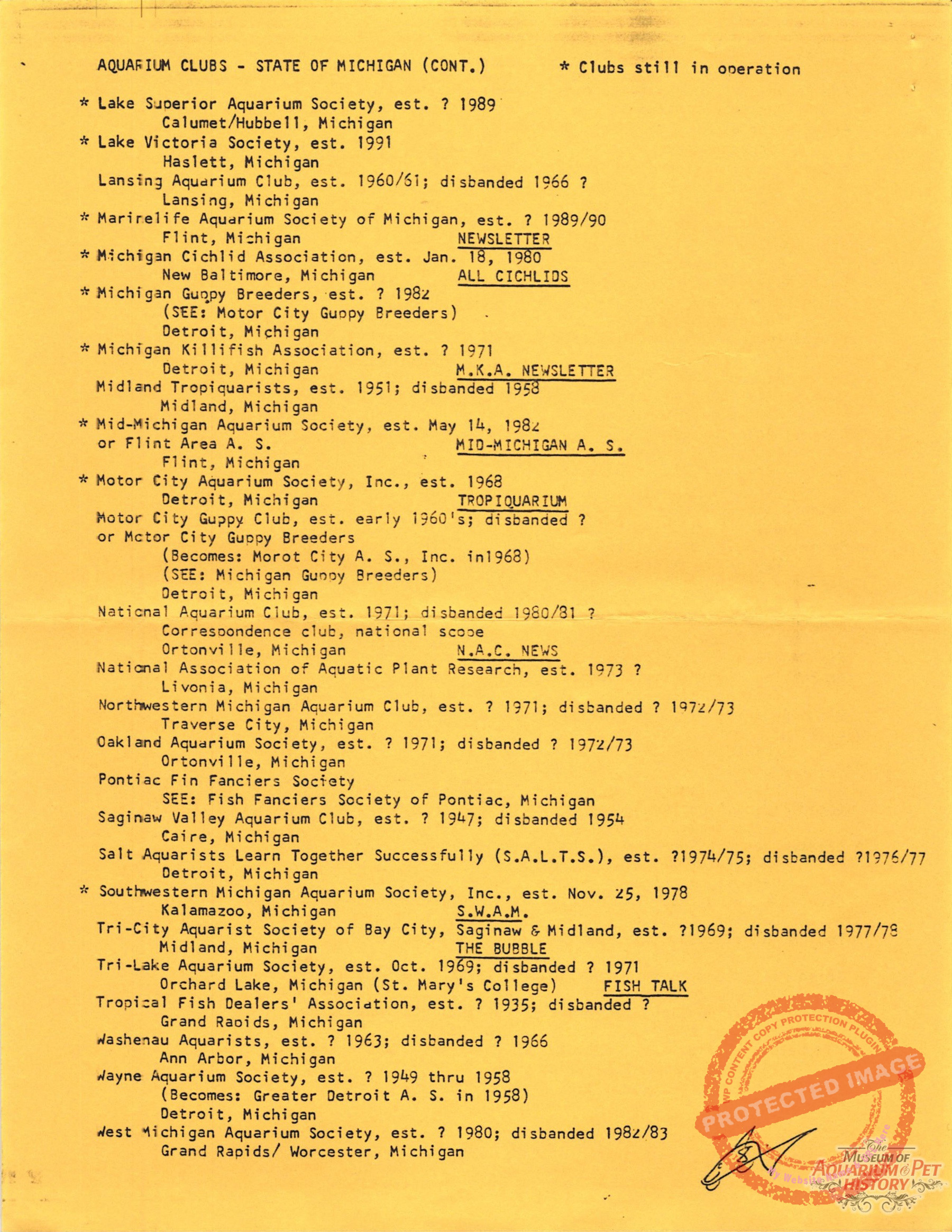 - A History of Michigan Aquarium Societies and Publications Part 2 by Jare A. Sausaman