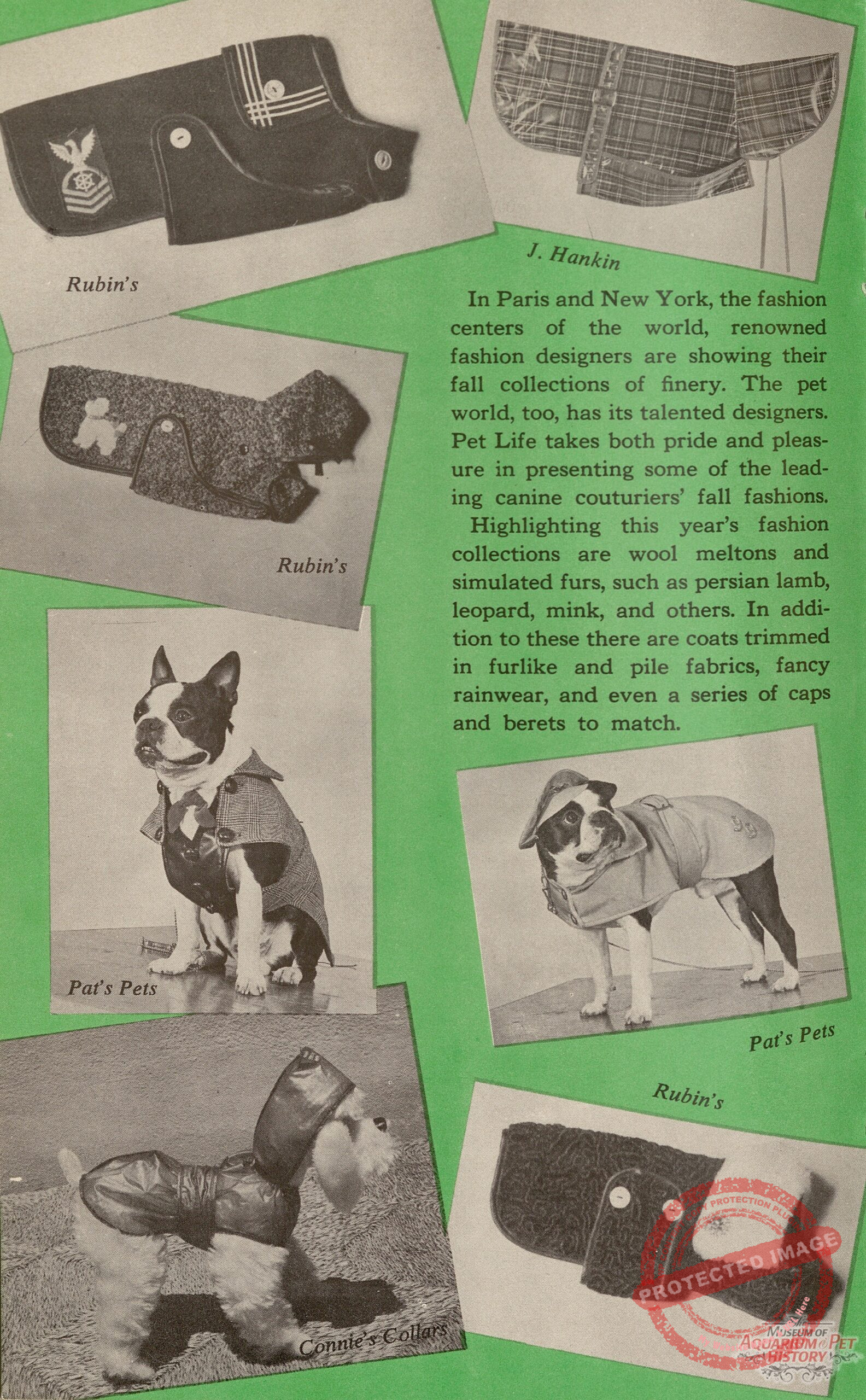Back to Gallery New Fashion for Milady’s Dog in 1964Apr 15, 2026 Fall Dog Fashion (in 1964) from several dog fashion manufacturers. I love the hats! From the Fall 1964 edition of Pet Life Magazine.