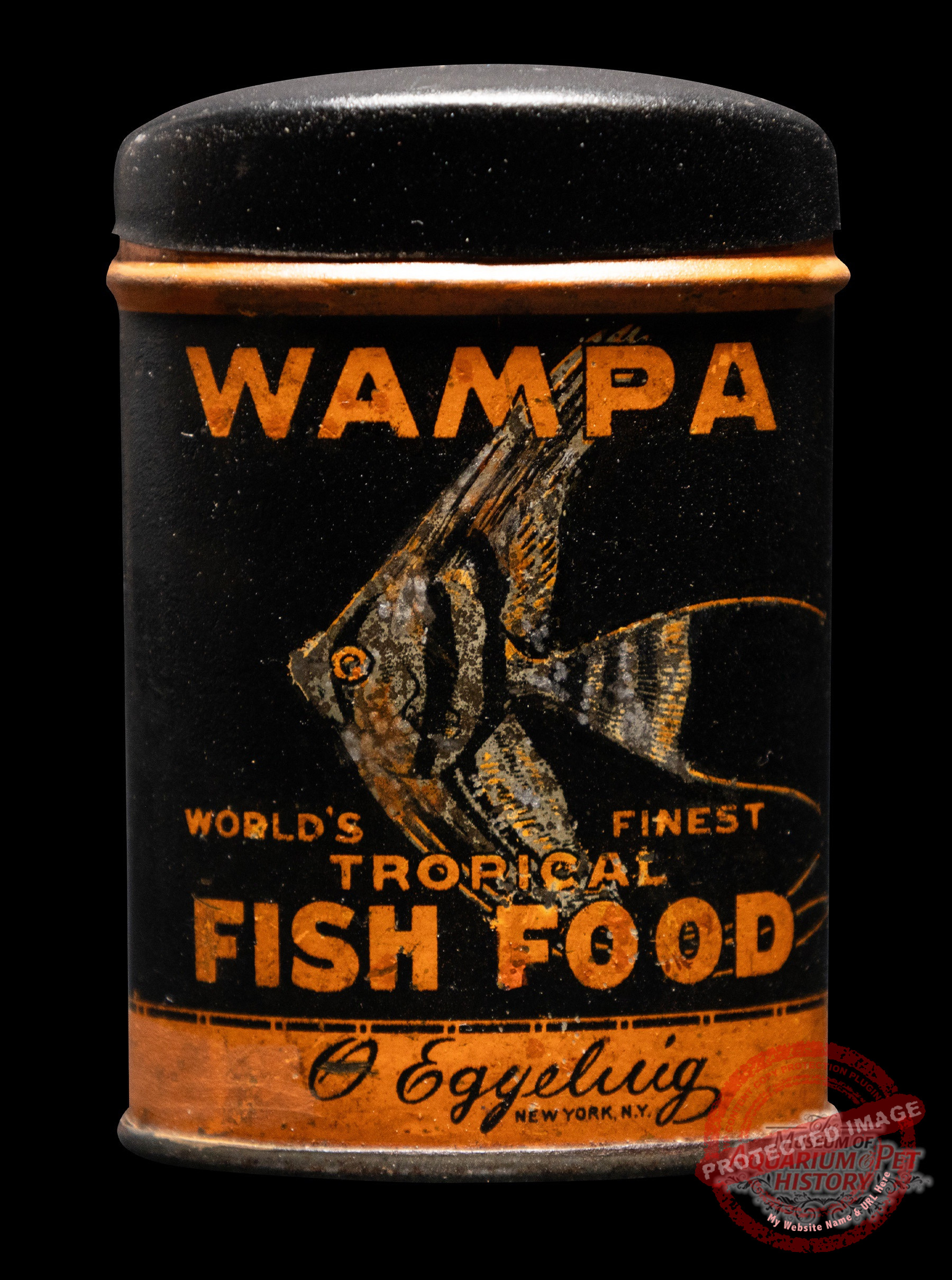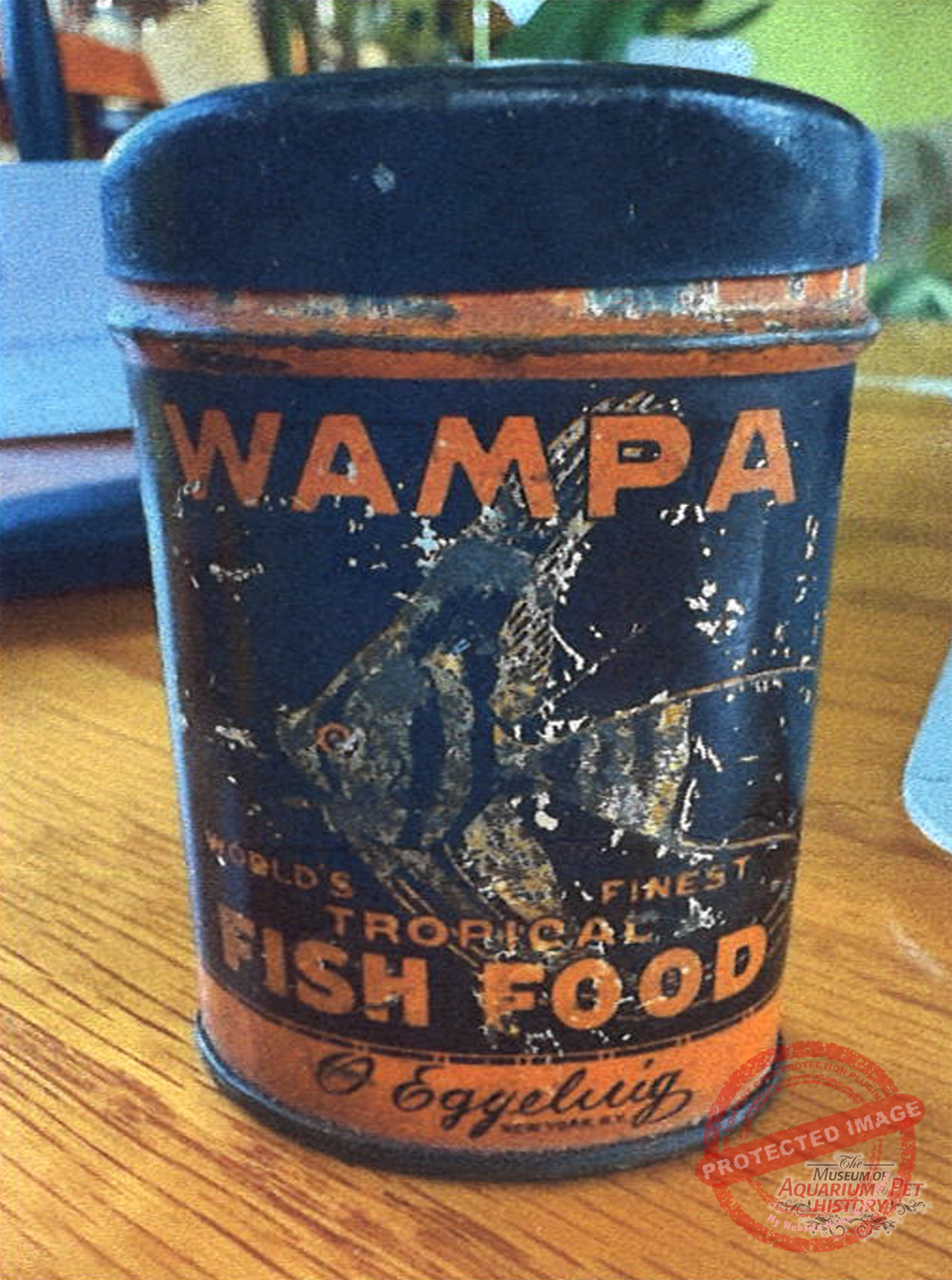 Rare fish food tin from Otto Eggeling, who was co-author with Frederick Ehrenberg on the book “The Freshwater Aquarium and Its Inhabitants.” Published in 1912 and one of the earliest books to incorporate tropical fish. Restoration by Lynn Hessler.