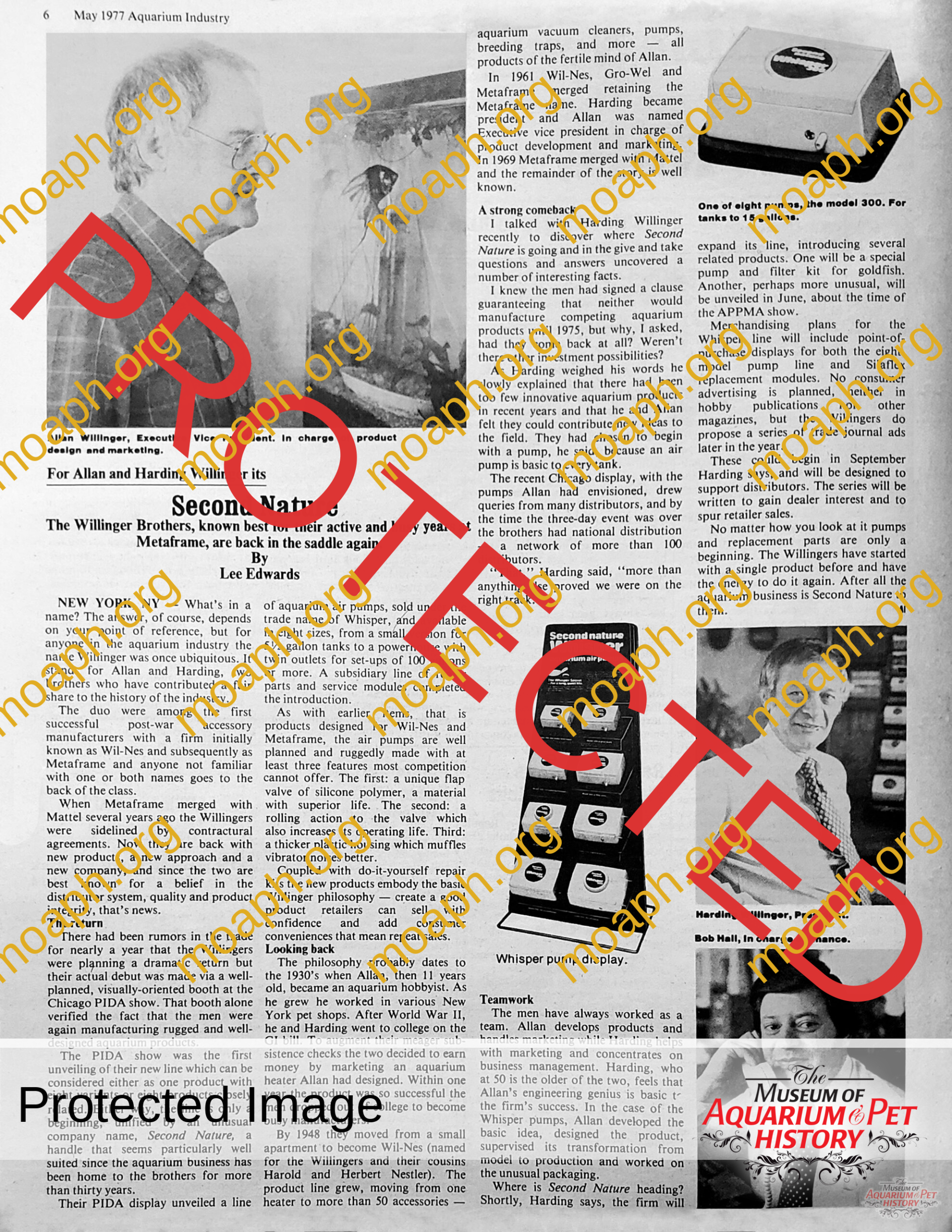 Allan and Harding Willinger-From Wil-Nes to Metaframe to SECOND NATURE Printable Version of Article Article courtesy of Aquarium Industry News May 1975.