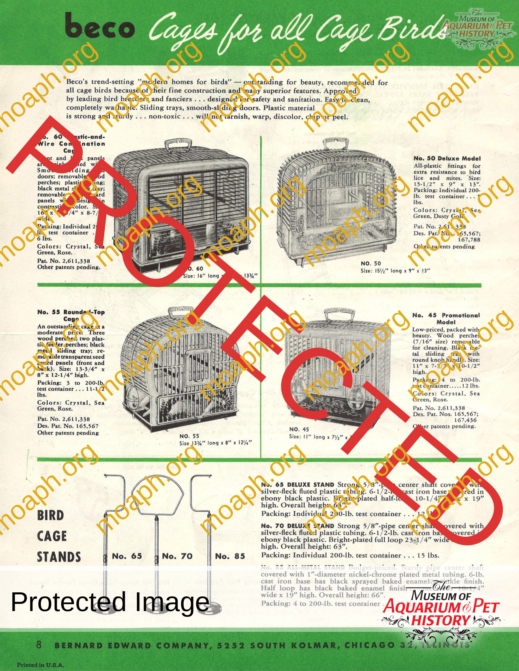 Back to Gallery BECOJul 10, 2023 An uncommon BECO catalog showing the bird products they manufactured. Notice they made an entire plastic bird cage in four design models. BECO stood for the “Bernard Edward Company,” and they were a plastic injection molder.