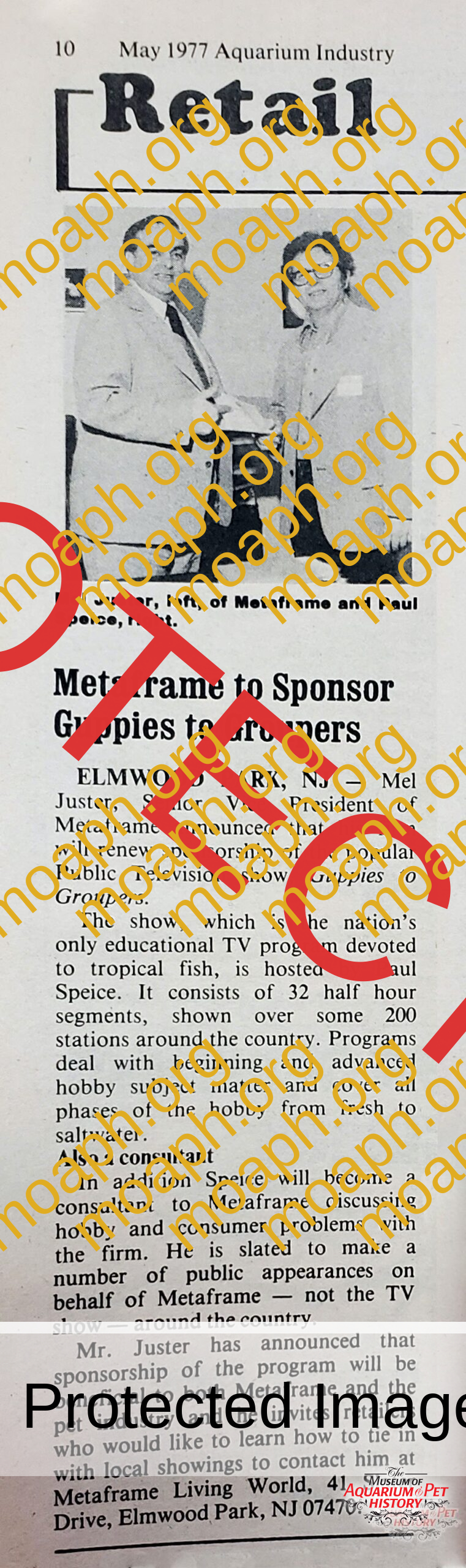 Metaframe to Sponsor Guppies to Groupers Printable Version of Article Article courtesy of Aquarium Industry News May 1977.