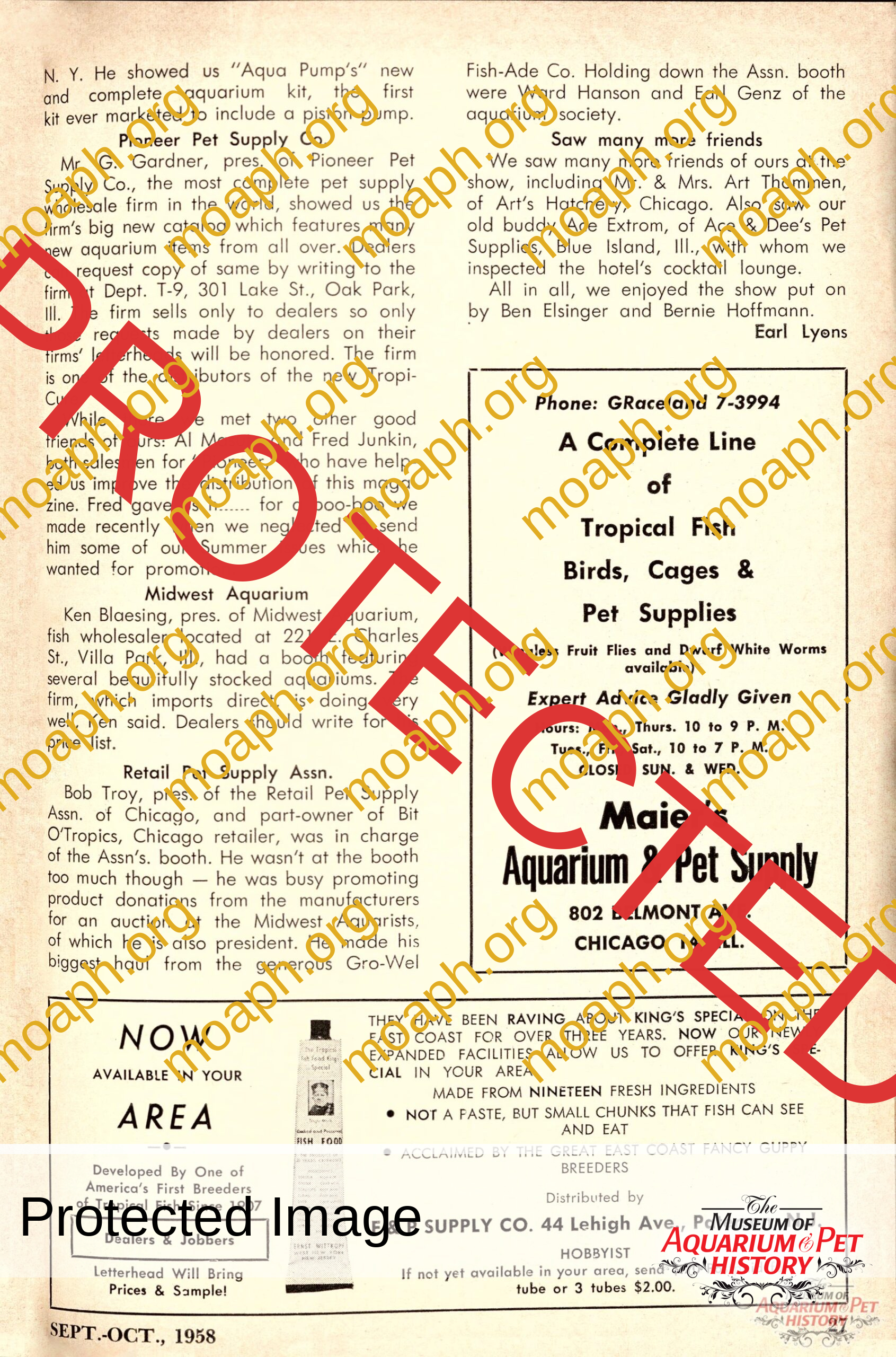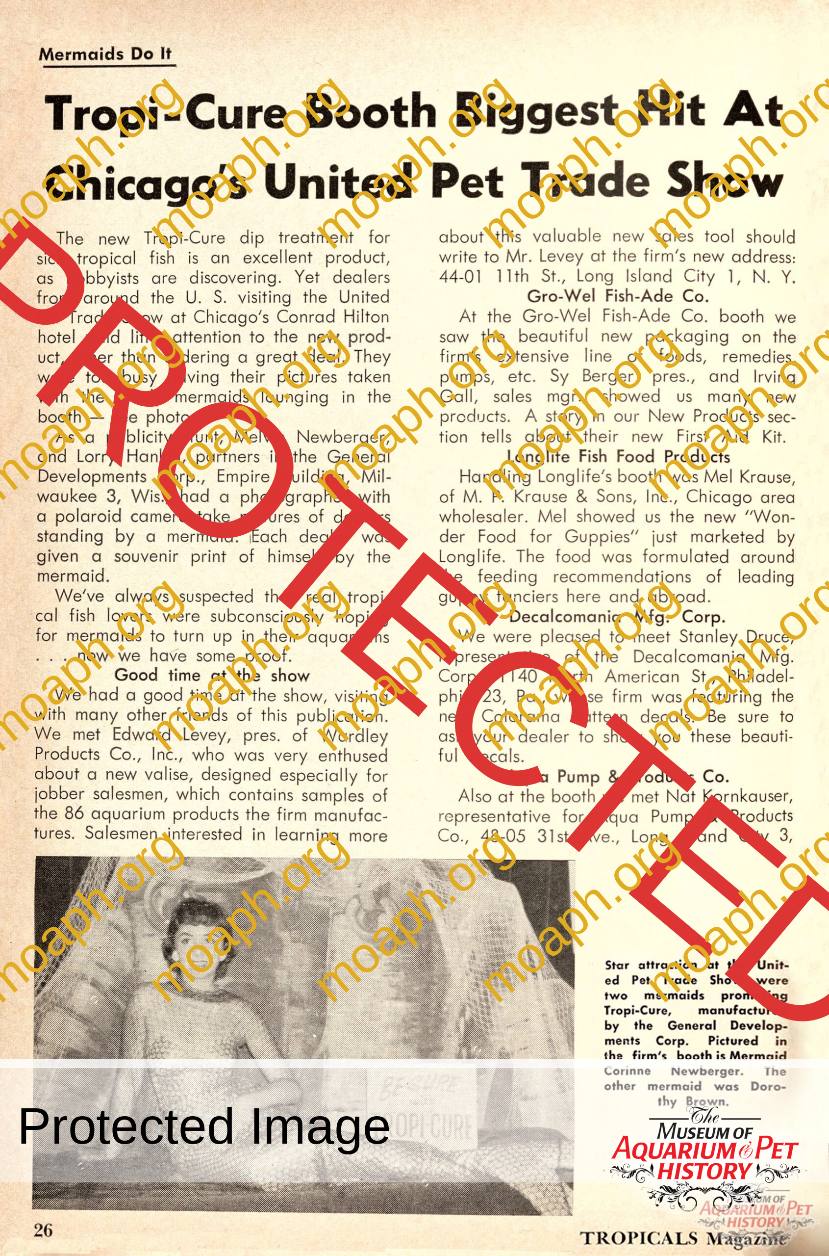 Tropi-Cure Booth Biggest Hit At Chicago’s United Pet Trade Show Printable Version of Article Article originally from September-October 1958 edition of TROPICALS Magazine.