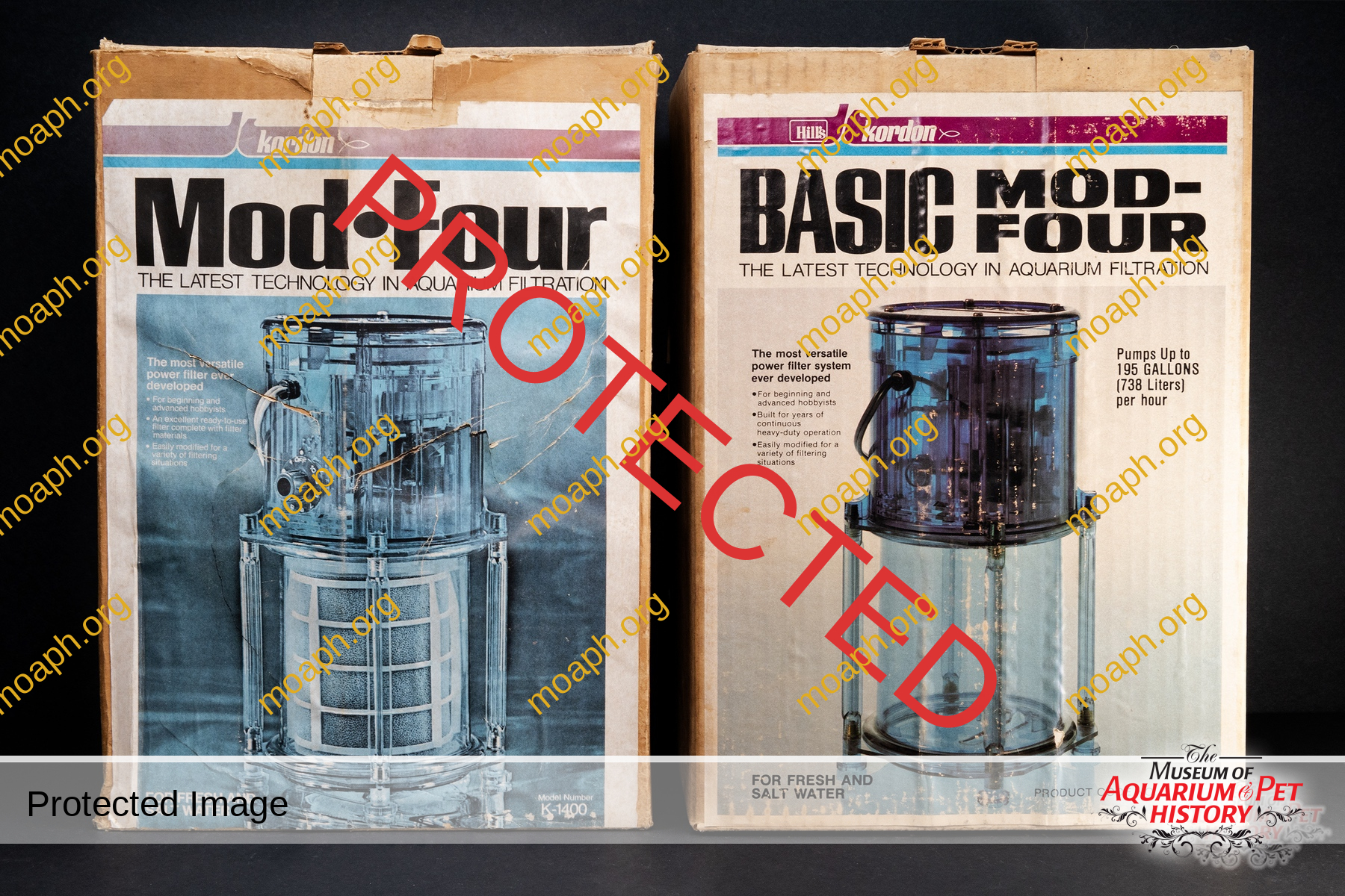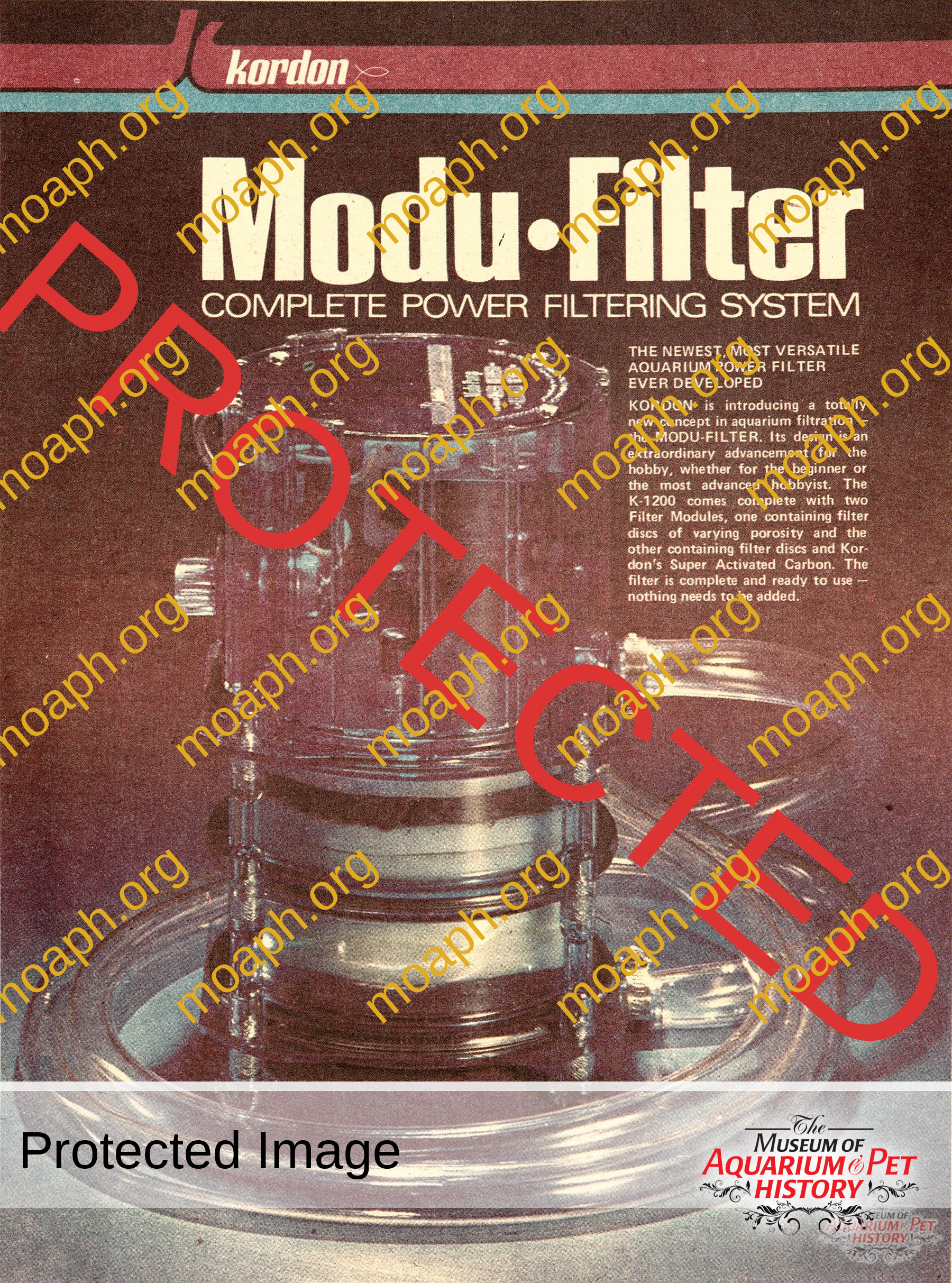 After Kordon was no longer the distribution arm in the U.S. for the German-made Eheim aquarium filters, they decided to design and manufacture their own canister filter called the Mod-Four in 1974. Notice they called this filter the Modu•Filter in the ad, but it was later changed to Mod-Four.