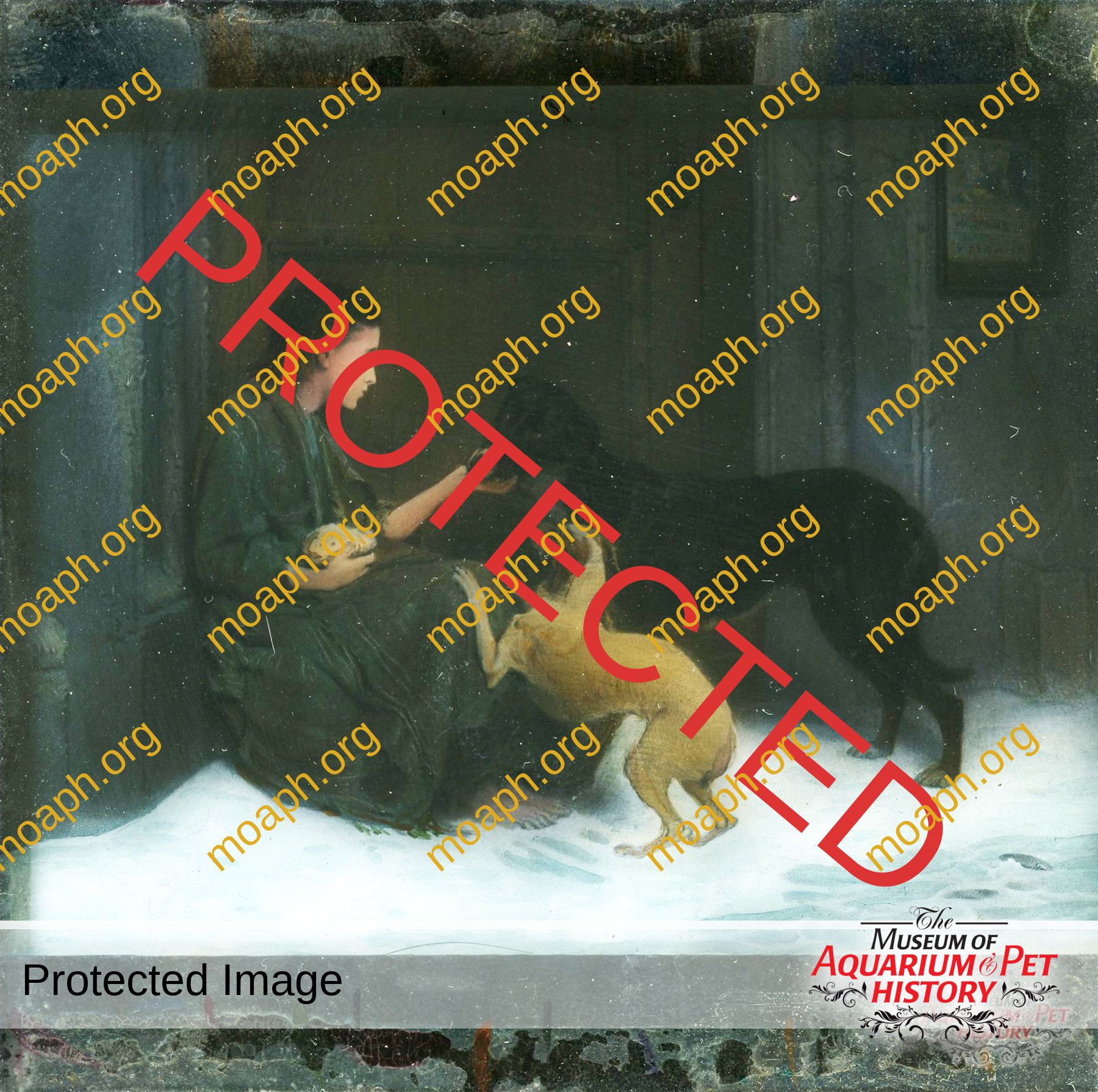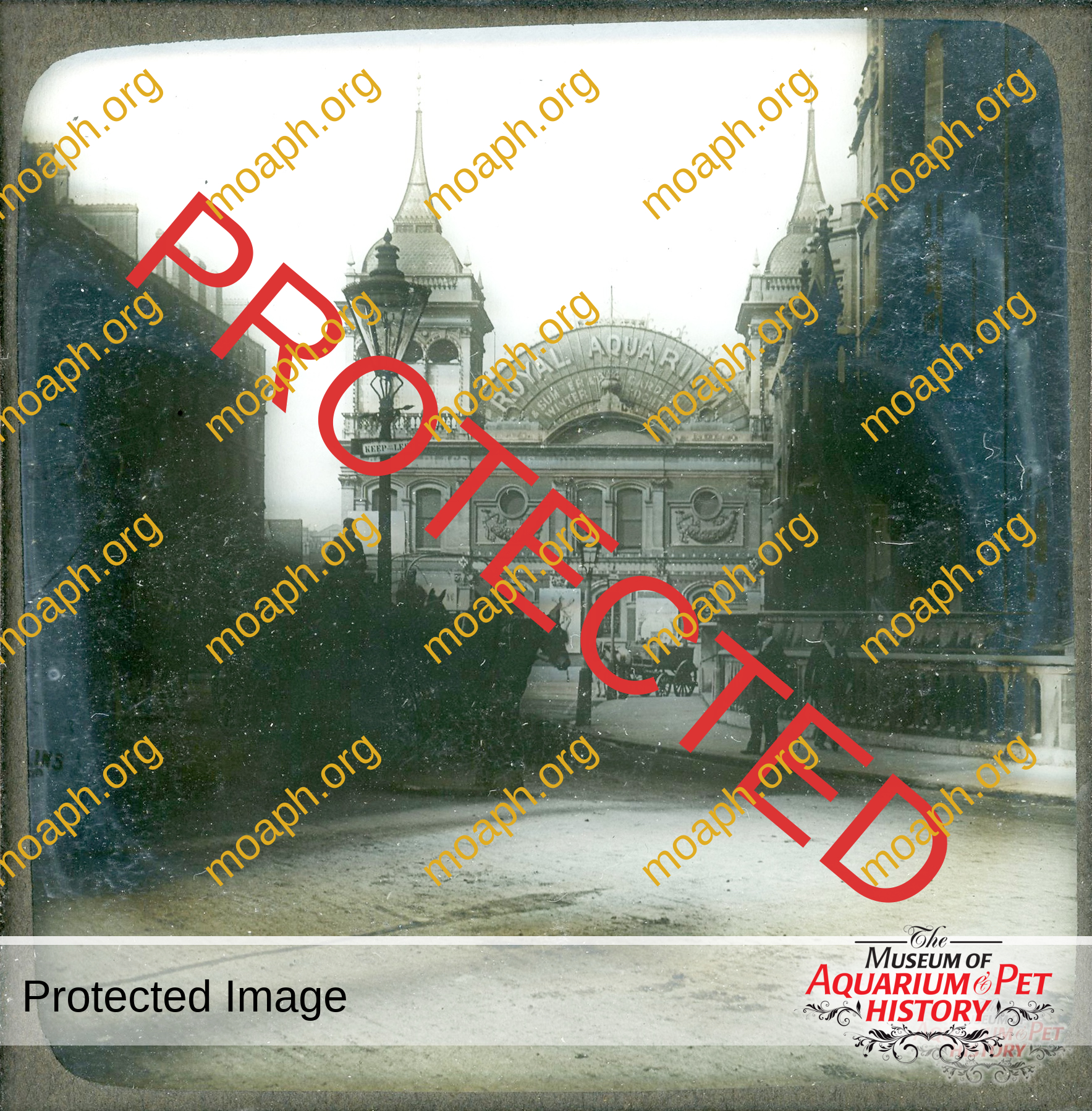 Back to Gallery Rare Glass Slides from the 1800s Rare glass slides from the 1800s. Girl with a cage full of what appears to be mice. The Royal Aquarium (England), torn down in 1903. Spratt’s Biscuits dog advertising glass slide. Woman with bird cage – early to mid 1800s. Woman giving bread to stray dogs.